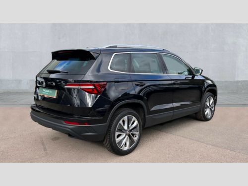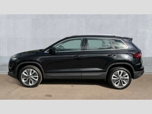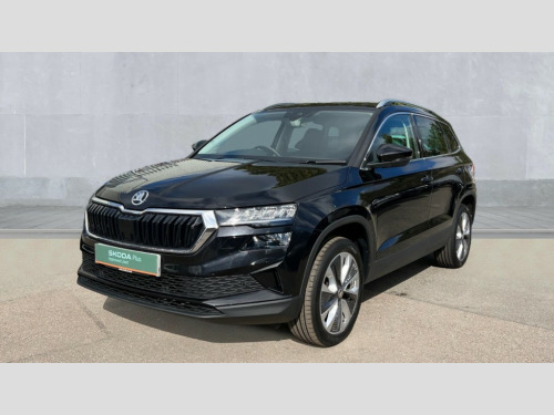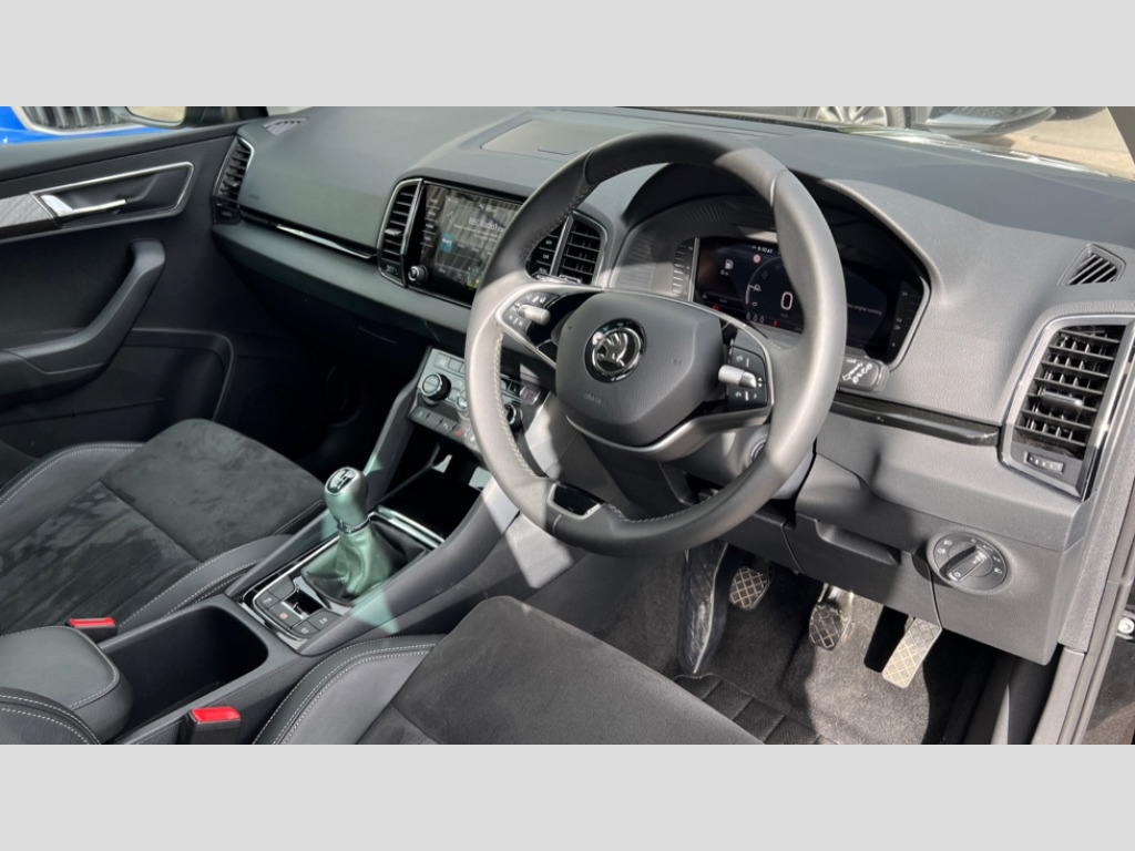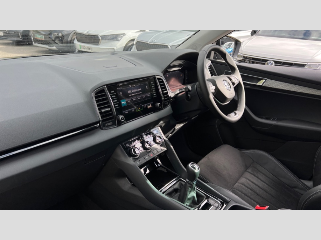 Skoda Karoq 1.0 TSI 116 SE L 5dr 8" Digital display, Advanced driver attention and drowsiness monitor, Drive Mode Selection including ECO function, Electro-mechanical PAS, Emergency services call system, Outside temperature gauge, Sensor for driver assistance systems, Service interval indicator, SmartLink wireless for Apple and wired for Android, Start/stop system with regenerative braking, USB C Port x 2 in front centre console, Virtual Cockpit - 10.25" digital display, Wireless smartphone charging, DAB radio with Bluetooth, USB connection, Acoustic glass, Aero front windscreen wipers with intermittent function, Auto dimming rear view mirror with light and rain sensors, Black electric window control buttons, Body colour door mirrors and handles, Electric front and rear windows with child proof lock, Heated rear windscreen, LED daytime running lights, LED rear lights with high functionality welcome effect and dynamic indicators, Light assistant (coming/leaving home/tunnel light), Plastic scuff plates in door apertures, Privacy glass, Rear side wing doors, Rear spoiler, Rear window wiper with washer system and intermittent control, Safety reflectors on front doors, Third brake light, 1.5 litre bottle holders in driver and front passenger door panels, 12V socket in boot, 12v socket in front centre armrest with storage compartment and rear air vents, 2 spoke leather heated multifunction steering wheel, 2 x Tablet holder, 3 rear height adjustable headrests, 3 seat bench in 2nd row, 4 foldable roof handles with rear coat hooks, Black floor carpet, Chrome inner door handles, Foldable hooks in the boot, Front head restraints, Height adjustable front three point seats belts with tensioners, Height/reach adjust steering wheel, Ice scraper, Illuminated glovebox, Illuminated luggage compartment, Interior noise suppression, Isofix child seat preparation for front passenger seat, Isofix child seat preparation outer rear, Manual lumbar support for front seats, Pearl grey interior ceiling, Pen holder, Pollen filter, Rear boot cover, Rear reading lights, Rubbish bin door, Safety vest holder, Single front passenger seat, Storage box in upper central dashboard closed, Sunvisors with illuminated vanity mirrors, Textile floor mats, Ticket holder, Design Pack - Karoq, Non Smokers pack, Parking pack - Karoq, Automatic door unlocking in case of crash, Automatic fuel cut off in case of crash, Driver airbag, Electronic parking brake with auto hold function, Emergency rear braking signal, ESC (incl. ABS+MSR+ASR+EDS+HBA+DSR+RBS+MKB), Front side airbags, Head airbags, Hill hold control, Knee airbags, Passenger airbag with switch-off function, Pedestrian monitor, Seatbelt reminder signalisation and pretensioner for all seats, Three point seatbelts rear, Two tone horn, Tyre pressure monitor, Alarm with interior monitoring, back up horn and tilt sensor with safe function, Electronic engine immobiliser, Keyless entry and start/stop, Remote central locking with 2 remote folding keys, Black centre console, Chrome framed air vents, Satin black dashboard, Anti-theft wheel bolts protection, Breakdown and tool kit