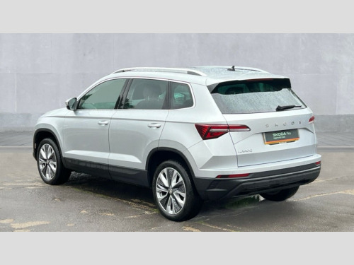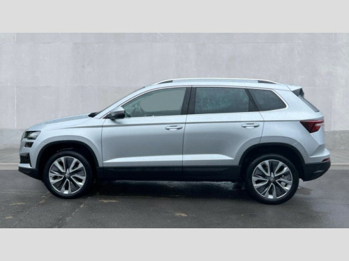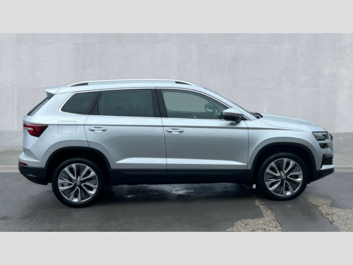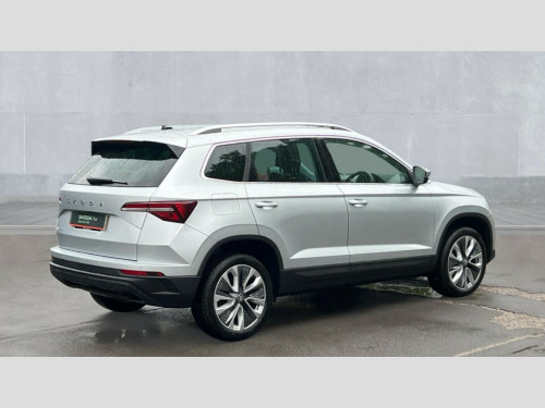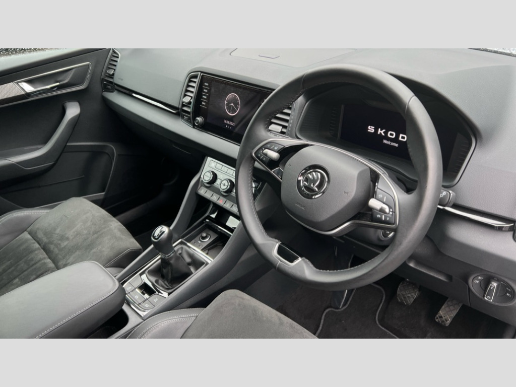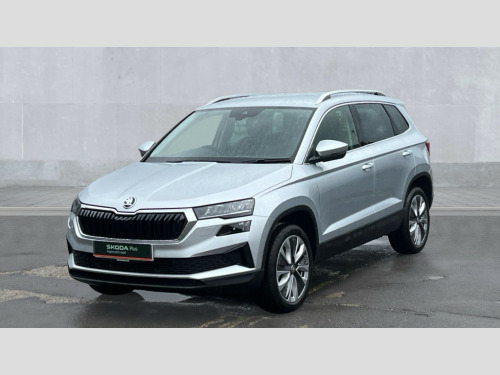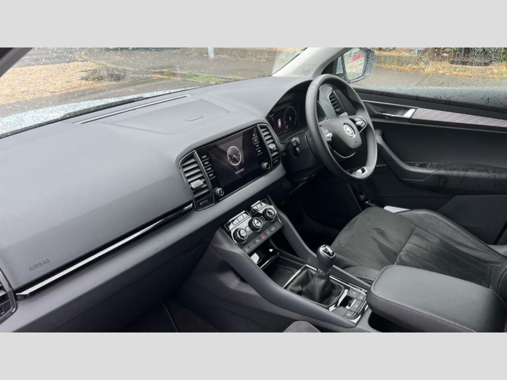Skoda Karoq 1.0 TSI 116 SE L 5dr 8" Digital display, Advanced driver attention and drowsiness monitor, Drive Mode Selection including ECO function, Electro-mechanical PAS, Emergency services call system, Outside temperature gauge, Sensor for driver assistance systems, Service interval indicator, SmartLink wireless for Apple and wired for Android, Start/stop system with regenerative braking, USB C Port x 2 in front centre console, Virtual Cockpit - 10.25" digital display, Wireless smartphone charging, DAB radio with Bluetooth, USB connection, Acoustic glass, Aero front windscreen wipers with intermittent function, Auto dimming rear view mirror with light and rain sensors, Black electric window control buttons, Body colour door mirrors and handles, Electric front and rear windows with child proof lock, Heated rear windscreen, LED daytime running lights, LED rear lights with high functionality welcome effect and dynamic indicators, Light assistant (coming/leaving home/tunnel light), Plastic scuff plates in door apertures, Privacy glass, Rear side wing doors, Rear spoiler, Rear window wiper with washer system and intermittent control, Safety reflectors on front doors, Third brake light, 1.5 litre bottle holders in driver and front passenger door panels, 12V socket in boot, 12v socket in front centre armrest with storage compartment and rear air vents, 2 spoke leather heated multifunction steering wheel, 2 x Tablet holder, 3 rear height adjustable headrests, 3 seat bench in 2nd row, 4 foldable roof handles with rear coat hooks, Black floor carpet, Chrome inner door handles, Foldable hooks in the boot, Front head restraints, Height adjustable front three point seats belts with tensioners, Height/reach adjust steering wheel, Ice scraper, Illuminated glovebox, Illuminated luggage compartment, Interior noise suppression, Isofix child seat preparation for front passenger seat, Isofix child seat preparation outer rear, Manual lumbar support for front seats, Pearl grey interior ceiling, Pen holder, Pollen filter, Rear boot cover, Rear reading lights, Rubbish bin door, Safety vest holder, Single front passenger seat, Storage box in upper central dashboard closed, Sunvisors with illuminated vanity mirrors, Textile floor mats, Ticket holder, Design Pack - Karoq, Non Smokers pack, Parking pack - Karoq, Automatic door unlocking in case of crash, Automatic fuel cut off in case of crash, Driver airbag, Electronic parking brake with auto hold function, Emergency rear braking signal, ESC (incl. ABS+MSR+ASR+EDS+HBA+DSR+RBS+MKB), Front side airbags, Head airbags, Hill hold control, Knee airbags, Passenger airbag with switch-off function, Pedestrian monitor, Seatbelt reminder signalisation and pretensioner for all seats, Three point seatbelts rear, Two tone horn, Tyre pressure monitor, Alarm with interior monitoring, back up horn and tilt sensor with safe function, Electronic engine immobiliser, Keyless entry and start/stop, Remote central locking with 2 remote folding keys, Black centre console, Chrome framed air vents, Satin black dashboard, Anti-theft wheel bolts protection, Breakdown and tool kit