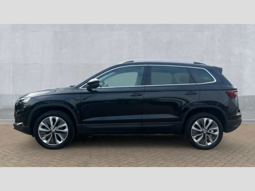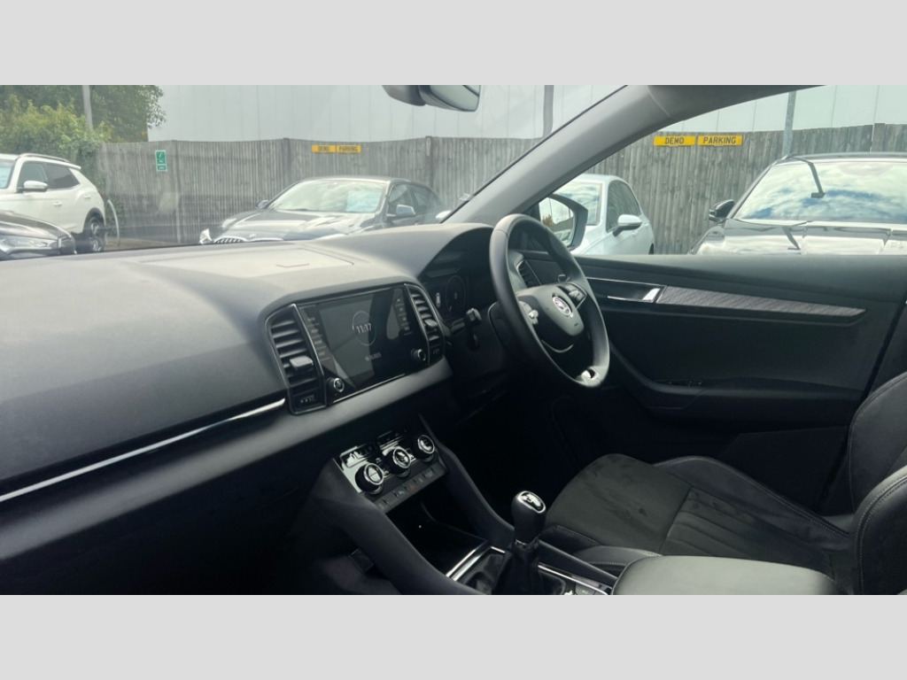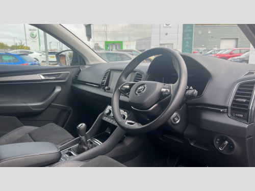 Skoda Karoq 1.0 TSI 116 SE L 5dr 8" Digital display, Advanced driver attention and drowsiness monitor, Drive Mode Selection including ECO function, Electro-mechanical PAS, Emergency services call system, Outside temperature gauge, Sensor for driver assistance systems, Service interval indicator, SmartLink wireless for Apple and wired for Android, Start/stop system with regenerative braking, USB C Port x 2 in front centre console, Virtual Cockpit - 10.25" digital display, Wireless smartphone charging, DAB radio with Bluetooth, USB connection, Acoustic glass, Aero front windscreen wipers with intermittent function, Auto dimming rear view mirror with light and rain sensors, Black electric window control buttons, Body colour door mirrors and handles, Electric front and rear windows with child proof lock, Heated rear windscreen, LED daytime running lights, LED rear lights with high functionality welcome effect and dynamic indicators, Light assistant (coming/leaving home/tunnel light), Plastic scuff plates in door apertures, Privacy glass, Rear side wing doors, Rear spoiler, Rear window wiper with washer system and intermittent control, Safety reflectors on front doors, Third brake light, 1.5 litre bottle holders in driver and front passenger door panels, 12V socket in boot, 12v socket in front centre armrest with storage compartment and rear air vents, 2 spoke leather heated multifunction steering wheel, 2 x Tablet holder, 3 rear height adjustable headrests, 3 seat bench in 2nd row, 4 foldable roof handles with rear coat hooks, Black floor carpet, Chrome inner door handles, Foldable hooks in the boot, Front head restraints, Height adjustable front three point seats belts with tensioners, Height/reach adjust steering wheel, Ice scraper, Illuminated glovebox, Illuminated luggage compartment, Interior noise suppression, Isofix child seat preparation for front passenger seat, Isofix child seat preparation outer rear, Manual lumbar support for front seats, Pearl grey interior ceiling, Pen holder, Pollen filter, Rear boot cover, Rear reading lights, Rubbish bin door, Safety vest holder, Single front passenger seat, Storage box in upper central dashboard closed, Sunvisors with illuminated vanity mirrors, Textile floor mats, Ticket holder, Design Pack - Karoq, Non Smokers pack, Parking pack - Karoq, Automatic door unlocking in case of crash, Automatic fuel cut off in case of crash, Driver airbag, Electronic parking brake with auto hold function, Emergency rear braking signal, ESC (incl. ABS+MSR+ASR+EDS+HBA+DSR+RBS+MKB), Front side airbags, Head airbags, Hill hold control, Knee airbags, Passenger airbag with switch-off function, Pedestrian monitor, Seatbelt reminder signalisation and pretensioner for all seats, Three point seatbelts rear, Two tone horn, Tyre pressure monitor, Alarm with interior monitoring, back up horn and tilt sensor with safe function, Electronic engine immobiliser, Keyless entry and start/stop, Remote central locking with 2 remote folding keys, Black centre console, Chrome framed air vents, Satin black dashboard, Anti-theft wheel bolts protection, Breakdown and tool kit
