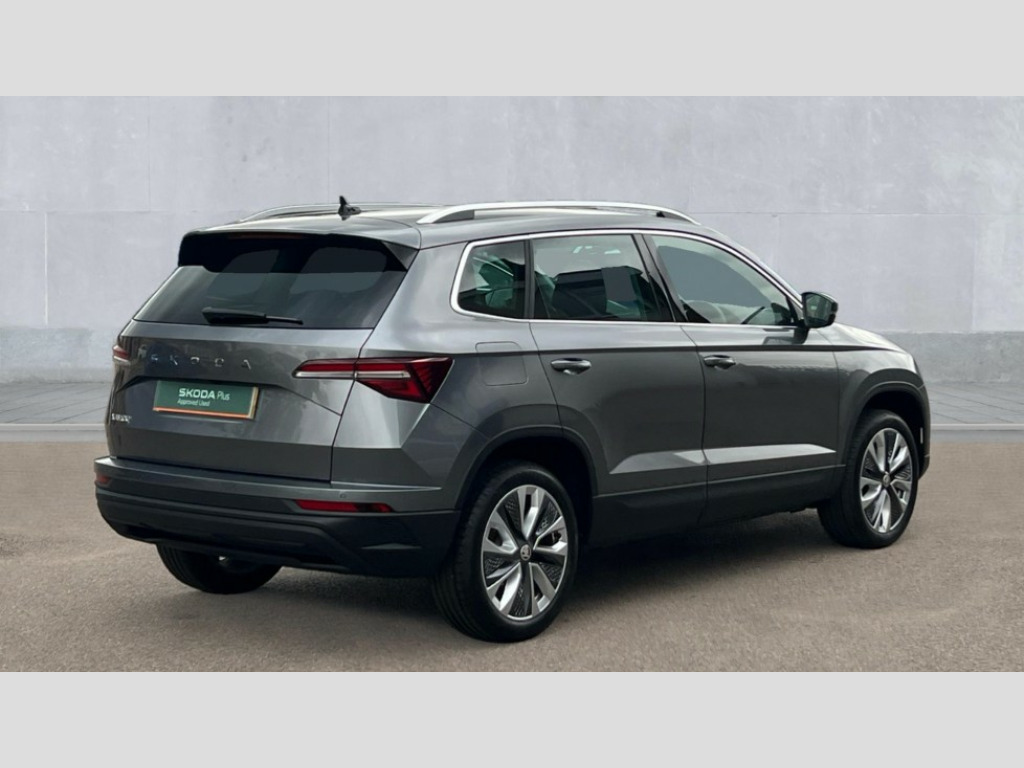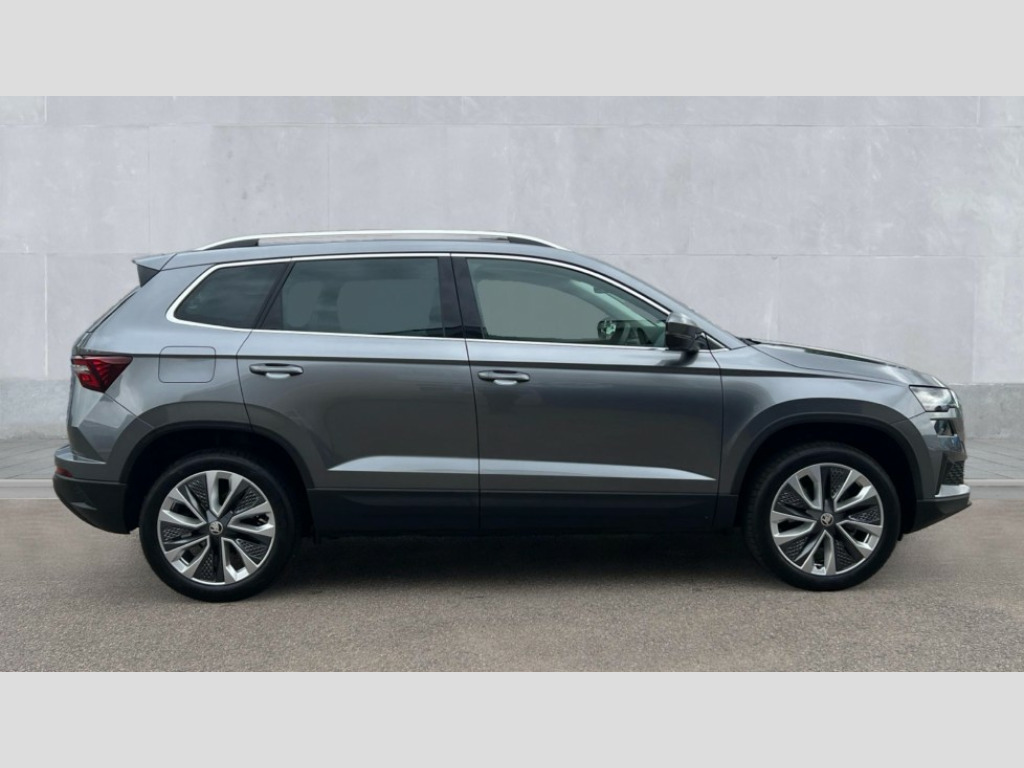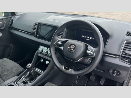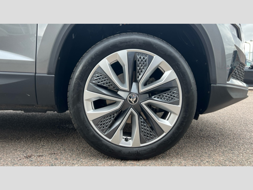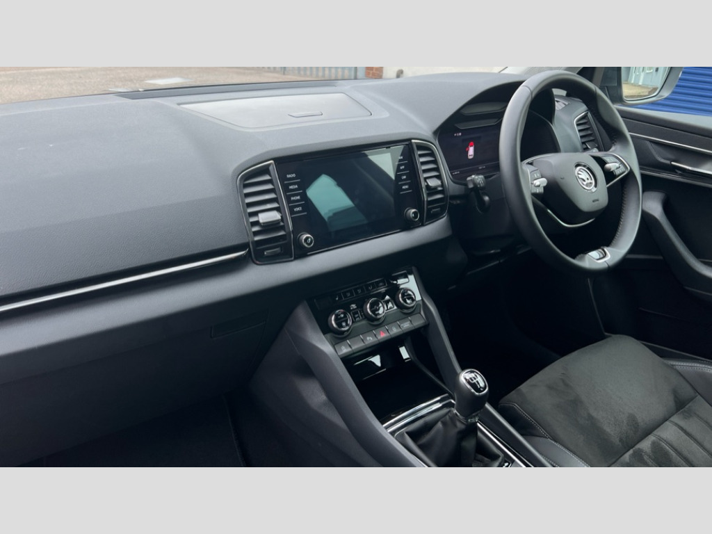 Skoda Karoq 1.0 TSI 116 SE L 5dr - Front and rear parking sensors, Rear view camera, 2-spoke heated multi-function leather steering wheel, Heated front seats 8" Digital display, Advanced driver attention and drowsiness monitor, Drive Mode Selection including ECO function, Electro-mechanical PAS, Emergency services call system, Outside temperature gauge, Sensor for driver assistance systems, Service interval indicator, SmartLink wireless for Apple and wired for Android, Start/stop system with regenerative braking, USB C Port x 2 in front centre console, Virtual Cockpit - 10.25" digital display, Wireless smartphone charging, DAB radio with Bluetooth, USB connection, Acoustic glass, Aero front windscreen wipers with intermittent function, Auto dimming rear view mirror with light and rain sensors, Black electric window control buttons, Body colour door mirrors and handles, Electric front and rear windows with child proof lock, Heated rear windscreen, LED daytime running lights, LED rear lights with high functionality welcome effect and dynamic indicators, Light assistant (coming/leaving home/tunnel light), Plastic scuff plates in door apertures, Privacy glass, Rear side wing doors, Rear spoiler, Rear window wiper with washer system and intermittent control, Safety reflectors on front doors, Third brake light, 1.5 litre bottle holders in driver and front passenger door panels, 12V socket in boot, 12v socket in front centre armrest with storage compartment and rear air vents, 2 spoke leather heated multifunction steering wheel, 2 x Tablet holder, 3 rear height adjustable headrests, 3 seat bench in 2nd row, 4 foldable roof handles with rear coat hooks, Black floor carpet, Chrome inner door handles, Foldable hooks in the boot, Front head restraints, Height adjustable front three point seats belts with tensioners, Height/reach adjust steering wheel, Ice scraper, Illuminated glovebox, Illuminated luggage compartment, Interior noise suppression, Isofix child seat preparation for front passenger seat, Isofix child seat preparation outer rear, Manual lumbar support for front seats, Pearl grey interior ceiling, Pen holder, Pollen filter, Rear boot cover, Rear reading lights, Rubbish bin door, Safety vest holder, Single front passenger seat, Storage box in upper central dashboard closed, Sunvisors with illuminated vanity mirrors, Textile floor mats, Ticket holder, Design Pack - Karoq, Non Smokers pack, Parking pack - Karoq, Automatic door unlocking in case of crash, Automatic fuel cut off in case of crash, Driver airbag, Electronic parking brake with auto hold function, Emergency rear braking signal, ESC (incl. ABS+MSR+ASR+EDS+HBA+DSR+RBS+MKB), Front side airbags, Head airbags, Hill hold control, Knee airbags, Passenger airbag with switch-off function, Pedestrian monitor, Seatbelt reminder signalisation and pretensioner for all seats, Three point seatbelts rear, Two tone horn, Tyre pressure monitor, Alarm with interior monitoring, back up horn and tilt sensor with safe function, Electronic engine immobiliser, Keyless entry and start/stop, Remote central locking with 2 remote folding keys, Black centre console, Chrome framed air vents, Satin black dashboard, Anti-theft wheel bolts protection, Breakdown and tool kit