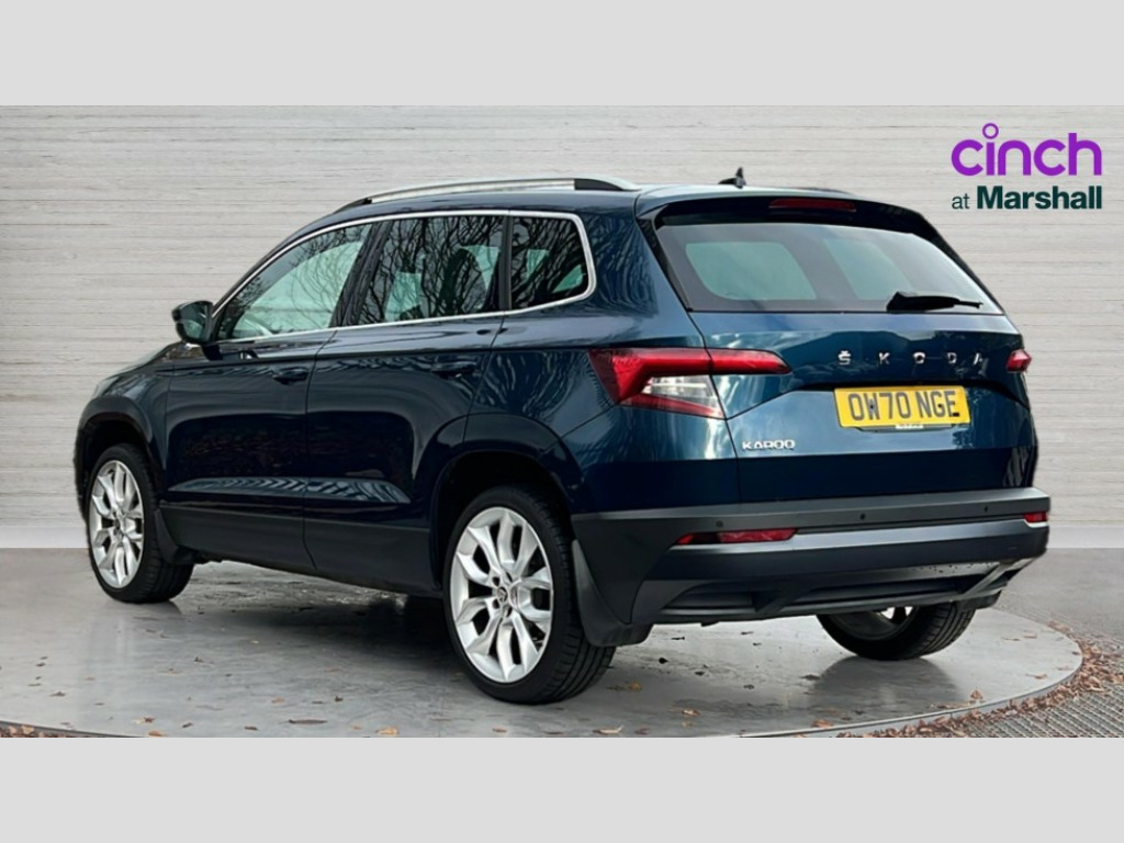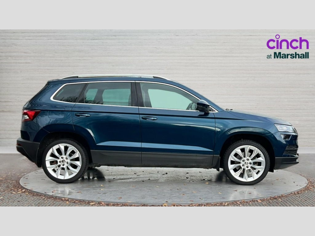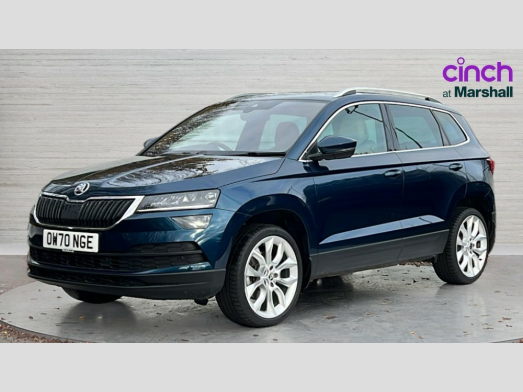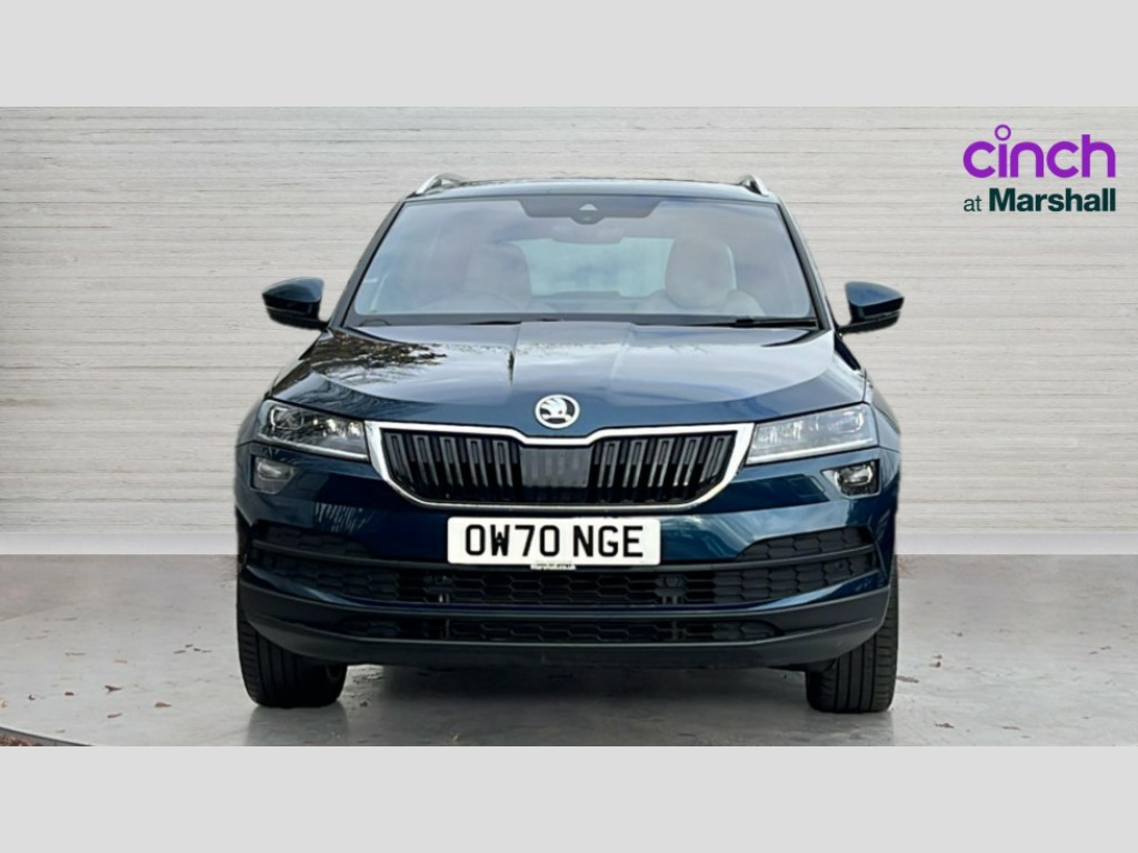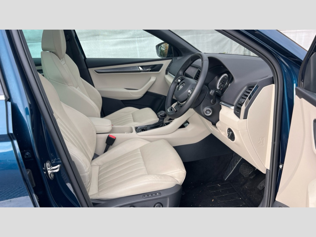 Skoda Karoq 1.5 TSI Edition 5dr DSG Care connect, Drive mode selector, Driver alert system, Driver fatigue sensor, Driver profile selection, Gesture control, Multifunction colour trip computer, Outside temperature gauge, Rear cross traffic alert, Rear view camera, Service interval indicator, SmartLink wireless for Apple and wired for Android, Start/stop system with regenerative braking, Traffic sign recognition, USB C Port x 2 in front centre console, Columbus satellite navigation with 9.2" touchscreen display and integrated WiFi, WLAN and web radio, DAB radio with Bluetooth, SD card slot, USB connection, Wireless charging without wireless aerial connection, Acoustic glass, Aero front windscreen wipers with intermittent function, Automatic headlight control system, Black electric window control buttons, Body colour door mirrors and handles, Body coloured bumpers, Electric front and rear windows with child proof lock, Full LED headlights + adaptive front light system + LED daytime running lights and front cornering fog lights, Headlight washers, Heated rear windscreen, LED rear lights with high functionality, Light assistant (coming/leaving home/tunnel light), Panoramic sliding sunroof, Privacy glass, Safety reflectors on front doors, Third brake light, 1.5 litre bottle holders in driver and front passenger door panels, 12V socket in boot, 12v socket in front centre armrest with storage compartment and rear air vents, 2 Folding hooks and nets in boot, 2 Front readings lights for driver and passenger, 3 rear height adjustable headrests, 4 foldable roof handles with rear coat hooks, 4 lashing points on luggage floor, Backrest release, Cargo elements in boot, Chrome inner door handles, Folding tables on the front seat backrests, Front head restraints, Front seat and rear pockets, Height adjustable front three point seats belts with tensioners, Height adjustable passenger seat, Height/reach adjust steering wheel, Ice scraper, Illuminated and cooled glovebox, Illuminated luggage compartment, Isofix child seat preparation outer rear, Leather upholstery, Net programme in boot, Pen holder, Pollen filter, Rear boot cover, Rear reading lights, Rear seats fixed folding and divided 60:40, Retractable parcel shelf attachable to tailgate, Safety vest holder, Storage box in upper central dashboard closed, Storage compartment below the passenger seat, Sunvisors with illuminated vanity mirrors, Textile floor mats, Umbrella under passenger seat, VarioFlex seats with retractable parcel shelf, Chrome roof rails + chrome pack - Karoq, Electrically adjustable driver's seat with memory function pack - Karoq, LED Interior lighting pack with Skoda welcome logo - Karoq, Airbags - Front side, head, knee and curtain, Automatic door unlocking in case of crash, Automatic fuel cut off in case of crash, Driver airbag, Electronic parking brake with auto hold function, Emergency rear braking signal, ESC including ABS, MSR, ASR, EDS, HBA, DSR, RBS, MKB and traction control, Front assist radar scanning of the space in front of the car with automatic braking, Hill hold control, Passenger airbag with switch-off function, Pedestrian monitor, Seatbelt reminder signalisation and pretensioner for all seats, Three point seatbelts rear, Two tone horn, Tyre pressure display, Tyre pressure monitor, Alarm with interior monitoring, back up horn and tilt sensor with safe function, Electronic engine immobiliser, Keyless entry and keyless start with safe system, Remote central locking with 2 remote folding keys, Chrome framed air vents, 19" Crater alloy wheels with anti theft wheel bolts, Storage on wheel cover
