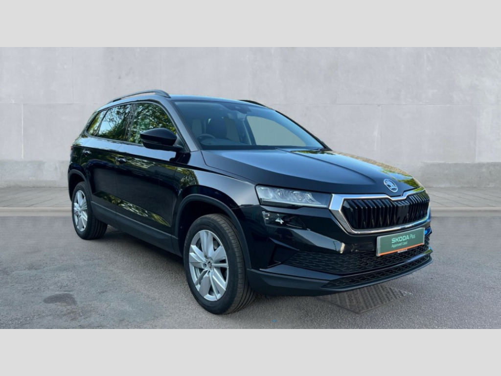 Skoda Karoq 1.5 TSI SE Drive 5dr DSG 8" Digital display, Advanced driver attention and drowsiness monitor, Amundsen navigation system with 8" touchscreen display and integrated WLAN and web radio, Electro-mechanical PAS, Emergency services call system, Lane assist, Outside temperature gauge, Sensor for driver assistance systems, Service interval indicator, SmartLink wireless for Apple and wired for Android, Start/stop system with regenerative braking, Traffic sign recognition, USB C Port x 2 in front centre console, Virtual Cockpit - 10.25" digital display, Wireless smartphone charging, 8 Speakers, DAB radio with Bluetooth, USB connection, Acoustic glass, Aero front windscreen wipers with intermittent function, Auto dimming rear view mirror with light and rain sensors, Black electric window control buttons, Body colour door mirrors and handles, Electric front and rear windows with child proof lock, Electrically adjustable heated folding and auto dimming door mirrors, Front fog lights, Headlight range control, Heated rear windscreen, LED daytime running lights, LED Headlights, LED rear lights with high functionality welcome effect and dynamic indicators, Light assistant (coming/leaving home/tunnel light), Plastic scuff plates in door apertures, Privacy glass, Rear side wing doors, Rear window wiper with washer system and intermittent control, Safety reflectors on front doors, Third brake light, 1.5 litre bottle holders in driver and front passenger door panels, 12V socket in boot, 12v socket in front centre armrest with storage compartment and rear air vents, 2 x Tablet holder, 3 rear height adjustable headrests, 3 seat bench in 2nd row, 4 foldable roof handles with rear coat hooks, Black floor carpet, Chrome inner door handles, Driver/front passenger reading lights, Foldable hooks in the boot, Folding tables on the front seat backrests, Front head restraints, Height adjustable driver and passenger seat, Height adjustable front three point seats belts with tensioners, Height/reach adjust steering wheel, Ice scraper, Illuminated glovebox, Illuminated luggage compartment, Interior noise suppression, Isofix child seat preparation for front passenger seat, Isofix child seat preparation outer rear, Loft fabric upholstery, Manual lumbar support for front seats, Pearl grey interior ceiling, Pen holder, Pollen filter, Rear boot cover, Rear reading lights, Rubbish bin door, Safety vest holder, Single front passenger seat, Storage box in upper central dashboard closed, Sunvisors with illuminated vanity mirrors, Textile floor mats, Ticket holder, Umbrella under passenger seat, Under passenger seat storage compartment, Non Smokers pack, Automatic door unlocking in case of crash, Automatic fuel cut off in case of crash, Driver airbag, Electronic parking brake with auto hold function, Emergency rear braking signal, ESC (incl. ABS+MSR+ASR+EDS+HBA+DSR+RBS+MKB), Front assist, Front side airbags, Head airbags, Hill hold control, Knee airbags, Passenger airbag with switch-off function, Pedestrian monitor, Seatbelt reminder signalisation and pretensioner for all seats, Three point seatbelts rear, Two tone horn, Tyre pressure monitor, Alarm with interior monitoring, back up horn and tilt sensor with safe function, Electronic engine immobiliser, Remote central locking with 2 remote folding keys, Anodized cross door decor, Black centre console, Chrome framed air vents, Satin black dashboard, Satin black door trim, Anti-theft wheel bolts protection, Breakdown and tool kit