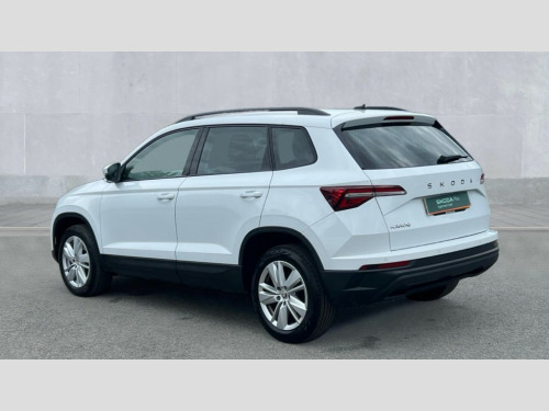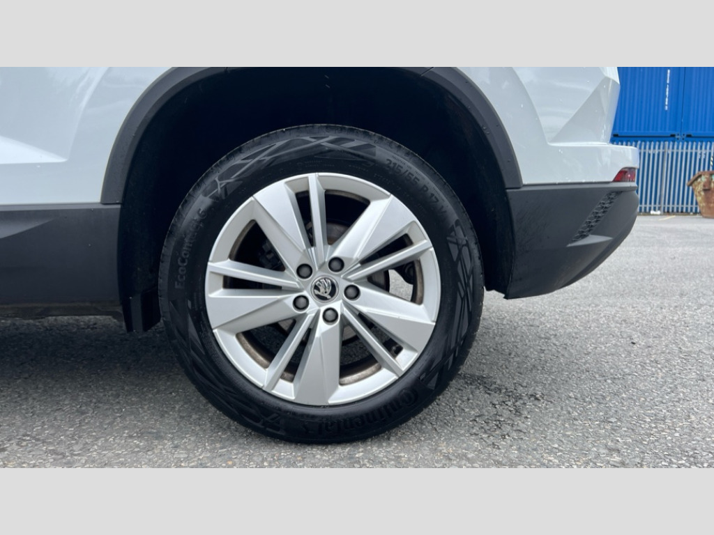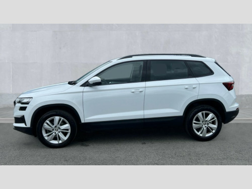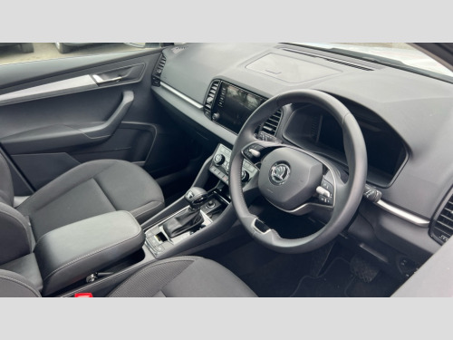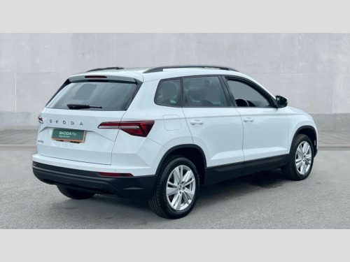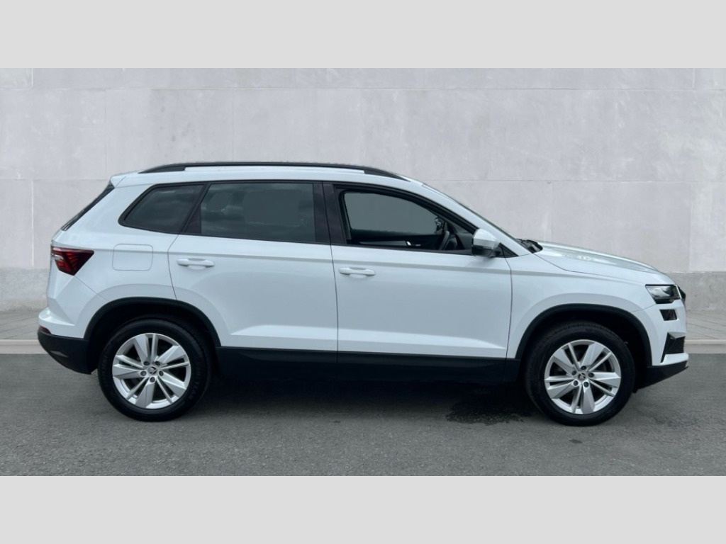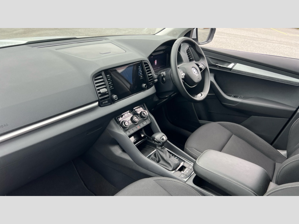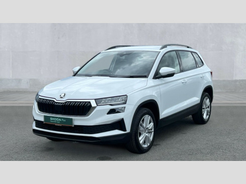 Skoda Karoq 1.5 TSI SE Drive 5dr DSG 8" Digital display, Advanced driver attention and drowsiness monitor, Amundsen navigation system with 8" touchscreen display and integrated WLAN and web radio, Electro-mechanical PAS, Emergency services call system, Lane assist, Outside temperature gauge, Sensor for driver assistance systems, Service interval indicator, SmartLink wireless for Apple and wired for Android, Start/stop system with regenerative braking, Traffic sign recognition, USB C Port x 2 in front centre console, Virtual Cockpit - 10.25" digital display, Wireless smartphone charging, 8 Speakers, DAB radio with Bluetooth, USB connection, Acoustic glass, Aero front windscreen wipers with intermittent function, Auto dimming rear view mirror with light and rain sensors, Black electric window control buttons, Body colour door mirrors and handles, Electric front and rear windows with child proof lock, Electrically adjustable heated folding and auto dimming door mirrors, Front fog lights, Headlight range control, Heated rear windscreen, LED daytime running lights, LED Headlights, LED rear lights with high functionality welcome effect and dynamic indicators, Light assistant (coming/leaving home/tunnel light), Plastic scuff plates in door apertures, Privacy glass, Rear side wing doors, Rear window wiper with washer system and intermittent control, Safety reflectors on front doors, Third brake light, 1.5 litre bottle holders in driver and front passenger door panels, 12V socket in boot, 12v socket in front centre armrest with storage compartment and rear air vents, 2 x Tablet holder, 3 rear height adjustable headrests, 3 seat bench in 2nd row, 4 foldable roof handles with rear coat hooks, Black floor carpet, Chrome inner door handles, Driver/front passenger reading lights, Foldable hooks in the boot, Folding tables on the front seat backrests, Front head restraints, Height adjustable driver and passenger seat, Height adjustable front three point seats belts with tensioners, Height/reach adjust steering wheel, Ice scraper, Illuminated glovebox, Illuminated luggage compartment, Interior noise suppression, Isofix child seat preparation for front passenger seat, Isofix child seat preparation outer rear, Loft fabric upholstery, Manual lumbar support for front seats, Pearl grey interior ceiling, Pen holder, Pollen filter, Rear boot cover, Rear reading lights, Rubbish bin door, Safety vest holder, Single front passenger seat, Storage box in upper central dashboard closed, Sunvisors with illuminated vanity mirrors, Textile floor mats, Ticket holder, Umbrella under passenger seat, Under passenger seat storage compartment, Non Smokers pack, Automatic door unlocking in case of crash, Automatic fuel cut off in case of crash, Driver airbag, Electronic parking brake with auto hold function, Emergency rear braking signal, ESC (incl. ABS+MSR+ASR+EDS+HBA+DSR+RBS+MKB), Front assist, Front side airbags, Head airbags, Hill hold control, Knee airbags, Passenger airbag with switch-off function, Pedestrian monitor, Seatbelt reminder signalisation and pretensioner for all seats, Three point seatbelts rear, Two tone horn, Tyre pressure monitor, Alarm with interior monitoring, back up horn and tilt sensor with safe function, Electronic engine immobiliser, Remote central locking with 2 remote folding keys, Anodized cross door decor, Black centre console, Chrome framed air vents, Satin black dashboard, Satin black door trim, Anti-theft wheel bolts protection, Breakdown and tool kit