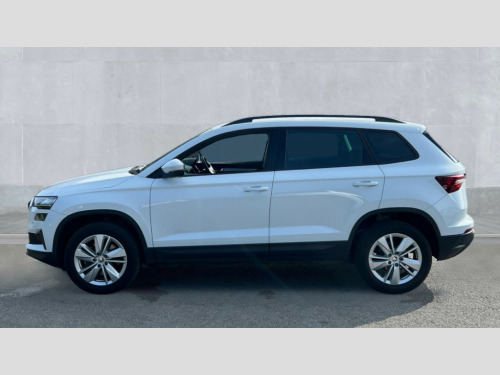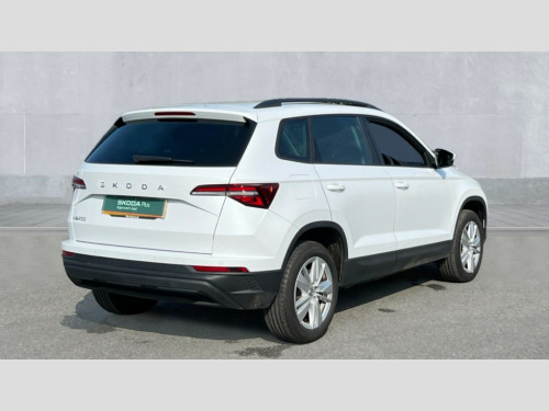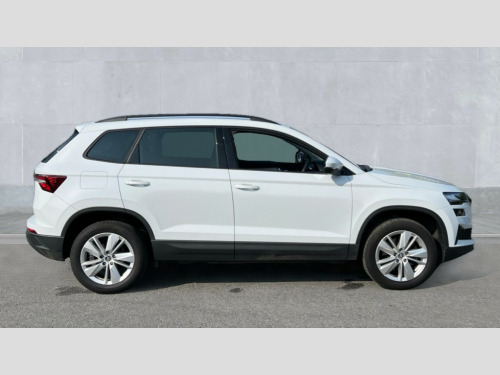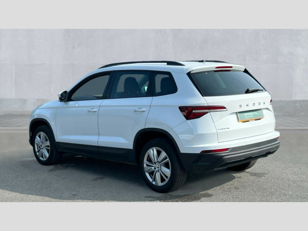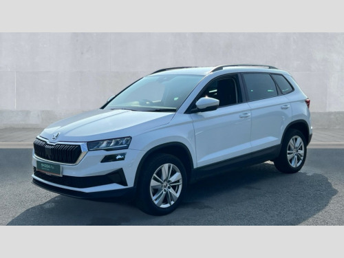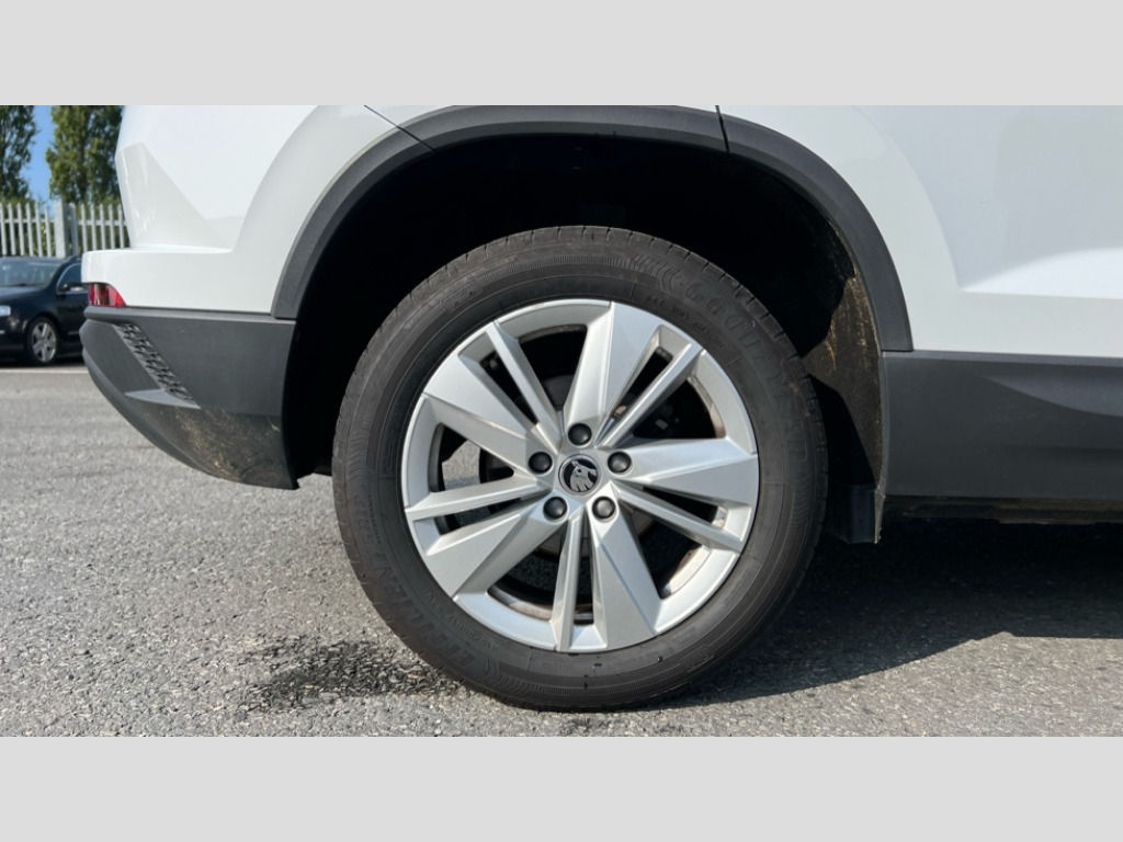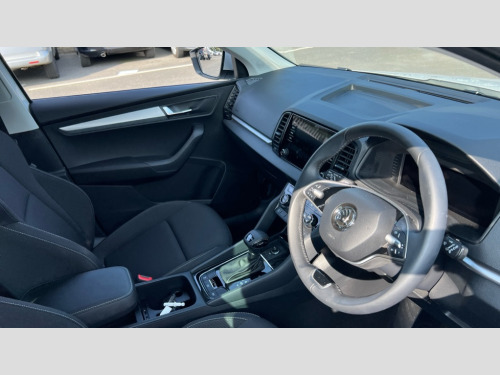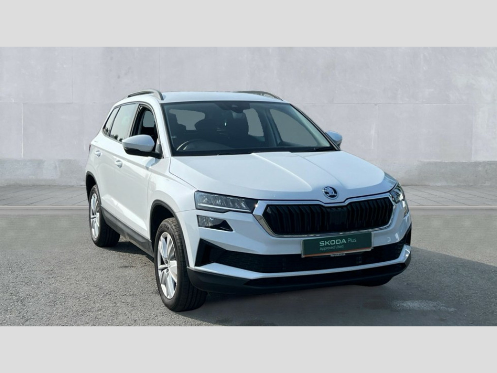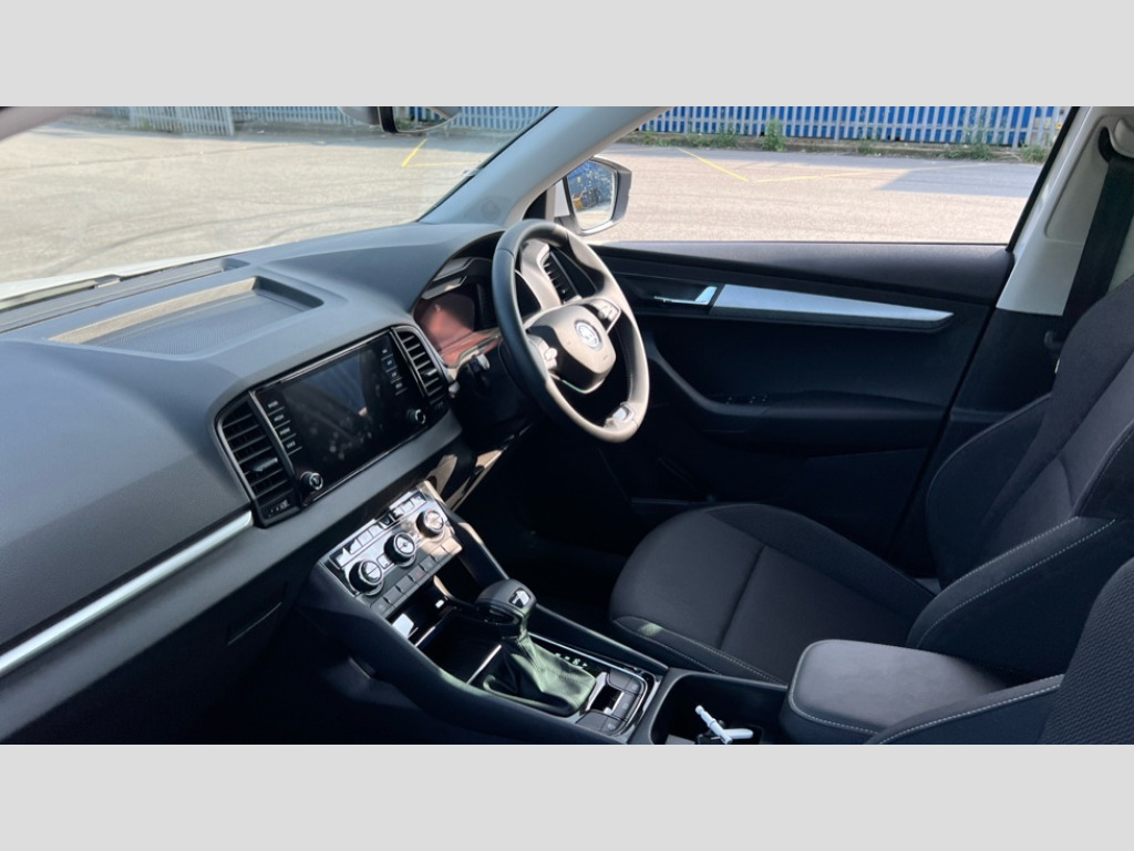 Skoda Karoq 1.5 TSI SE Drive 5dr DSG 8" Digital display, Advanced driver attention and drowsiness monitor, Amundsen navigation system with 8" touchscreen display and integrated WLAN and web radio, Electro-mechanical PAS, Emergency services call system, Lane assist, Outside temperature gauge, Sensor for driver assistance systems, Service interval indicator, SmartLink wireless for Apple and wired for Android, Start/stop system with regenerative braking, Traffic sign recognition, USB C Port x 2 in front centre console, Virtual Cockpit - 10.25" digital display, Wireless smartphone charging, 8 Speakers, DAB radio with Bluetooth, USB connection, Acoustic glass, Aero front windscreen wipers with intermittent function, Auto dimming rear view mirror with light and rain sensors, Black electric window control buttons, Body colour door mirrors and handles, Electric front and rear windows with child proof lock, Electrically adjustable heated folding and auto dimming door mirrors, Front fog lights, Headlight range control, Heated rear windscreen, LED daytime running lights, LED Headlights, LED rear lights with high functionality welcome effect and dynamic indicators, Light assistant (coming/leaving home/tunnel light), Plastic scuff plates in door apertures, Privacy glass, Rear side wing doors, Rear window wiper with washer system and intermittent control, Safety reflectors on front doors, Third brake light, 1.5 litre bottle holders in driver and front passenger door panels, 12V socket in boot, 12v socket in front centre armrest with storage compartment and rear air vents, 2 x Tablet holder, 3 rear height adjustable headrests, 3 seat bench in 2nd row, 4 foldable roof handles with rear coat hooks, Black floor carpet, Chrome inner door handles, Driver/front passenger reading lights, Foldable hooks in the boot, Folding tables on the front seat backrests, Front head restraints, Height adjustable driver and passenger seat, Height adjustable front three point seats belts with tensioners, Height/reach adjust steering wheel, Ice scraper, Illuminated glovebox, Illuminated luggage compartment, Interior noise suppression, Isofix child seat preparation for front passenger seat, Isofix child seat preparation outer rear, Loft fabric upholstery, Manual lumbar support for front seats, Pearl grey interior ceiling, Pen holder, Pollen filter, Rear boot cover, Rear reading lights, Rubbish bin door, Safety vest holder, Single front passenger seat, Storage box in upper central dashboard closed, Sunvisors with illuminated vanity mirrors, Textile floor mats, Ticket holder, Umbrella under passenger seat, Under passenger seat storage compartment, Non Smokers pack, Automatic door unlocking in case of crash, Automatic fuel cut off in case of crash, Driver airbag, Electronic parking brake with auto hold function, Emergency rear braking signal, ESC (incl. ABS+MSR+ASR+EDS+HBA+DSR+RBS+MKB), Front assist, Front side airbags, Head airbags, Hill hold control, Knee airbags, Passenger airbag with switch-off function, Pedestrian monitor, Seatbelt reminder signalisation and pretensioner for all seats, Three point seatbelts rear, Two tone horn, Tyre pressure monitor, Alarm with interior monitoring, back up horn and tilt sensor with safe function, Electronic engine immobiliser, Remote central locking with 2 remote folding keys, Anodized cross door decor, Black centre console, Chrome framed air vents, Satin black dashboard, Satin black door trim, Anti-theft wheel bolts protection, Breakdown and tool kit
