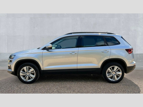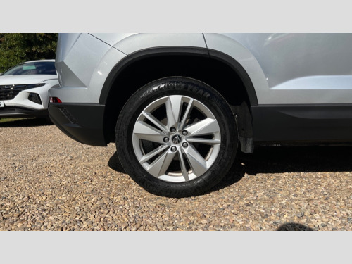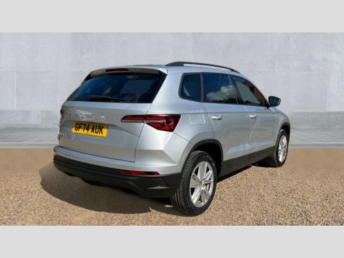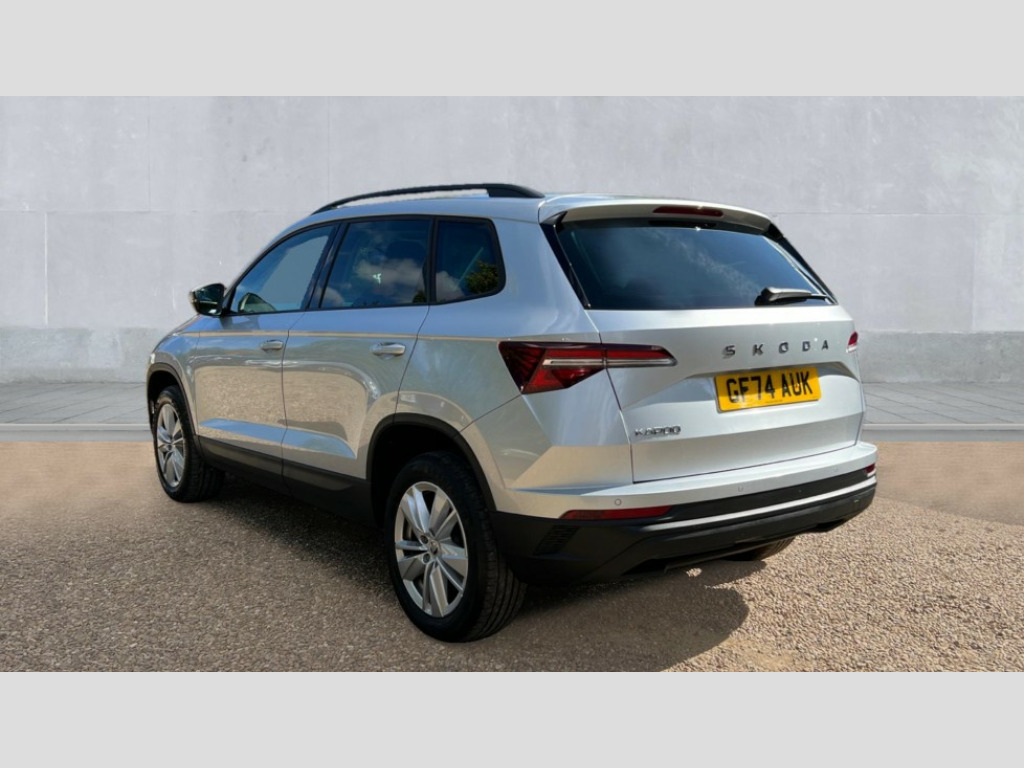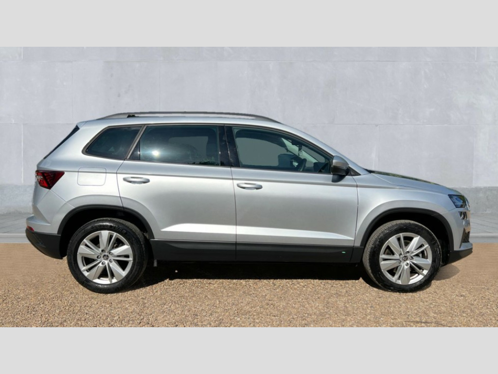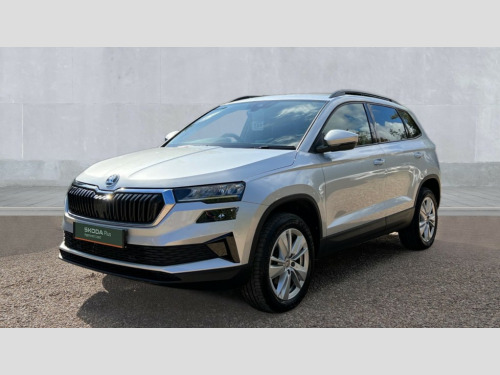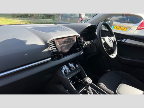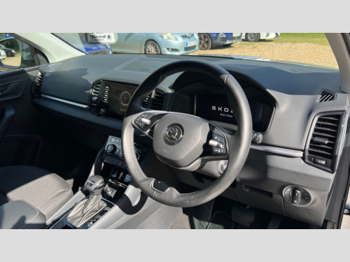 Skoda Karoq 1.5 TSI SE Drive 5dr DSG 8" Digital display, Advanced driver attention and drowsiness monitor, Amundsen navigation system with 8" touchscreen display and integrated WLAN and web radio, Electro-mechanical PAS, Emergency services call system, Lane assist, Outside temperature gauge, Sensor for driver assistance systems, Service interval indicator, SmartLink wireless for Apple and wired for Android, Start/stop system with regenerative braking, Traffic sign recognition, USB C Port x 2 in front centre console, Virtual Cockpit - 10.25" digital display, Wireless smartphone charging, 8 Speakers, DAB radio with Bluetooth, USB connection, Acoustic glass, Aero front windscreen wipers with intermittent function, Auto dimming rear view mirror with light and rain sensors, Black electric window control buttons, Body colour door mirrors and handles, Electric front and rear windows with child proof lock, Electrically adjustable heated folding and auto dimming door mirrors, Front fog lights, Headlight range control, Heated rear windscreen, LED daytime running lights, LED Headlights, LED rear lights with high functionality welcome effect and dynamic indicators, Light assistant (coming/leaving home/tunnel light), Plastic scuff plates in door apertures, Privacy glass, Rear side wing doors, Rear window wiper with washer system and intermittent control, Safety reflectors on front doors, Third brake light, 1.5 litre bottle holders in driver and front passenger door panels, 12V socket in boot, 12v socket in front centre armrest with storage compartment and rear air vents, 2 x Tablet holder, 3 rear height adjustable headrests, 3 seat bench in 2nd row, 4 foldable roof handles with rear coat hooks, Black floor carpet, Chrome inner door handles, Driver/front passenger reading lights, Foldable hooks in the boot, Folding tables on the front seat backrests, Front head restraints, Height adjustable driver and passenger seat, Height adjustable front three point seats belts with tensioners, Height/reach adjust steering wheel, Ice scraper, Illuminated glovebox, Illuminated luggage compartment, Interior noise suppression, Isofix child seat preparation for front passenger seat, Isofix child seat preparation outer rear, Loft fabric upholstery, Manual lumbar support for front seats, Pearl grey interior ceiling, Pen holder, Pollen filter, Rear boot cover, Rear reading lights, Rubbish bin door, Safety vest holder, Single front passenger seat, Storage box in upper central dashboard closed, Sunvisors with illuminated vanity mirrors, Textile floor mats, Ticket holder, Umbrella under passenger seat, Under passenger seat storage compartment, Non Smokers pack, Automatic door unlocking in case of crash, Automatic fuel cut off in case of crash, Driver airbag, Electronic parking brake with auto hold function, Emergency rear braking signal, ESC (incl. ABS+MSR+ASR+EDS+HBA+DSR+RBS+MKB), Front assist, Front side airbags, Head airbags, Hill hold control, Knee airbags, Passenger airbag with switch-off function, Pedestrian monitor, Seatbelt reminder signalisation and pretensioner for all seats, Three point seatbelts rear, Two tone horn, Tyre pressure monitor, Alarm with interior monitoring, back up horn and tilt sensor with safe function, Electronic engine immobiliser, Remote central locking with 2 remote folding keys, Anodized cross door decor, Black centre console, Chrome framed air vents, Satin black dashboard, Satin black door trim, Anti-theft wheel bolts protection, Breakdown and tool kit