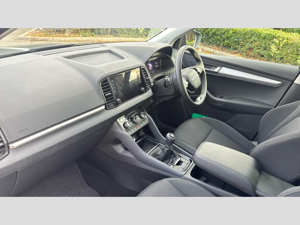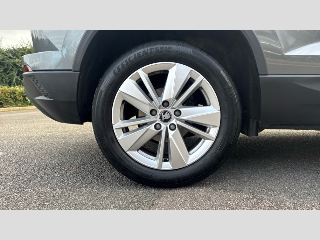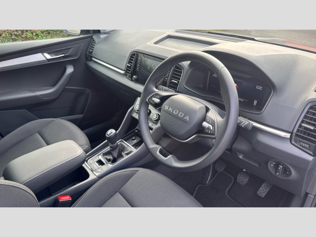 Virtual Cockpit with 10.25in Display Advanced driver attention and drowsiness monitor, Amundsen navigation system with 8" touchscreen display and integrated WLAN and web radio, Electro-mechanical PAS, Emergency services call system, Lane assist, Outside temperature gauge, Sensor for driver assistance systems, Service interval indicator, SmartLink wireless for Apple and wired for Android, Start/stop system with regenerative braking, Traffic sign recognition, USB C Port x 2 in front centre console, Virtual Cockpit - 10.25" digital display, Wireless smartphone charging, 8 Speakers, DAB radio with Bluetooth, USB connection, Acoustic glass, Aero front windscreen wipers with intermittent function, Auto dimming rear view mirror with light and rain sensors, Black electric window control buttons, Body colour door mirrors and handles, Electric front and rear windows with child proof lock, Electrically adjustable heated folding and auto dimming door mirrors, Front fog lights, Headlight range control, Heated rear windscreen, LED daytime running lights, LED Headlights, LED rear lights with high functionality welcome effect and dynamic indicators, Light assistant (coming/leaving home/tunnel light), Plastic scuff plates in door apertures, Privacy glass, Rear side wing doors, Rear window wiper with washer system and intermittent control, Safety reflectors on front doors, Third brake light, Unique dark chrome design logo on alloy wheels, 1.5 litre bottle holders in driver and front passenger door panels, 12V socket in boot, 12v socket in front centre armrest with storage compartment and rear air vents, 2 spoke leather heated multifunction steering wheel, 2 x Tablet holder, 3 rear height adjustable headrests, 3 seat bench in 2nd row, 4 foldable roof handles with rear coat hooks, Black floor carpet, Cargo elements in boot, Chrome inner door handles, Driver/front passenger reading lights, Foldable hooks in the boot, Folding tables on the front seat backrests, Front head restraints, Height adjustable driver and passenger seat, Height adjustable front three point seats belts with tensioners, Height/reach adjust steering wheel, Ice scraper, Illuminated glovebox, Illuminated luggage compartment, Interior noise suppression, Isofix child seat preparation for front passenger seat, Isofix child seat preparation outer rear, Loft fabric upholstery, Manual lumbar support for front seats, Pearl grey interior ceiling, Pen holder, Pollen filter, Rear boot cover, Rear package tray, Rear reading lights, Rubbish bin door, Safety vest holder, Single front passenger seat, Skoda lettering on steering wheel, Storage box in upper central dashboard closed, Sunvisors with illuminated vanity mirrors, Textile floor mats, Ticket holder, Umbrella under passenger seat, Under passenger seat storage compartment, Non Smokers pack, Parking pack - Karoq, Winter pack with heated front seats - Karoq, Automatic door unlocking in case of crash, Automatic fuel cut off in case of crash, Driver airbag, Electronic parking brake with auto hold function, Emergency rear braking signal, ESC (incl. ABS+MSR+ASR+EDS+HBA+DSR+RBS+MKB), Front assist, Front side airbags, Head airbags, Hill hold control, Knee airbags, Passenger airbag with switch-off function, Pedestrian monitor, Seatbelt reminder signalisation and pretensioner for all seats, Three point seatbelts rear, Two tone horn, Tyre pressure monitor, Alarm with interior monitoring, back up horn and tilt sensor with safe function, Electronic engine immobiliser, Keyless entry and start/stop, Remote central locking with 2 remote folding keys, Anodized cross door decor, Black centre console, Chrome framed air vents, Satin black dashboard, Satin black door trim, Anti-theft wheel bolts protection, Breakdown and tool kit