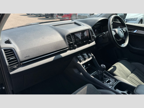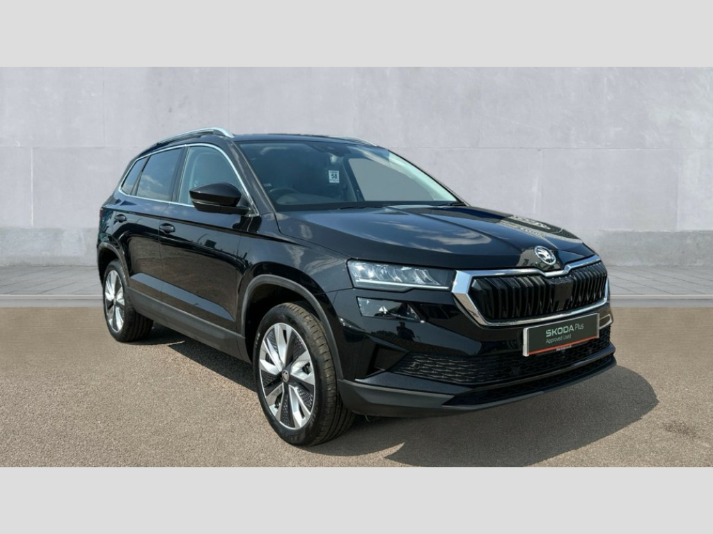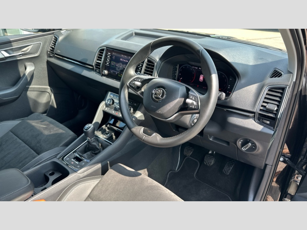 Skoda Karoq 1.5 TSI SE L 5dr 8" Digital display, Advanced driver attention and drowsiness monitor, Emergency services call system, Outside temperature gauge, Sensor for driver assistance systems, Service interval indicator, SmartLink wireless for Apple and wired for Android, Start/stop system with regenerative braking, USB C Port x 2 in front centre console, Virtual Cockpit - 10.25" digital display, Wireless smartphone charging, DAB radio with Bluetooth, USB connection, Acoustic glass, Aero front windscreen wipers with intermittent function, Auto dimming rear view mirror with light and rain sensors, Black electric window control buttons, Body colour door mirrors and handles, Electric front and rear windows with child proof lock, Heated rear windscreen, LED daytime running lights, LED rear lights with high functionality welcome effect and dynamic indicators, Light assistant (coming/leaving home/tunnel light), Plastic scuff plates in door apertures, Privacy glass, Rear side wing doors, Rear spoiler, Rear window wiper with washer system and intermittent control, Safety reflectors on front doors, Third brake light, 1.5 litre bottle holders in driver and front passenger door panels, 12V socket in boot, 12v socket in front centre armrest with storage compartment and rear air vents, 2 spoke leather heated multifunction steering wheel, 2 x Tablet holder, 3 rear height adjustable headrests, 3 seat bench in 2nd row, 4 foldable roof handles with rear coat hooks, Black floor carpet, Chrome inner door handles, Foldable hooks in the boot, Front head restraints, Height adjustable front three point seats belts with tensioners, Height/reach adjust steering wheel, Ice scraper, Illuminated glovebox, Illuminated luggage compartment, Interior noise suppression, Isofix child seat preparation for front passenger seat, Isofix child seat preparation outer rear, Manual lumbar support for front seats, Pearl grey interior ceiling, Pen holder, Pollen filter, Rear boot cover, Rear reading lights, Rubbish bin door, Safety vest holder, Single front passenger seat, Storage box in upper central dashboard closed, Sunvisors with illuminated vanity mirrors, Textile floor mats, Ticket holder, Design Pack - Karoq, Non Smokers pack, Parking pack - Karoq, Automatic door unlocking in case of crash, Automatic fuel cut off in case of crash, Driver airbag, Electronic parking brake with auto hold function, Emergency rear braking signal, ESC (incl. ABS+MSR+ASR+EDS+HBA+DSR+RBS+MKB), Front side airbags, Head airbags, Hill hold control, Knee airbags, Passenger airbag with switch-off function, Pedestrian monitor, Seatbelt reminder signalisation and pretensioner for all seats, Three point seatbelts rear, Two tone horn, Tyre pressure monitor, Alarm with interior monitoring, back up horn and tilt sensor with safe function, Electronic engine immobiliser, Keyless entry and start/stop, Remote central locking with 2 remote folding keys, Black centre console, Chrome framed air vents, Satin black dashboard, Anti-theft wheel bolts protection, Breakdown and tool kit