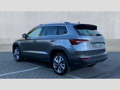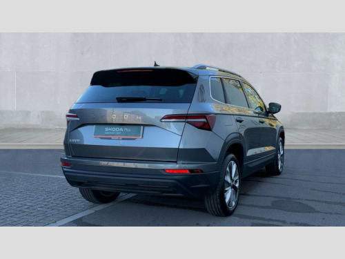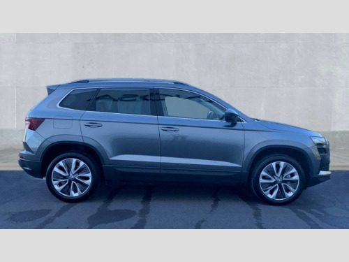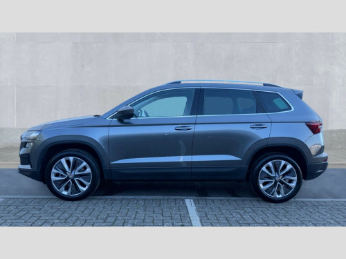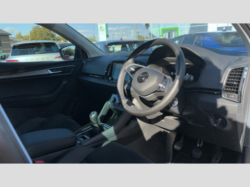 Skoda Karoq 1.5 TSI SE L 5dr 8" Digital display, Advanced driver attention and drowsiness monitor, Emergency services call system, Outside temperature gauge, Sensor for driver assistance systems, Service interval indicator, SmartLink wireless for Apple and wired for Android, Start/stop system with regenerative braking, USB C Port x 2 in front centre console, Virtual Cockpit - 10.25" digital display, Wireless smartphone charging, DAB radio with Bluetooth, USB connection, Acoustic glass, Aero front windscreen wipers with intermittent function, Auto dimming rear view mirror with light and rain sensors, Black electric window control buttons, Body colour door mirrors and handles, Electric front and rear windows with child proof lock, Heated rear windscreen, LED daytime running lights, LED rear lights with high functionality welcome effect and dynamic indicators, Light assistant (coming/leaving home/tunnel light), Plastic scuff plates in door apertures, Privacy glass, Rear side wing doors, Rear spoiler, Rear window wiper with washer system and intermittent control, Safety reflectors on front doors, Third brake light, 1.5 litre bottle holders in driver and front passenger door panels, 12V socket in boot, 12v socket in front centre armrest with storage compartment and rear air vents, 2 spoke leather heated multifunction steering wheel, 2 x Tablet holder, 3 rear height adjustable headrests, 3 seat bench in 2nd row, 4 foldable roof handles with rear coat hooks, Black floor carpet, Chrome inner door handles, Foldable hooks in the boot, Front head restraints, Height adjustable front three point seats belts with tensioners, Height/reach adjust steering wheel, Ice scraper, Illuminated glovebox, Illuminated luggage compartment, Interior noise suppression, Isofix child seat preparation for front passenger seat, Isofix child seat preparation outer rear, Manual lumbar support for front seats, Pearl grey interior ceiling, Pen holder, Pollen filter, Rear boot cover, Rear reading lights, Rubbish bin door, Safety vest holder, Single front passenger seat, Storage box in upper central dashboard closed, Sunvisors with illuminated vanity mirrors, Textile floor mats, Ticket holder, Design Pack - Karoq, Non Smokers pack, Parking pack - Karoq, Automatic door unlocking in case of crash, Automatic fuel cut off in case of crash, Driver airbag, Electronic parking brake with auto hold function, Emergency rear braking signal, ESC (incl. ABS+MSR+ASR+EDS+HBA+DSR+RBS+MKB), Front side airbags, Head airbags, Hill hold control, Knee airbags, Passenger airbag with switch-off function, Pedestrian monitor, Seatbelt reminder signalisation and pretensioner for all seats, Three point seatbelts rear, Two tone horn, Tyre pressure monitor, Alarm with interior monitoring, back up horn and tilt sensor with safe function, Electronic engine immobiliser, Keyless entry and start/stop, Remote central locking with 2 remote folding keys, Black centre console, Chrome framed air vents, Satin black dashboard, Anti-theft wheel bolts protection, Breakdown and tool kit