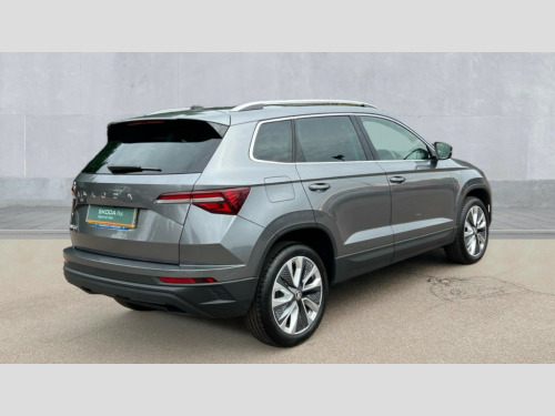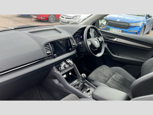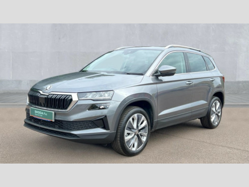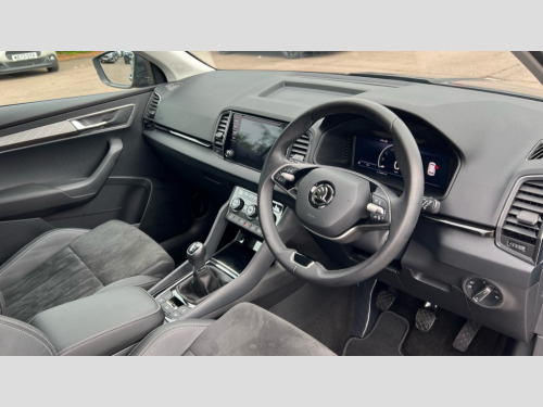 Skoda Karoq 1.5 TSI SE L 5dr 8" Digital display, Advanced driver attention and drowsiness monitor, Emergency services call system, Outside temperature gauge, Sensor for driver assistance systems, Service interval indicator, SmartLink wireless for Apple and wired for Android, Start/stop system with regenerative braking, USB C Port x 2 in front centre console, Virtual Cockpit - 10.25" digital display, Wireless smartphone charging, DAB radio with Bluetooth, USB connection, Acoustic glass, Aero front windscreen wipers with intermittent function, Auto dimming rear view mirror with light and rain sensors, Black electric window control buttons, Body colour door mirrors and handles, Electric front and rear windows with child proof lock, Heated rear windscreen, LED daytime running lights, LED rear lights with high functionality welcome effect and dynamic indicators, Light assistant (coming/leaving home/tunnel light), Plastic scuff plates in door apertures, Privacy glass, Rear side wing doors, Rear spoiler, Rear window wiper with washer system and intermittent control, Safety reflectors on front doors, Third brake light, 1.5 litre bottle holders in driver and front passenger door panels, 12V socket in boot, 12v socket in front centre armrest with storage compartment and rear air vents, 2 spoke leather heated multifunction steering wheel, 2 x Tablet holder, 3 rear height adjustable headrests, 3 seat bench in 2nd row, 4 foldable roof handles with rear coat hooks, Black floor carpet, Chrome inner door handles, Foldable hooks in the boot, Front head restraints, Height adjustable front three point seats belts with tensioners, Height/reach adjust steering wheel, Ice scraper, Illuminated glovebox, Illuminated luggage compartment, Interior noise suppression, Isofix child seat preparation for front passenger seat, Isofix child seat preparation outer rear, Manual lumbar support for front seats, Pearl grey interior ceiling, Pen holder, Pollen filter, Rear boot cover, Rear reading lights, Rubbish bin door, Safety vest holder, Single front passenger seat, Storage box in upper central dashboard closed, Sunvisors with illuminated vanity mirrors, Textile floor mats, Ticket holder, Design Pack - Karoq, Non Smokers pack, Parking pack - Karoq, Automatic door unlocking in case of crash, Automatic fuel cut off in case of crash, Driver airbag, Electronic parking brake with auto hold function, Emergency rear braking signal, ESC (incl. ABS+MSR+ASR+EDS+HBA+DSR+RBS+MKB), Front side airbags, Head airbags, Hill hold control, Knee airbags, Passenger airbag with switch-off function, Pedestrian monitor, Seatbelt reminder signalisation and pretensioner for all seats, Three point seatbelts rear, Two tone horn, Tyre pressure monitor, Alarm with interior monitoring, back up horn and tilt sensor with safe function, Electronic engine immobiliser, Keyless entry and start/stop, Remote central locking with 2 remote folding keys, Black centre console, Chrome framed air vents, Satin black dashboard, Anti-theft wheel bolts protection, Breakdown and tool kit