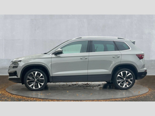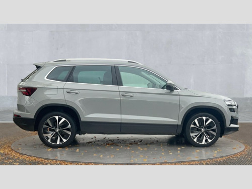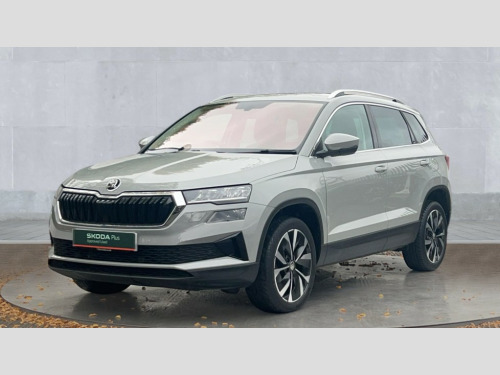 Skoda Karoq 1.5 TSI SE L 5dr 8" Digital display, Care connect, Driver fatigue sensor, Emergency services call system, Outside temperature gauge, Service interval indicator, SmartLink wireless for Apple and wired for Android, Start/stop system with regenerative braking, USB C Port x 2 in front centre console, 8 Speakers, DAB radio with Bluetooth, USB connection, Acoustic glass, Aero front windscreen wipers with intermittent function, Auto dimming rear view mirror with light and rain sensors, Black electric window control buttons, Body colour door mirrors and handles, Dynamic headlight range control with cornering light function, Electric front and rear windows with child proof lock, Heated rear windscreen, LED daytime running lights, LED rear lights with high functionality welcome effect and dynamic indicators, Light assistant (coming/leaving home/tunnel light), Plastic scuff plates, Privacy glass, Rear side wing doors, Rear spoiler, Rear window wiper with washer system and intermittent control, Safety reflectors on front doors, 1.5 litre bottle holders in driver and front passenger door panels, 12V socket in boot, 12v socket in front centre armrest with storage compartment and rear air vents, 2 Folding hooks and nets in boot, 2 spoke leather heated multifunction steering wheel, 2 x Tablet holder, 3 rear height adjustable headrests, 3 seat bench in 2nd row, 4 foldable roof handles with rear coat hooks, Black floor carpet, Chrome inner door handles, Decorative door sills with KAROQ badging, Double sided boot floor, Foldable hooks in the boot, Front head restraints, Height adjustable front three point seats belts with tensioners, Height/reach adjust steering wheel, Ice scraper, Illuminated glovebox, Illuminated luggage compartment, Isofix child seat preparation for front passenger seat, Isofix child seat preparation outer rear, Manual lumbar support for front seats, Pen holder, Pollen filter, Rear boot cover, Rear reading lights, Rubbish bin door, Safety vest holder, Single front passenger seat, Storage box in upper central dashboard closed, Sunvisors with illuminated vanity mirrors, Textile floor mats, Ticket holder, VarioFlex seats with standard rear seat release, Chrome roof rails + chrome pack - Karoq, Parking pack - Karoq, Automatic door unlocking in case of crash, Automatic fuel cut off in case of crash, Child locks on rear doors, Driver airbag, Electronic parking brake with auto hold function, Emergency rear braking signal, ESC including ABS, MSR, ASR, EDS, HBA, DSR, RBS, MKB and traction control, Front side airbags, Hill hold control, Knee airbags, Passenger airbag with switch-off function, Pedestrian monitor, Seatbelt reminder signalisation and pretensioner for all seats, Three point seatbelts rear, Two tone horn, Tyre pressure display, Tyre pressure monitor, Alarm with interior monitoring, back up horn and tilt sensor with safe function, Electronic engine immobiliser, Keyless entry and start/stop, Remote central locking with 2 remote folding keys, Chrome framed air vents, 18" Procyon silver alloy wheels with anthracite aero inserts, Anti-theft wheel bolts protection, Storage on wheel cover, Tool kit