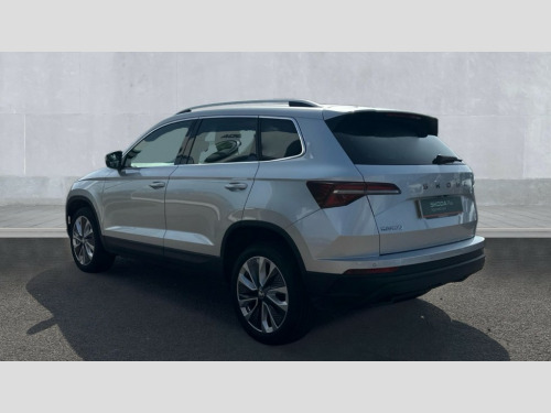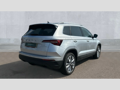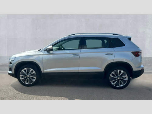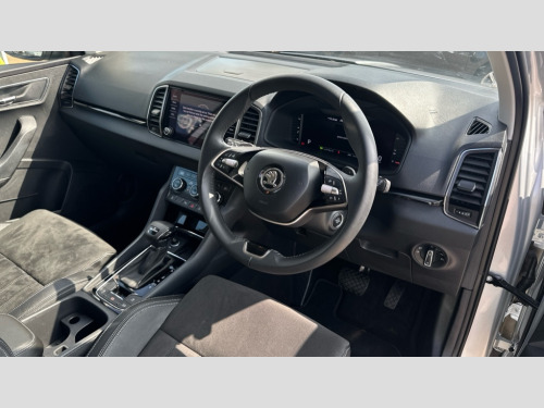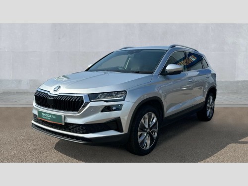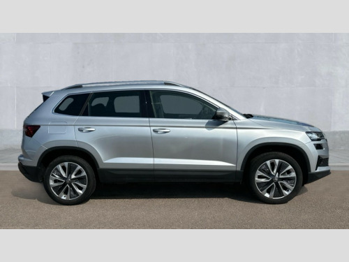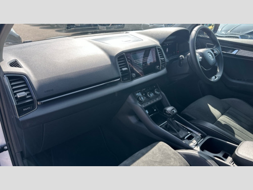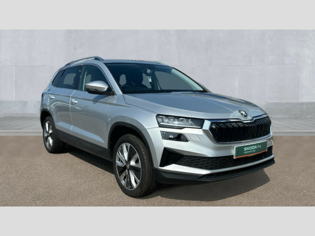Skoda Karoq 1.5 TSI SE L 5dr DSG 8" Digital display, Advanced driver attention and drowsiness monitor, Emergency services call system, Outside temperature gauge, Sensor for driver assistance systems, Service interval indicator, SmartLink wireless for Apple and wired for Android, Start/stop system with regenerative braking, USB C Port x 2 in front centre console, Virtual Cockpit - 10.25" digital display, Wireless smartphone charging, DAB radio with Bluetooth, USB connection, Acoustic glass, Aero front windscreen wipers with intermittent function, Auto dimming rear view mirror with light and rain sensors, Black electric window control buttons, Body colour door mirrors and handles, Electric front and rear windows with child proof lock, Heated rear windscreen, LED daytime running lights, LED rear lights with high functionality welcome effect and dynamic indicators, Light assistant (coming/leaving home/tunnel light), Plastic scuff plates in door apertures, Privacy glass, Rear side wing doors, Rear spoiler, Rear window wiper with washer system and intermittent control, Safety reflectors on front doors, Third brake light, 1.5 litre bottle holders in driver and front passenger door panels, 12V socket in boot, 12v socket in front centre armrest with storage compartment and rear air vents, 2 spoke leather heated multifunction steering wheel with DSG paddles, 2 x Tablet holder, 3 rear height adjustable headrests, 3 seat bench in 2nd row, 4 foldable roof handles with rear coat hooks, Black floor carpet, Chrome inner door handles, Foldable hooks in the boot, Front head restraints, Height adjustable front three point seats belts with tensioners, Height/reach adjust steering wheel, Ice scraper, Illuminated glovebox, Illuminated luggage compartment, Interior noise suppression, Isofix child seat preparation for front passenger seat, Isofix child seat preparation outer rear, Manual lumbar support for front seats, Pearl grey interior ceiling, Pen holder, Pollen filter, Rear boot cover, Rear reading lights, Rubbish bin door, Safety vest holder, Single front passenger seat, Storage box in upper central dashboard closed, Sunvisors with illuminated vanity mirrors, Textile floor mats, Ticket holder, Design Pack - Karoq, Non Smokers pack, Parking pack - Karoq, Automatic door unlocking in case of crash, Automatic fuel cut off in case of crash, Driver airbag, Electronic parking brake with auto hold function, Emergency rear braking signal, ESC (incl. ABS+MSR+ASR+EDS+HBA+DSR+RBS+MKB), Front side airbags, Head airbags, Hill hold control, Knee airbags, Passenger airbag with switch-off function, Pedestrian monitor, Seatbelt reminder signalisation and pretensioner for all seats, Three point seatbelts rear, Two tone horn, Tyre pressure monitor, Alarm with interior monitoring, back up horn and tilt sensor with safe function, Electronic engine immobiliser, Keyless entry and start/stop, Remote central locking with 2 remote folding keys, Black centre console, Chrome framed air vents, Satin black dashboard, Anti-theft wheel bolts protection, Breakdown and tool kit