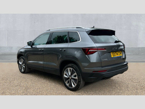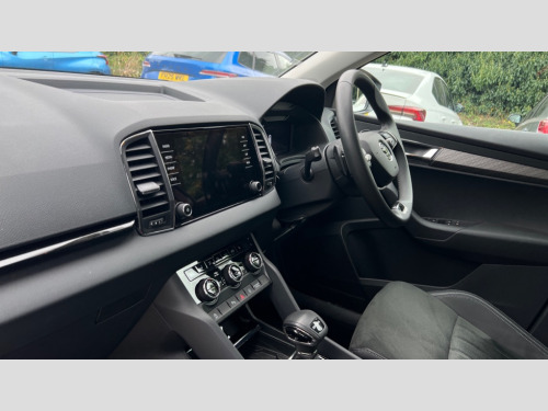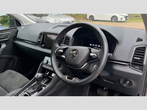 The Skoda Karoq delivers an impressive fuel economy of 46 mpg, meaning lower running costs than similar vehicles. The spacious boot provides ample room for luggage, shopping, or equipment. With low CO2 emissions and acceleration from 0 to 60mph in just 8.7 seconds, this vehicle offers a balance of performance and environmental consciousness that is better than similar vehicles. 8" Digital display, Advanced driver attention and drowsiness monitor, Emergency services call system, Outside temperature gauge, Sensor for driver assistance systems, Service interval indicator, SmartLink wireless for Apple and wired for Android, Start/stop system with regenerative braking, USB C Port x 2 in front centre console, Virtual Cockpit - 10.25" digital display, Wireless smartphone charging, DAB radio with Bluetooth, USB connection, Acoustic glass, Aero front windscreen wipers with intermittent function, Auto dimming rear view mirror with light and rain sensors, Black electric window control buttons, Body colour door mirrors and handles, Electric front and rear windows with child proof lock, Heated rear windscreen, LED daytime running lights, LED rear lights with high functionality welcome effect and dynamic indicators, Light assistant (coming/leaving home/tunnel light), Plastic scuff plates in door apertures, Privacy glass, Rear side wing doors, Rear spoiler, Rear window wiper with washer system and intermittent control, Safety reflectors on front doors, Third brake light, 1.5 litre bottle holders in driver and front passenger door panels, 12V socket in boot, 12v socket in front centre armrest with storage compartment and rear air vents, 2 spoke leather heated multifunction steering wheel with DSG paddles, 2 x Tablet holder, 3 rear height adjustable headrests, 3 seat bench in 2nd row, 4 foldable roof handles with rear coat hooks, Black floor carpet, Chrome inner door handles, Foldable hooks in the boot, Front head restraints, Height adjustable front three point seats belts with tensioners, Height/reach adjust steering wheel, Ice scraper, Illuminated glovebox, Illuminated luggage compartment, Interior noise suppression, Isofix child seat preparation for front passenger seat, Isofix child seat preparation outer rear, Manual lumbar support for front seats, Pearl grey interior ceiling, Pen holder, Pollen filter, Rear boot cover, Rear reading lights, Rubbish bin door, Safety vest holder, Single front passenger seat, Storage box in upper central dashboard closed, Sunvisors with illuminated vanity mirrors, Textile floor mats, Ticket holder, Design Pack - Karoq, Non Smokers pack, Parking pack - Karoq, Automatic door unlocking in case of crash, Automatic fuel cut off in case of crash, Driver airbag, Electronic parking brake with auto hold function, Emergency rear braking signal, ESC (incl. ABS+MSR+ASR+EDS+HBA+DSR+RBS+MKB), Front side airbags, Head airbags, Hill hold control, Knee airbags, Passenger airbag with switch-off function, Pedestrian monitor, Seatbelt reminder signalisation and pretensioner for all seats, Three point seatbelts rear, Two tone horn, Tyre pressure monitor, Alarm with interior monitoring, back up horn and tilt sensor with safe function, Electronic engine immobiliser, Keyless entry and start/stop, Remote central locking with 2 remote folding keys, Black centre console, Chrome framed air vents, Satin black dashboard, Anti-theft wheel bolts protection, Breakdown and tool kit