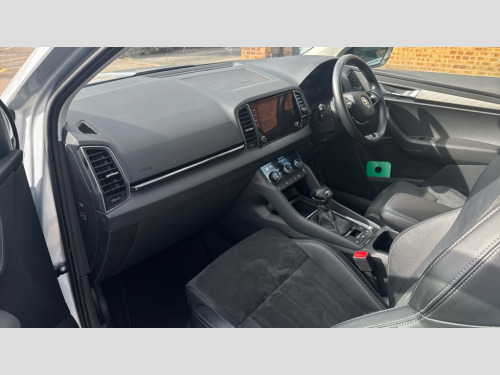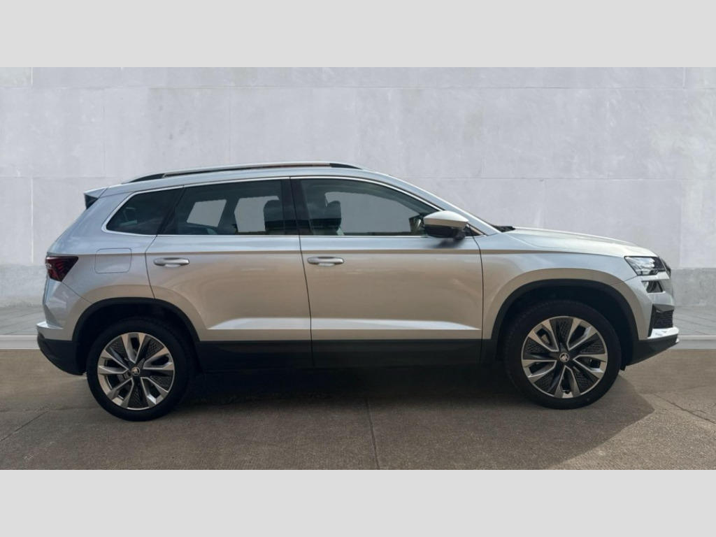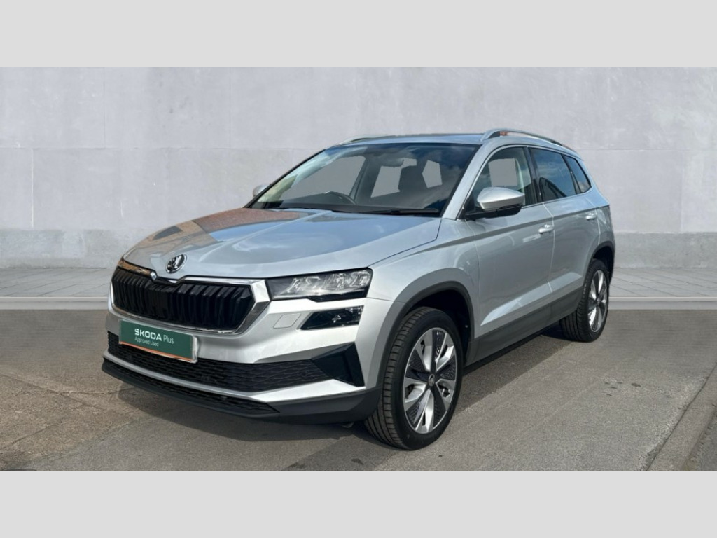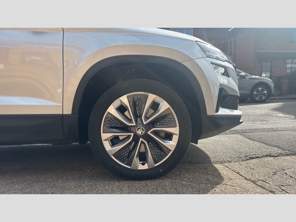 Cruise Control 8" Digital display, Care connect, Driver fatigue sensor, Emergency services call system, Outside temperature gauge, Service interval indicator, SmartLink wireless for Apple and wired for Android, Start/stop system with regenerative braking, USB C Port x 2 in front centre console, 8 Speakers, DAB radio with Bluetooth, USB connection, Acoustic glass, Aero front windscreen wipers with intermittent function, Auto dimming rear view mirror with light and rain sensors, Black electric window control buttons, Body colour door mirrors and handles, Dynamic headlight range control with cornering light function, Electric front and rear windows with child proof lock, Heated rear windscreen, LED daytime running lights, LED rear lights with high functionality welcome effect and dynamic indicators, Light assistant (coming/leaving home/tunnel light), Plastic scuff plates, Privacy glass, Rear side wing doors, Rear spoiler, Rear window wiper with washer system and intermittent control, Safety reflectors on front doors, 1.5 litre bottle holders in driver and front passenger door panels, 12V socket in boot, 12v socket in front centre armrest with storage compartment and rear air vents, 2 spoke leather heated multifunction steering wheel with DSG paddles, 2 x Tablet holder, 3 rear height adjustable headrests, 3 seat bench in 2nd row, 4 foldable roof handles with rear coat hooks, Black floor carpet, Chrome inner door handles, Double sided boot floor, Foldable hooks in the boot, Front head restraints, Height adjustable front three point seats belts with tensioners, Height/reach adjust steering wheel, Ice scraper, Illuminated glovebox, Illuminated luggage compartment, Isofix child seat preparation for front passenger seat, Isofix child seat preparation outer rear, Manual lumbar support for front seats, Pen holder, Pollen filter, Rear boot cover, Rear reading lights, Rubbish bin door, Safety vest holder, Single front passenger seat, Storage box in upper central dashboard closed, Sunvisors with illuminated vanity mirrors, Textile floor mats, Ticket holder, VarioFlex seats with standard rear seat release, Boot pack - Karoq, Design Pack - Karoq, Parking pack - Karoq, Automatic door unlocking in case of crash, Automatic fuel cut off in case of crash, Child locks on rear doors, Driver airbag, Electronic parking brake with auto hold function, Emergency rear braking signal, ESC including ABS, MSR, ASR, EDS, HBA, DSR, RBS, MKB and traction control, Front side airbags, Hill hold control, Knee airbags, Passenger airbag with switch-off function, Pedestrian monitor, Seatbelt reminder signalisation and pretensioner for all seats, Three point seatbelts rear, Two tone horn, Tyre pressure display, Tyre pressure monitor, Alarm with interior monitoring, back up horn and tilt sensor with safe function, Electronic engine immobiliser, Keyless entry and start/stop, Remote central locking with 2 remote folding keys, Chrome framed air vents, 18" Miran alloy wheels in black, Anti-theft wheel bolts protection, Tool kit