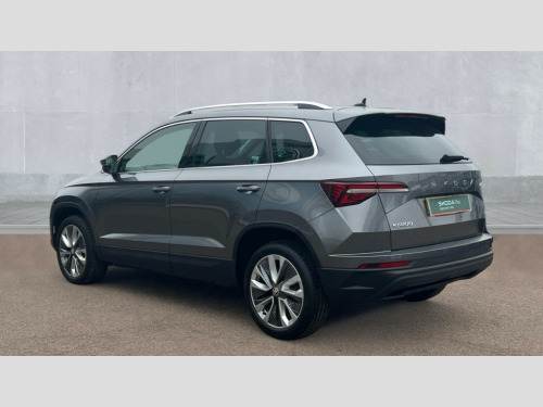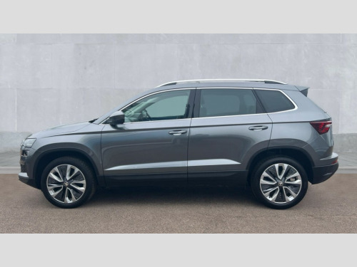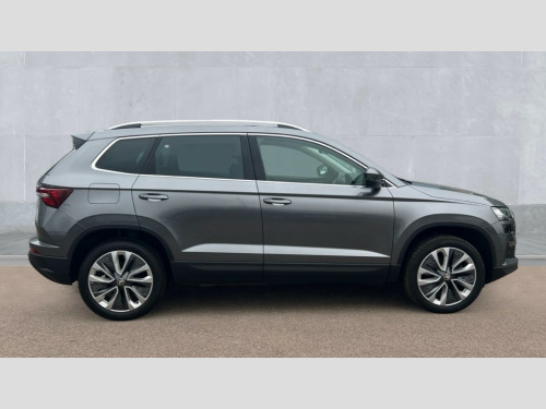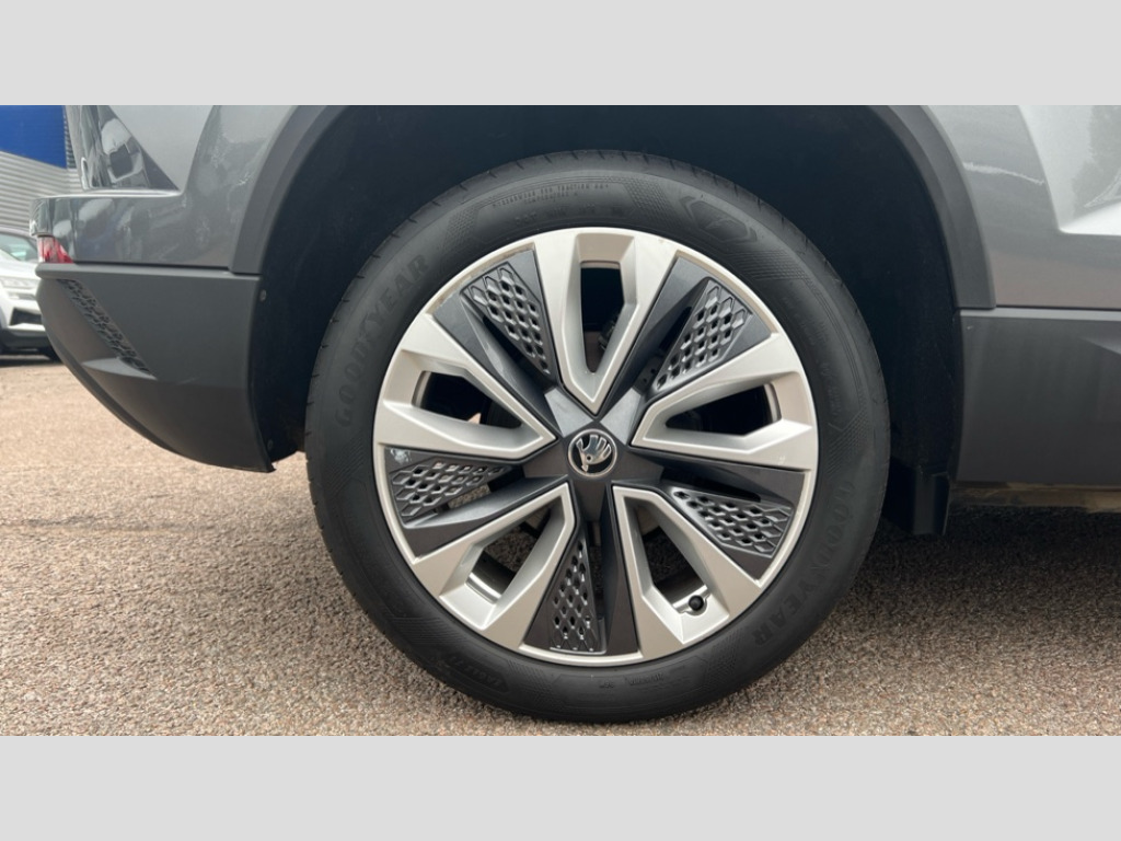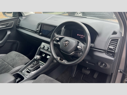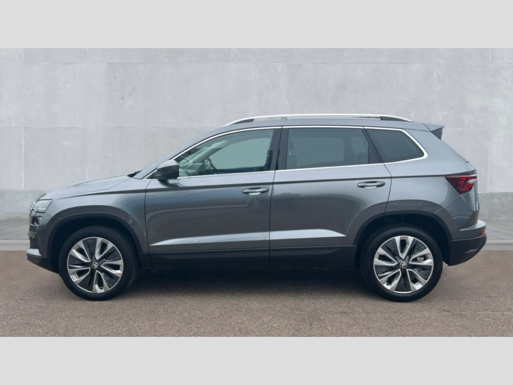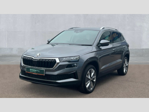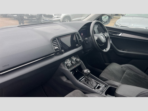 Skoda Karoq 1.5 TSI SE L 5dr DSG 8" Digital display, Advanced driver attention and drowsiness monitor, Emergency services call system, Outside temperature gauge, Sensor for driver assistance systems, Service interval indicator, SmartLink wireless for Apple and wired for Android, Start/stop system with regenerative braking, USB C Port x 2 in front centre console, Virtual Cockpit - 10.25" digital display, Wireless smartphone charging, DAB radio with Bluetooth, USB connection, Acoustic glass, Aero front windscreen wipers with intermittent function, Auto dimming rear view mirror with light and rain sensors, Black electric window control buttons, Body colour door mirrors and handles, Electric front and rear windows with child proof lock, Heated rear windscreen, LED daytime running lights, LED rear lights with high functionality welcome effect and dynamic indicators, Light assistant (coming/leaving home/tunnel light), Plastic scuff plates in door apertures, Privacy glass, Rear side wing doors, Rear spoiler, Rear window wiper with washer system and intermittent control, Safety reflectors on front doors, Third brake light, 1.5 litre bottle holders in driver and front passenger door panels, 12V socket in boot, 12v socket in front centre armrest with storage compartment and rear air vents, 2 spoke leather heated multifunction steering wheel with DSG paddles, 2 x Tablet holder, 3 rear height adjustable headrests, 3 seat bench in 2nd row, 4 foldable roof handles with rear coat hooks, Black floor carpet, Chrome inner door handles, Foldable hooks in the boot, Front head restraints, Height adjustable front three point seats belts with tensioners, Height/reach adjust steering wheel, Ice scraper, Illuminated glovebox, Illuminated luggage compartment, Interior noise suppression, Isofix child seat preparation for front passenger seat, Isofix child seat preparation outer rear, Manual lumbar support for front seats, Pearl grey interior ceiling, Pen holder, Pollen filter, Rear boot cover, Rear reading lights, Rubbish bin door, Safety vest holder, Single front passenger seat, Storage box in upper central dashboard closed, Sunvisors with illuminated vanity mirrors, Textile floor mats, Ticket holder, Design Pack - Karoq, Non Smokers pack, Parking pack - Karoq, Automatic door unlocking in case of crash, Automatic fuel cut off in case of crash, Driver airbag, Electronic parking brake with auto hold function, Emergency rear braking signal, ESC (incl. ABS+MSR+ASR+EDS+HBA+DSR+RBS+MKB), Front side airbags, Head airbags, Hill hold control, Knee airbags, Passenger airbag with switch-off function, Pedestrian monitor, Seatbelt reminder signalisation and pretensioner for all seats, Three point seatbelts rear, Two tone horn, Tyre pressure monitor, Alarm with interior monitoring, back up horn and tilt sensor with safe function, Electronic engine immobiliser, Keyless entry and start/stop, Remote central locking with 2 remote folding keys, Black centre console, Chrome framed air vents, Satin black dashboard, Anti-theft wheel bolts protection, Breakdown and tool kit