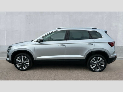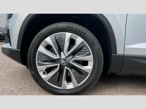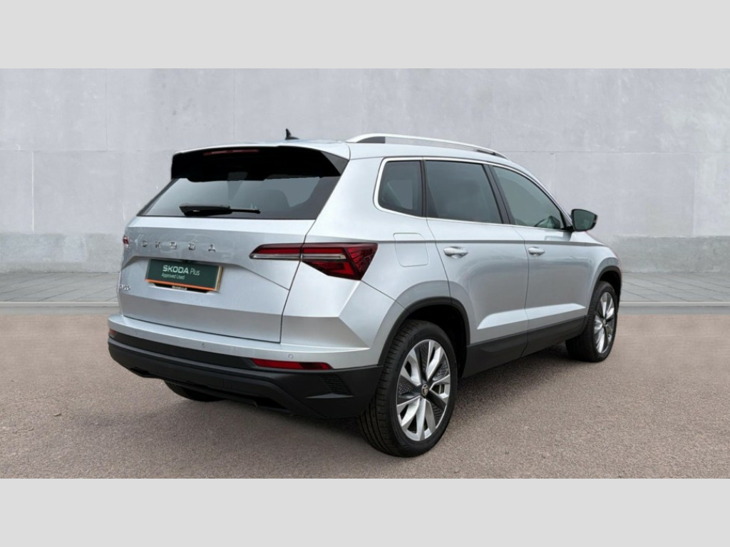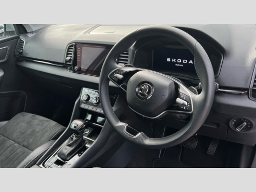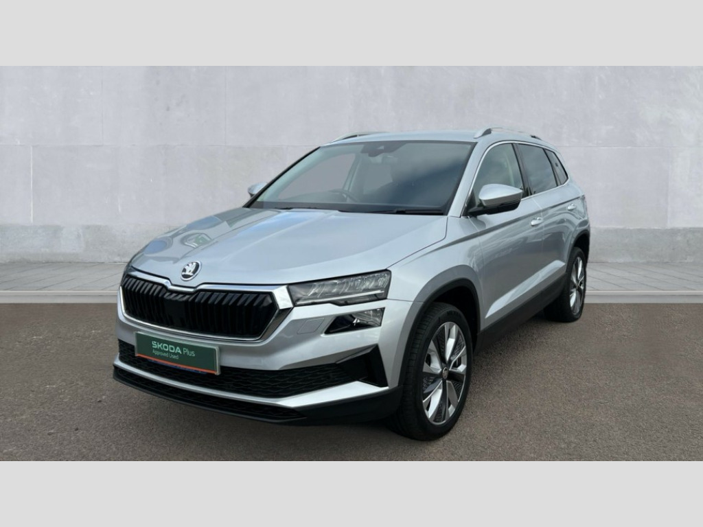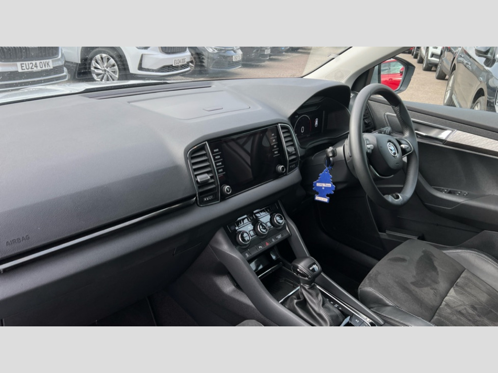 Skoda Karoq 1.5 TSI SE L 5dr DSG 8" Digital display, Advanced driver attention and drowsiness monitor, Emergency services call system, Outside temperature gauge, Sensor for driver assistance systems, Service interval indicator, SmartLink wireless for Apple and wired for Android, Start/stop system with regenerative braking, USB C Port x 2 in front centre console, Virtual Cockpit - 10.25" digital display, Wireless smartphone charging, DAB radio with Bluetooth, USB connection, Acoustic glass, Aero front windscreen wipers with intermittent function, Auto dimming rear view mirror with light and rain sensors, Black electric window control buttons, Body colour door mirrors and handles, Electric front and rear windows with child proof lock, Heated rear windscreen, LED daytime running lights, LED rear lights with high functionality welcome effect and dynamic indicators, Light assistant (coming/leaving home/tunnel light), Plastic scuff plates in door apertures, Privacy glass, Rear side wing doors, Rear spoiler, Rear window wiper with washer system and intermittent control, Safety reflectors on front doors, Third brake light, 1.5 litre bottle holders in driver and front passenger door panels, 12V socket in boot, 12v socket in front centre armrest with storage compartment and rear air vents, 2 spoke leather heated multifunction steering wheel with DSG paddles, 2 x Tablet holder, 3 rear height adjustable headrests, 3 seat bench in 2nd row, 4 foldable roof handles with rear coat hooks, Black floor carpet, Chrome inner door handles, Foldable hooks in the boot, Front head restraints, Height adjustable front three point seats belts with tensioners, Height/reach adjust steering wheel, Ice scraper, Illuminated glovebox, Illuminated luggage compartment, Interior noise suppression, Isofix child seat preparation for front passenger seat, Isofix child seat preparation outer rear, Manual lumbar support for front seats, Pearl grey interior ceiling, Pen holder, Pollen filter, Rear boot cover, Rear reading lights, Rubbish bin door, Safety vest holder, Single front passenger seat, Storage box in upper central dashboard closed, Sunvisors with illuminated vanity mirrors, Textile floor mats, Ticket holder, Design Pack - Karoq, Non Smokers pack, Parking pack - Karoq, Automatic door unlocking in case of crash, Automatic fuel cut off in case of crash, Driver airbag, Electronic parking brake with auto hold function, Emergency rear braking signal, ESC (incl. ABS+MSR+ASR+EDS+HBA+DSR+RBS+MKB), Front side airbags, Head airbags, Hill hold control, Knee airbags, Passenger airbag with switch-off function, Pedestrian monitor, Seatbelt reminder signalisation and pretensioner for all seats, Three point seatbelts rear, Two tone horn, Tyre pressure monitor, Alarm with interior monitoring, back up horn and tilt sensor with safe function, Electronic engine immobiliser, Keyless entry and start/stop, Remote central locking with 2 remote folding keys, Black centre console, Chrome framed air vents, Satin black dashboard, Anti-theft wheel bolts protection, Breakdown and tool kit