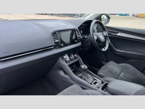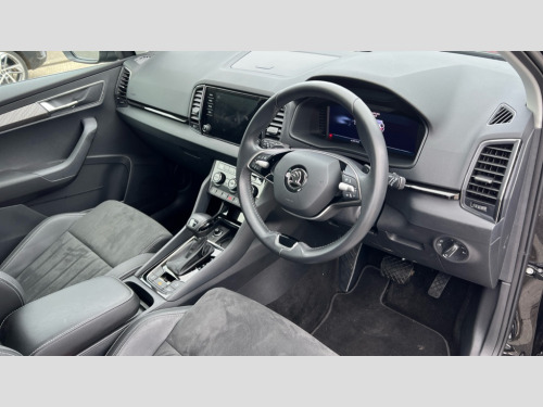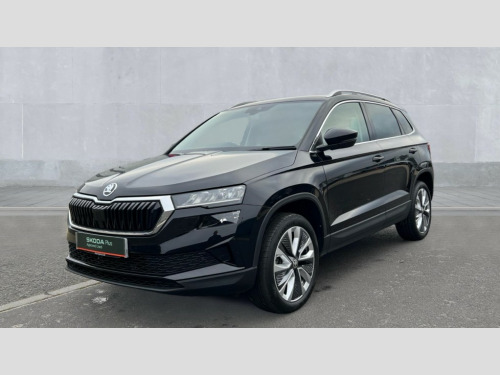 Skoda Karoq 1.5 TSI SE L 5dr DSG 8" Digital display, Advanced driver attention and drowsiness monitor, Emergency services call system, Outside temperature gauge, Sensor for driver assistance systems, Service interval indicator, SmartLink wireless for Apple and wired for Android, Start/stop system with regenerative braking, USB C Port x 2 in front centre console, Virtual Cockpit - 10.25" digital display, Wireless smartphone charging, DAB radio with Bluetooth, USB connection, Acoustic glass, Aero front windscreen wipers with intermittent function, Auto dimming rear view mirror with light and rain sensors, Black electric window control buttons, Body colour door mirrors and handles, Electric front and rear windows with child proof lock, Heated rear windscreen, LED daytime running lights, LED rear lights with high functionality welcome effect and dynamic indicators, Light assistant (coming/leaving home/tunnel light), Plastic scuff plates in door apertures, Privacy glass, Rear side wing doors, Rear spoiler, Rear window wiper with washer system and intermittent control, Safety reflectors on front doors, Third brake light, 1.5 litre bottle holders in driver and front passenger door panels, 12V socket in boot, 12v socket in front centre armrest with storage compartment and rear air vents, 2 spoke leather heated multifunction steering wheel with DSG paddles, 2 x Tablet holder, 3 rear height adjustable headrests, 3 seat bench in 2nd row, 4 foldable roof handles with rear coat hooks, Black floor carpet, Chrome inner door handles, Foldable hooks in the boot, Front head restraints, Height adjustable front three point seats belts with tensioners, Height/reach adjust steering wheel, Ice scraper, Illuminated glovebox, Illuminated luggage compartment, Interior noise suppression, Isofix child seat preparation for front passenger seat, Isofix child seat preparation outer rear, Manual lumbar support for front seats, Pearl grey interior ceiling, Pen holder, Pollen filter, Rear boot cover, Rear reading lights, Rubbish bin door, Safety vest holder, Single front passenger seat, Storage box in upper central dashboard closed, Sunvisors with illuminated vanity mirrors, Textile floor mats, Ticket holder, Design Pack - Karoq, Non Smokers pack, Parking pack - Karoq, Automatic door unlocking in case of crash, Automatic fuel cut off in case of crash, Driver airbag, Electronic parking brake with auto hold function, Emergency rear braking signal, ESC (incl. ABS+MSR+ASR+EDS+HBA+DSR+RBS+MKB), Front side airbags, Head airbags, Hill hold control, Knee airbags, Passenger airbag with switch-off function, Pedestrian monitor, Seatbelt reminder signalisation and pretensioner for all seats, Three point seatbelts rear, Two tone horn, Tyre pressure monitor, Alarm with interior monitoring, back up horn and tilt sensor with safe function, Electronic engine immobiliser, Keyless entry and start/stop, Remote central locking with 2 remote folding keys, Black centre console, Chrome framed air vents, Satin black dashboard, Anti-theft wheel bolts protection, Breakdown and tool kit
