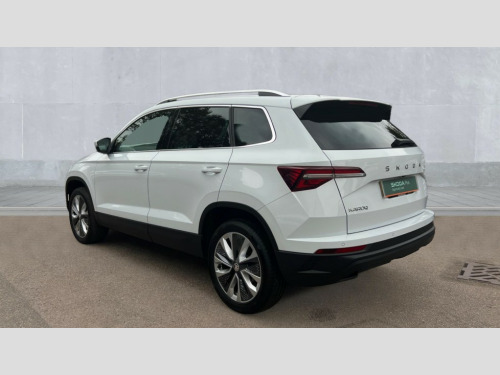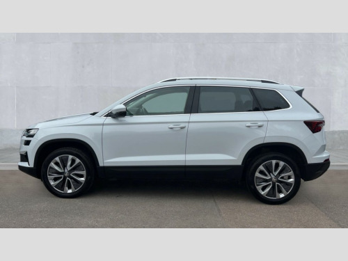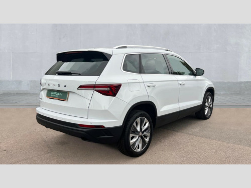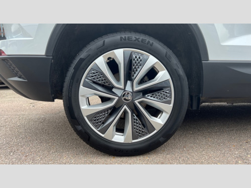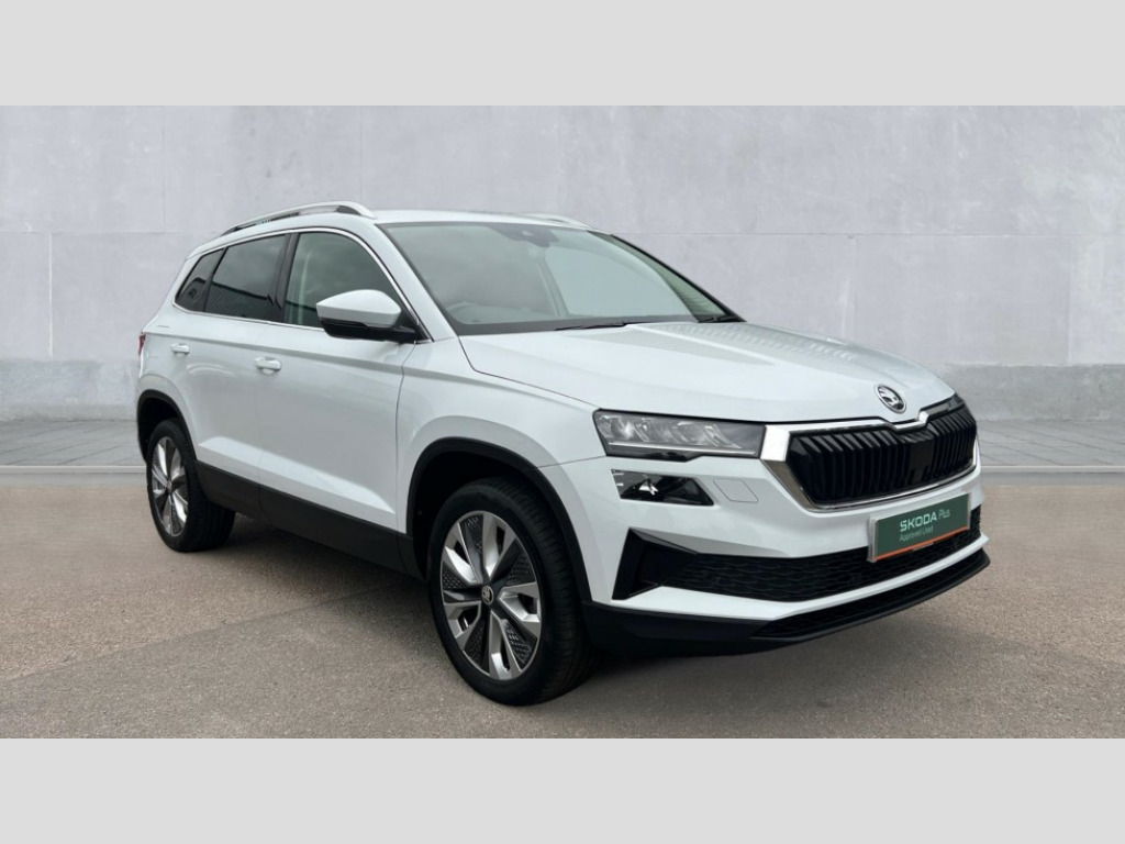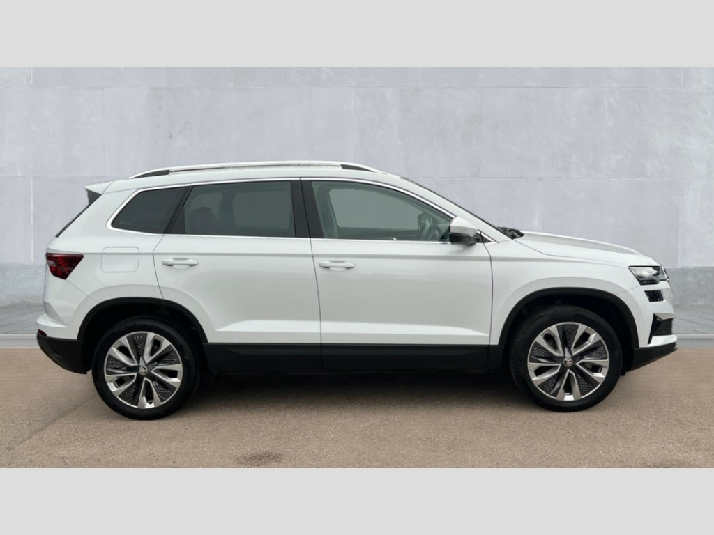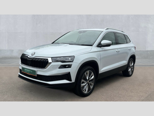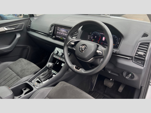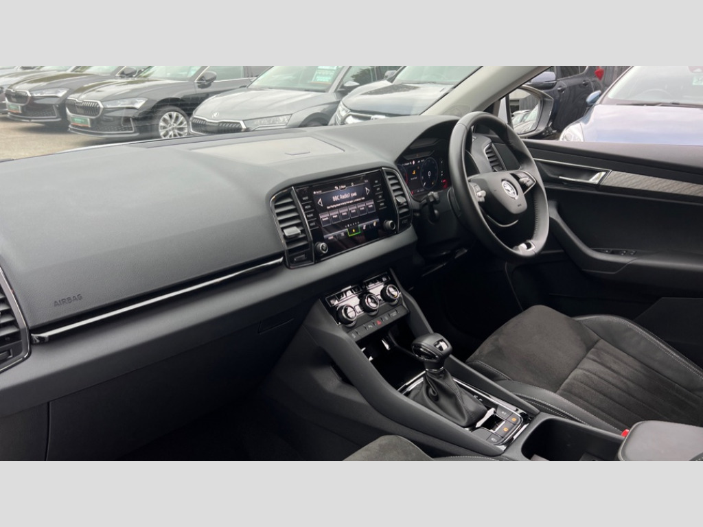 Skoda Karoq 1.5 TSI SE L 5dr DSG 8" Digital display, Advanced driver attention and drowsiness monitor, Emergency services call system, Outside temperature gauge, Sensor for driver assistance systems, Service interval indicator, SmartLink wireless for Apple and wired for Android, Start/stop system with regenerative braking, USB C Port x 2 in front centre console, Virtual Cockpit - 10.25" digital display, Wireless smartphone charging, DAB radio with Bluetooth, USB connection, Acoustic glass, Aero front windscreen wipers with intermittent function, Auto dimming rear view mirror with light and rain sensors, Black electric window control buttons, Body colour door mirrors and handles, Electric front and rear windows with child proof lock, Heated rear windscreen, LED daytime running lights, LED rear lights with high functionality welcome effect and dynamic indicators, Light assistant (coming/leaving home/tunnel light), Plastic scuff plates in door apertures, Privacy glass, Rear side wing doors, Rear spoiler, Rear window wiper with washer system and intermittent control, Safety reflectors on front doors, Third brake light, 1.5 litre bottle holders in driver and front passenger door panels, 12V socket in boot, 12v socket in front centre armrest with storage compartment and rear air vents, 2 spoke leather heated multifunction steering wheel with DSG paddles, 2 x Tablet holder, 3 rear height adjustable headrests, 3 seat bench in 2nd row, 4 foldable roof handles with rear coat hooks, Black floor carpet, Chrome inner door handles, Foldable hooks in the boot, Front head restraints, Height adjustable front three point seats belts with tensioners, Height/reach adjust steering wheel, Ice scraper, Illuminated glovebox, Illuminated luggage compartment, Interior noise suppression, Isofix child seat preparation for front passenger seat, Isofix child seat preparation outer rear, Manual lumbar support for front seats, Pearl grey interior ceiling, Pen holder, Pollen filter, Rear boot cover, Rear reading lights, Rubbish bin door, Safety vest holder, Single front passenger seat, Storage box in upper central dashboard closed, Sunvisors with illuminated vanity mirrors, Textile floor mats, Ticket holder, Design Pack - Karoq, Non Smokers pack, Parking pack - Karoq, Automatic door unlocking in case of crash, Automatic fuel cut off in case of crash, Driver airbag, Electronic parking brake with auto hold function, Emergency rear braking signal, ESC (incl. ABS+MSR+ASR+EDS+HBA+DSR+RBS+MKB), Front side airbags, Head airbags, Hill hold control, Knee airbags, Passenger airbag with switch-off function, Pedestrian monitor, Seatbelt reminder signalisation and pretensioner for all seats, Three point seatbelts rear, Two tone horn, Tyre pressure monitor, Alarm with interior monitoring, back up horn and tilt sensor with safe function, Electronic engine immobiliser, Keyless entry and start/stop, Remote central locking with 2 remote folding keys, Black centre console, Chrome framed air vents, Satin black dashboard, Anti-theft wheel bolts protection, Breakdown and tool kit