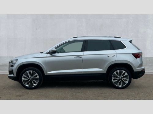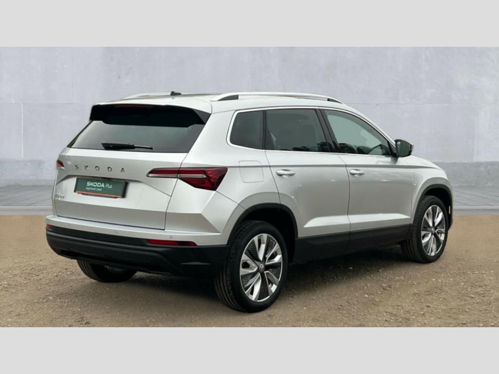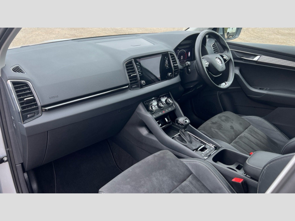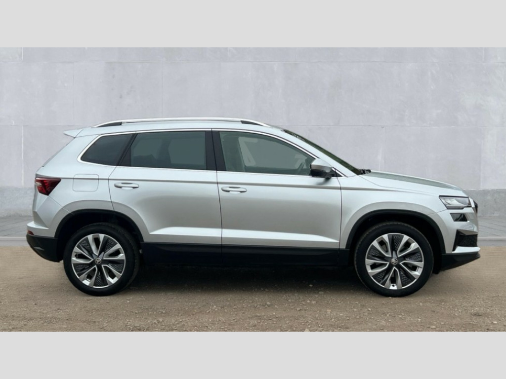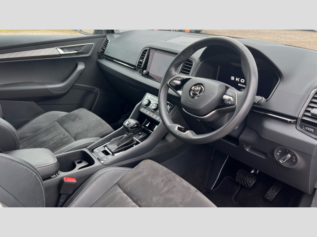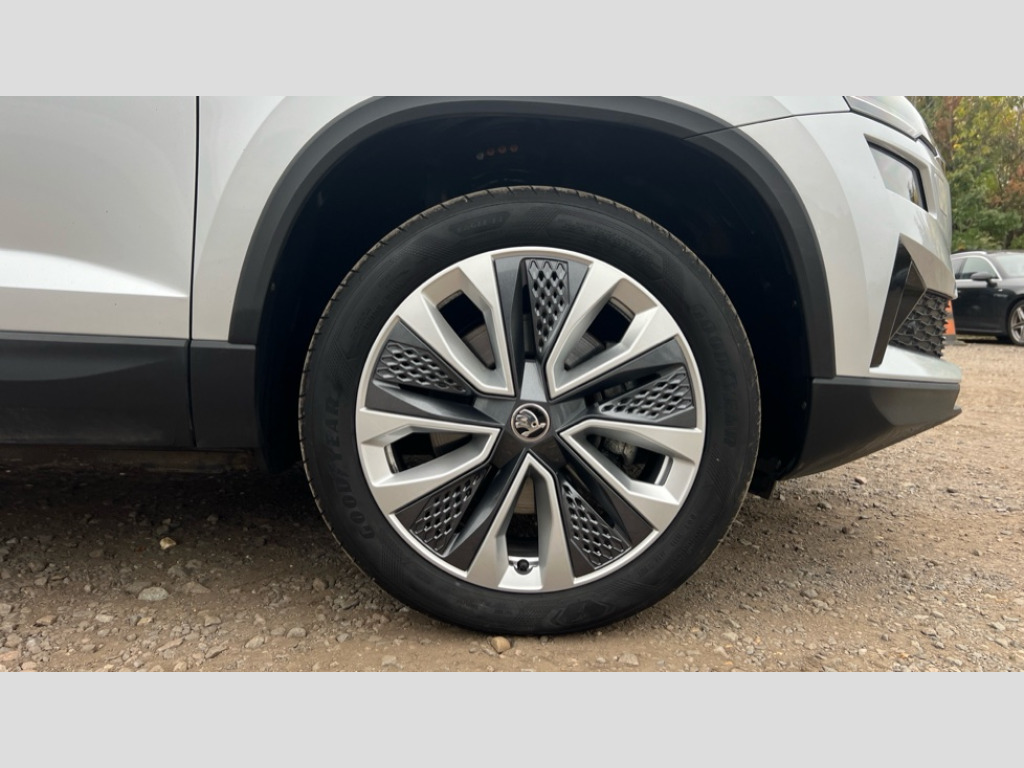 Skoda Karoq 1.5 TSI SE L 5dr DSG 8" Digital display, Advanced driver attention and drowsiness monitor, Emergency services call system, Outside temperature gauge, Sensor for driver assistance systems, Service interval indicator, SmartLink wireless for Apple and wired for Android, Start/stop system with regenerative braking, USB C Port x 2 in front centre console, Virtual Cockpit - 10.25" digital display, Wireless smartphone charging, DAB radio with Bluetooth, USB connection, Acoustic glass, Aero front windscreen wipers with intermittent function, Auto dimming rear view mirror with light and rain sensors, Black electric window control buttons, Body colour door mirrors and handles, Electric front and rear windows with child proof lock, Heated rear windscreen, LED daytime running lights, LED rear lights with high functionality welcome effect and dynamic indicators, Light assistant (coming/leaving home/tunnel light), Plastic scuff plates in door apertures, Privacy glass, Rear side wing doors, Rear spoiler, Rear window wiper with washer system and intermittent control, Safety reflectors on front doors, Third brake light, 1.5 litre bottle holders in driver and front passenger door panels, 12V socket in boot, 12v socket in front centre armrest with storage compartment and rear air vents, 2 spoke leather heated multifunction steering wheel with DSG paddles, 2 x Tablet holder, 3 rear height adjustable headrests, 3 seat bench in 2nd row, 4 foldable roof handles with rear coat hooks, Black floor carpet, Chrome inner door handles, Foldable hooks in the boot, Front head restraints, Height adjustable front three point seats belts with tensioners, Height/reach adjust steering wheel, Ice scraper, Illuminated glovebox, Illuminated luggage compartment, Interior noise suppression, Isofix child seat preparation for front passenger seat, Isofix child seat preparation outer rear, Manual lumbar support for front seats, Pearl grey interior ceiling, Pen holder, Pollen filter, Rear boot cover, Rear reading lights, Rubbish bin door, Safety vest holder, Single front passenger seat, Storage box in upper central dashboard closed, Sunvisors with illuminated vanity mirrors, Textile floor mats, Ticket holder, Design Pack - Karoq, Non Smokers pack, Parking pack - Karoq, Automatic door unlocking in case of crash, Automatic fuel cut off in case of crash, Driver airbag, Electronic parking brake with auto hold function, Emergency rear braking signal, ESC (incl. ABS+MSR+ASR+EDS+HBA+DSR+RBS+MKB), Front side airbags, Head airbags, Hill hold control, Knee airbags, Passenger airbag with switch-off function, Pedestrian monitor, Seatbelt reminder signalisation and pretensioner for all seats, Three point seatbelts rear, Two tone horn, Tyre pressure monitor, Alarm with interior monitoring, back up horn and tilt sensor with safe function, Electronic engine immobiliser, Keyless entry and start/stop, Remote central locking with 2 remote folding keys, Black centre console, Chrome framed air vents, Satin black dashboard, Anti-theft wheel bolts protection, Breakdown and tool kit