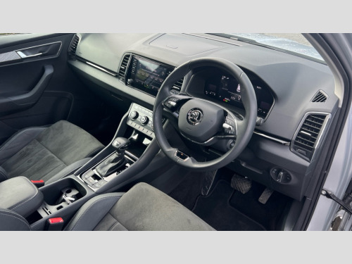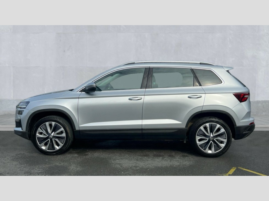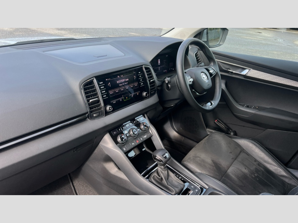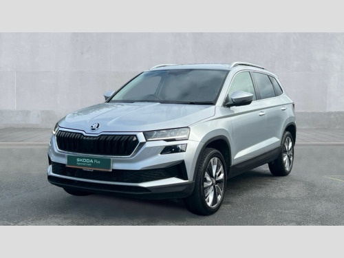 Skoda Karoq 1.5 TSI SE L 5dr DSG 8" Digital display, Care connect, Driver fatigue sensor, Emergency services call system, Outside temperature gauge, Service interval indicator, SmartLink wireless for Apple and wired for Android, Start/stop system with regenerative braking, USB C Port x 2 in front centre console, 8 Speakers, DAB radio with Bluetooth, USB connection, Acoustic glass, Aero front windscreen wipers with intermittent function, Auto dimming rear view mirror with light and rain sensors, Black electric window control buttons, Body colour door mirrors and handles, Dynamic headlight range control with cornering light function, Electric front and rear windows with child proof lock, Heated rear windscreen, LED daytime running lights, LED rear lights with high functionality welcome effect and dynamic indicators, Light assistant (coming/leaving home/tunnel light), Plastic scuff plates, Privacy glass, Rear side wing doors, Rear spoiler, Rear window wiper with washer system and intermittent control, Safety reflectors on front doors, 1.5 litre bottle holders in driver and front passenger door panels, 12V socket in boot, 12v socket in front centre armrest with storage compartment and rear air vents, 2 Folding hooks and nets in boot, 2 spoke leather heated multifunction steering wheel with DSG paddles, 2 x Tablet holder, 3 rear height adjustable headrests, 3 seat bench in 2nd row, 4 foldable roof handles with rear coat hooks, Black floor carpet, Chrome inner door handles, Decorative door sills with KAROQ badging, Double sided boot floor, Foldable hooks in the boot, Front head restraints, Height adjustable front three point seats belts with tensioners, Height/reach adjust steering wheel, Ice scraper, Illuminated glovebox, Illuminated luggage compartment, Isofix child seat preparation for front passenger seat, Isofix child seat preparation outer rear, Manual lumbar support for front seats, Pen holder, Pollen filter, Rear boot cover, Rear reading lights, Rubbish bin door, Safety vest holder, Single front passenger seat, Storage box in upper central dashboard closed, Sunvisors with illuminated vanity mirrors, Textile floor mats, Ticket holder, VarioFlex seats with standard rear seat release, Chrome roof rails + chrome pack - Karoq, Parking pack - Karoq, Automatic door unlocking in case of crash, Automatic fuel cut off in case of crash, Child locks on rear doors, Driver airbag, Electronic parking brake with auto hold function, Emergency rear braking signal, ESC including ABS, MSR, ASR, EDS, HBA, DSR, RBS, MKB and traction control, Front side airbags, Hill hold control, Knee airbags, Passenger airbag with switch-off function, Pedestrian monitor, Seatbelt reminder signalisation and pretensioner for all seats, Three point seatbelts rear, Two tone horn, Tyre pressure display, Tyre pressure monitor, Alarm with interior monitoring, back up horn and tilt sensor with safe function, Electronic engine immobiliser, Keyless entry and start/stop, Remote central locking with 2 remote folding keys, Chrome framed air vents, Anti-theft wheel bolts protection, Storage on wheel cover, Tool kit