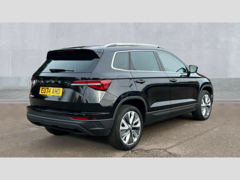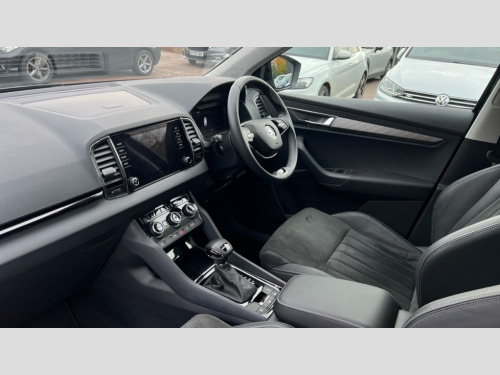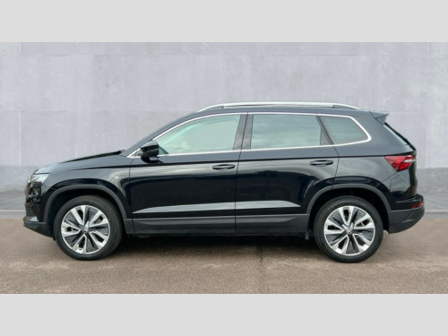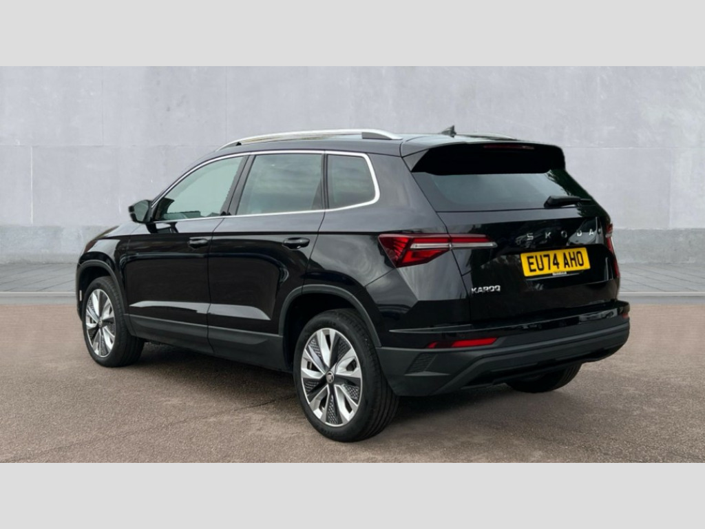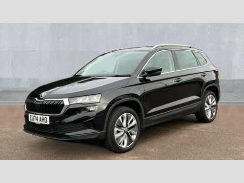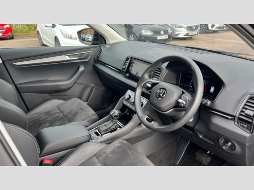Skoda Karoq 1.5 TSI SE L 5dr DSG 8" Digital display, Advanced driver attention and drowsiness monitor, Emergency services call system, Outside temperature gauge, Sensor for driver assistance systems, Service interval indicator, SmartLink wireless for Apple and wired for Android, Start/stop system with regenerative braking, USB C Port x 2 in front centre console, Virtual Cockpit - 10.25" digital display, Wireless smartphone charging, DAB radio with Bluetooth, USB connection, Acoustic glass, Aero front windscreen wipers with intermittent function, Auto dimming rear view mirror with light and rain sensors, Black electric window control buttons, Body colour door mirrors and handles, Electric front and rear windows with child proof lock, Heated rear windscreen, LED daytime running lights, LED rear lights with high functionality welcome effect and dynamic indicators, Light assistant (coming/leaving home/tunnel light), Plastic scuff plates in door apertures, Privacy glass, Rear side wing doors, Rear spoiler, Rear window wiper with washer system and intermittent control, Safety reflectors on front doors, Third brake light, 1.5 litre bottle holders in driver and front passenger door panels, 12V socket in boot, 12v socket in front centre armrest with storage compartment and rear air vents, 2 spoke leather heated multifunction steering wheel with DSG paddles, 2 x Tablet holder, 3 rear height adjustable headrests, 3 seat bench in 2nd row, 4 foldable roof handles with rear coat hooks, Black floor carpet, Chrome inner door handles, Foldable hooks in the boot, Front head restraints, Height adjustable front three point seats belts with tensioners, Height/reach adjust steering wheel, Ice scraper, Illuminated glovebox, Illuminated luggage compartment, Interior noise suppression, Isofix child seat preparation for front passenger seat, Isofix child seat preparation outer rear, Manual lumbar support for front seats, Pearl grey interior ceiling, Pen holder, Pollen filter, Rear boot cover, Rear reading lights, Rubbish bin door, Safety vest holder, Single front passenger seat, Storage box in upper central dashboard closed, Sunvisors with illuminated vanity mirrors, Textile floor mats, Ticket holder, Design Pack - Karoq, Non Smokers pack, Parking pack - Karoq, Automatic door unlocking in case of crash, Automatic fuel cut off in case of crash, Driver airbag, Electronic parking brake with auto hold function, Emergency rear braking signal, ESC (incl. ABS+MSR+ASR+EDS+HBA+DSR+RBS+MKB), Front side airbags, Head airbags, Hill hold control, Knee airbags, Passenger airbag with switch-off function, Pedestrian monitor, Seatbelt reminder signalisation and pretensioner for all seats, Three point seatbelts rear, Two tone horn, Tyre pressure monitor, Alarm with interior monitoring, back up horn and tilt sensor with safe function, Electronic engine immobiliser, Keyless entry and start/stop, Remote central locking with 2 remote folding keys, Black centre console, Chrome framed air vents, Satin black dashboard, Anti-theft wheel bolts protection, Breakdown and tool kit