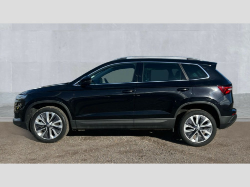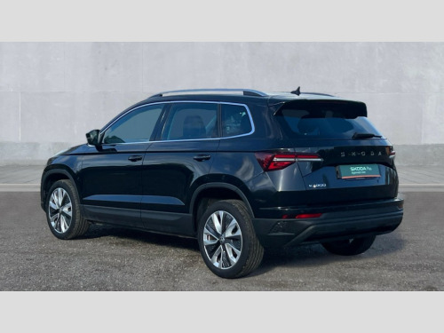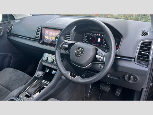 Skoda Karoq 1.5 TSI SE L 5dr DSG 8" Digital display, Advanced driver attention and drowsiness monitor, Emergency services call system, Outside temperature gauge, Sensor for driver assistance systems, Service interval indicator, SmartLink wireless for Apple and wired for Android, Start/stop system with regenerative braking, USB C Port x 2 in front centre console, Virtual Cockpit - 10.25" digital display, Wireless smartphone charging, DAB radio with Bluetooth, USB connection, Acoustic glass, Aero front windscreen wipers with intermittent function, Auto dimming rear view mirror with light and rain sensors, Black electric window control buttons, Body colour door mirrors and handles, Electric front and rear windows with child proof lock, Heated rear windscreen, LED daytime running lights, LED rear lights with high functionality welcome effect and dynamic indicators, Light assistant (coming/leaving home/tunnel light), Plastic scuff plates in door apertures, Privacy glass, Rear side wing doors, Rear spoiler, Rear window wiper with washer system and intermittent control, Safety reflectors on front doors, Third brake light, 1.5 litre bottle holders in driver and front passenger door panels, 12V socket in boot, 12v socket in front centre armrest with storage compartment and rear air vents, 2 spoke leather heated multifunction steering wheel with DSG paddles, 2 x Tablet holder, 3 rear height adjustable headrests, 3 seat bench in 2nd row, 4 foldable roof handles with rear coat hooks, Black floor carpet, Chrome inner door handles, Foldable hooks in the boot, Front head restraints, Height adjustable front three point seats belts with tensioners, Height/reach adjust steering wheel, Ice scraper, Illuminated glovebox, Illuminated luggage compartment, Interior noise suppression, Isofix child seat preparation for front passenger seat, Isofix child seat preparation outer rear, Manual lumbar support for front seats, Pearl grey interior ceiling, Pen holder, Pollen filter, Rear boot cover, Rear reading lights, Rubbish bin door, Safety vest holder, Single front passenger seat, Storage box in upper central dashboard closed, Sunvisors with illuminated vanity mirrors, Textile floor mats, Ticket holder, Design Pack - Karoq, Non Smokers pack, Parking pack - Karoq, Automatic door unlocking in case of crash, Automatic fuel cut off in case of crash, Driver airbag, Electronic parking brake with auto hold function, Emergency rear braking signal, ESC (incl. ABS+MSR+ASR+EDS+HBA+DSR+RBS+MKB), Front side airbags, Head airbags, Hill hold control, Knee airbags, Passenger airbag with switch-off function, Pedestrian monitor, Seatbelt reminder signalisation and pretensioner for all seats, Three point seatbelts rear, Two tone horn, Tyre pressure monitor, Alarm with interior monitoring, back up horn and tilt sensor with safe function, Electronic engine immobiliser, Keyless entry and start/stop, Remote central locking with 2 remote folding keys, Black centre console, Chrome framed air vents, Satin black dashboard, Anti-theft wheel bolts protection, Breakdown and tool kit
