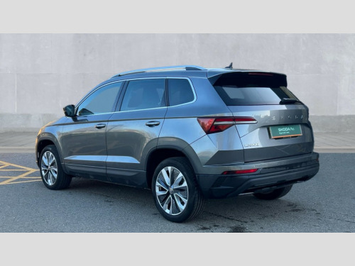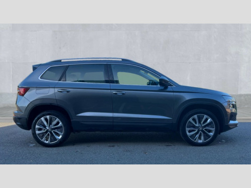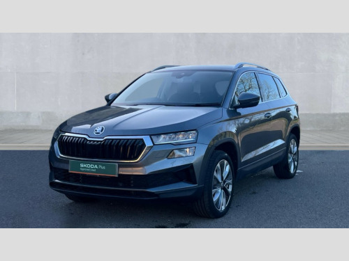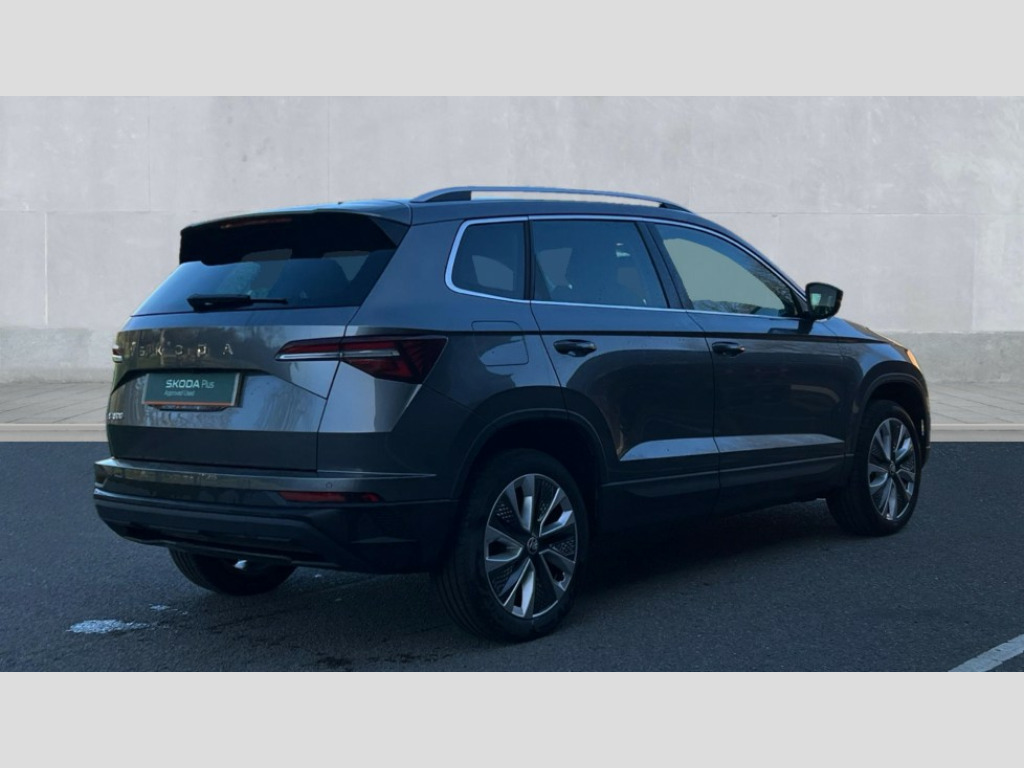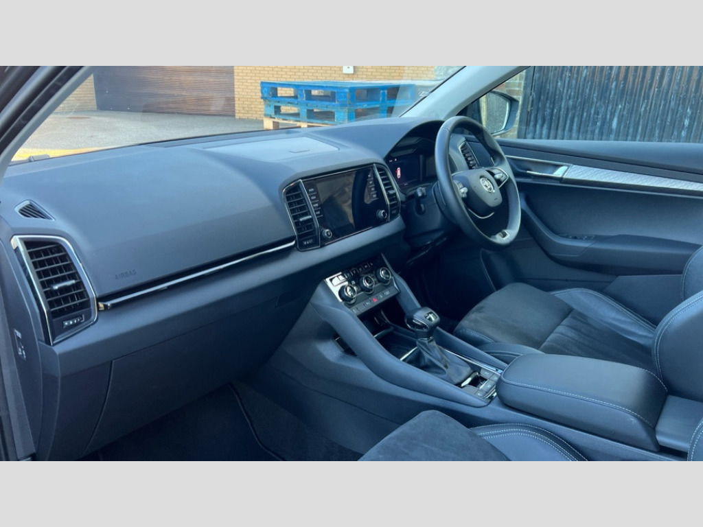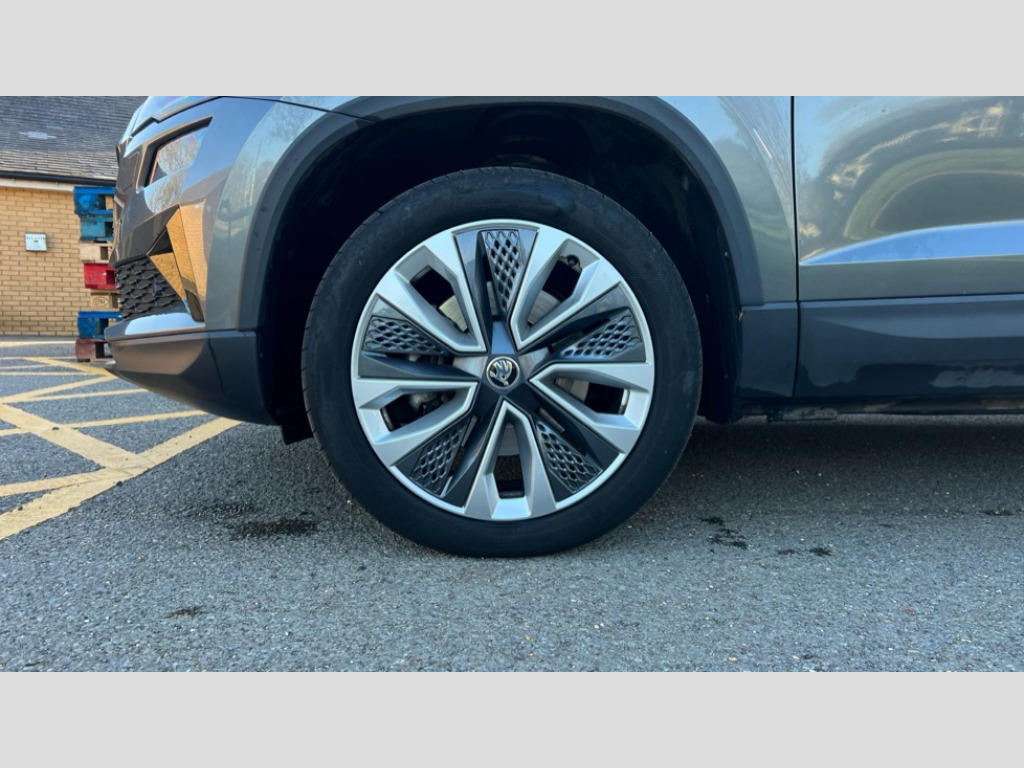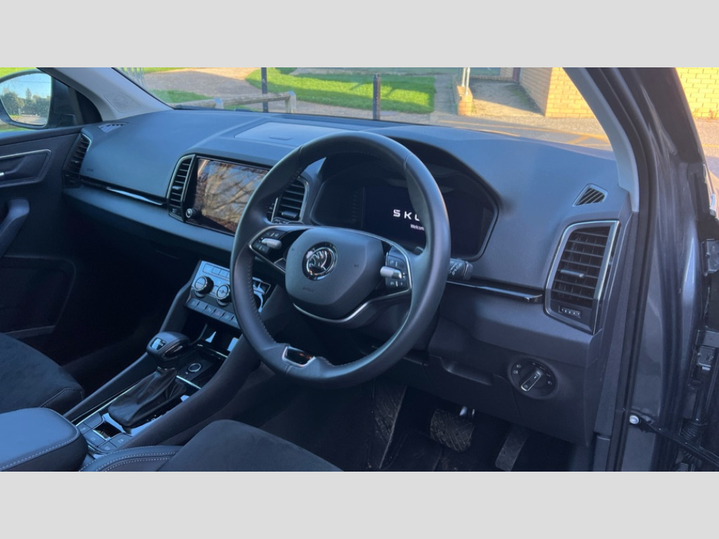 Skoda Karoq 1.5 TSI SE L 5dr DSG 8" Digital display, Advanced driver attention and drowsiness monitor, Emergency services call system, Outside temperature gauge, Sensor for driver assistance systems, Service interval indicator, SmartLink wireless for Apple and wired for Android, Start/stop system with regenerative braking, USB C Port x 2 in front centre console, Virtual Cockpit - 10.25" digital display, Wireless smartphone charging, DAB radio with Bluetooth, USB connection, Acoustic glass, Aero front windscreen wipers with intermittent function, Auto dimming rear view mirror with light and rain sensors, Black electric window control buttons, Body colour door mirrors and handles, Electric front and rear windows with child proof lock, Heated rear windscreen, LED daytime running lights, LED rear lights with high functionality welcome effect and dynamic indicators, Light assistant (coming/leaving home/tunnel light), Plastic scuff plates in door apertures, Privacy glass, Rear side wing doors, Rear spoiler, Rear window wiper with washer system and intermittent control, Safety reflectors on front doors, Third brake light, 1.5 litre bottle holders in driver and front passenger door panels, 12V socket in boot, 12v socket in front centre armrest with storage compartment and rear air vents, 2 spoke leather heated multifunction steering wheel with DSG paddles, 2 x Tablet holder, 3 rear height adjustable headrests, 3 seat bench in 2nd row, 4 foldable roof handles with rear coat hooks, Black floor carpet, Chrome inner door handles, Foldable hooks in the boot, Front head restraints, Height adjustable front three point seats belts with tensioners, Height/reach adjust steering wheel, Ice scraper, Illuminated glovebox, Illuminated luggage compartment, Interior noise suppression, Isofix child seat preparation for front passenger seat, Isofix child seat preparation outer rear, Manual lumbar support for front seats, Pearl grey interior ceiling, Pen holder, Pollen filter, Rear boot cover, Rear reading lights, Rubbish bin door, Safety vest holder, Single front passenger seat, Storage box in upper central dashboard closed, Sunvisors with illuminated vanity mirrors, Textile floor mats, Ticket holder, Design Pack - Karoq, Non Smokers pack, Parking pack - Karoq, Automatic door unlocking in case of crash, Automatic fuel cut off in case of crash, Driver airbag, Electronic parking brake with auto hold function, Emergency rear braking signal, ESC (incl. ABS+MSR+ASR+EDS+HBA+DSR+RBS+MKB), Front side airbags, Head airbags, Hill hold control, Knee airbags, Passenger airbag with switch-off function, Pedestrian monitor, Seatbelt reminder signalisation and pretensioner for all seats, Three point seatbelts rear, Two tone horn, Tyre pressure monitor, Alarm with interior monitoring, back up horn and tilt sensor with safe function, Electronic engine immobiliser, Keyless entry and start/stop, Remote central locking with 2 remote folding keys, Black centre console, Chrome framed air vents, Satin black dashboard, Anti-theft wheel bolts protection, Breakdown and tool kit