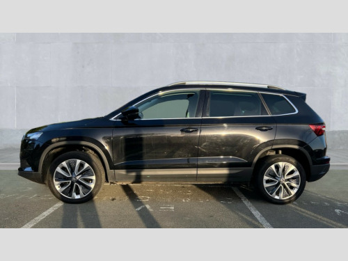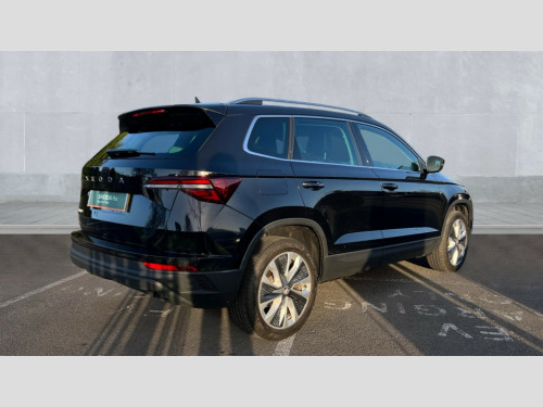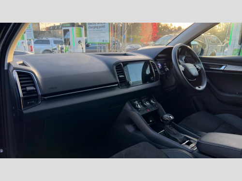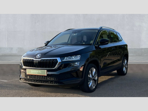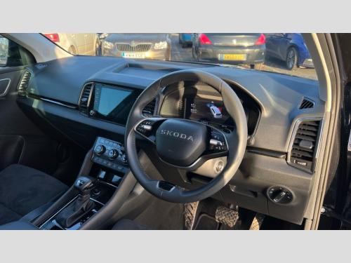 Skoda Karoq 1.5 TSI SE L 5dr DSG 8" Digital display, Advanced driver attention and drowsiness monitor, Emergency services call system, Outside temperature gauge, Sensor for driver assistance systems, Service interval indicator, SmartLink wireless for Apple and wired for Android, Start/stop system with regenerative braking, USB C Port x 2 in front centre console, Virtual Cockpit - 10.25" digital display, Wireless smartphone charging, DAB radio with Bluetooth, USB connection, Acoustic glass, Aero front windscreen wipers with intermittent function, Auto dimming rear view mirror with light and rain sensors, Black electric window control buttons, Body colour door mirrors and handles, Electric front and rear windows with child proof lock, Heated rear windscreen, LED daytime running lights, LED rear lights with high functionality welcome effect and dynamic indicators, Light assistant (coming/leaving home/tunnel light), Plastic scuff plates in door apertures, Privacy glass, Rear side wing doors, Rear spoiler, Rear window wiper with washer system and intermittent control, Safety reflectors on front doors, Third brake light, 1.5 litre bottle holders in driver and front passenger door panels, 12V socket in boot, 12v socket in front centre armrest with storage compartment and rear air vents, 2 spoke leather heated multifunction steering wheel with DSG paddles, 2 x Tablet holder, 3 rear height adjustable headrests, 3 seat bench in 2nd row, 4 foldable roof handles with rear coat hooks, Black floor carpet, Chrome inner door handles, Foldable hooks in the boot, Front head restraints, Height adjustable front three point seats belts with tensioners, Height/reach adjust steering wheel, Ice scraper, Illuminated glovebox, Illuminated luggage compartment, Interior noise suppression, Isofix child seat preparation for front passenger seat, Isofix child seat preparation outer rear, Manual lumbar support for front seats, Pearl grey interior ceiling, Pen holder, Pollen filter, Rear boot cover, Rear reading lights, Rubbish bin door, Safety vest holder, Single front passenger seat, Storage box in upper central dashboard closed, Sunvisors with illuminated vanity mirrors, Textile floor mats, Ticket holder, Design Pack - Karoq, Non Smokers pack, Parking pack - Karoq, Automatic door unlocking in case of crash, Automatic fuel cut off in case of crash, Driver airbag, Electronic parking brake with auto hold function, Emergency rear braking signal, ESC (incl. ABS+MSR+ASR+EDS+HBA+DSR+RBS+MKB), Front side airbags, Head airbags, Hill hold control, Knee airbags, Passenger airbag with switch-off function, Pedestrian monitor, Seatbelt reminder signalisation and pretensioner for all seats, Three point seatbelts rear, Two tone horn, Tyre pressure monitor, Alarm with interior monitoring, back up horn and tilt sensor with safe function, Electronic engine immobiliser, Keyless entry and start/stop, Remote central locking with 2 remote folding keys, Black centre console, Chrome framed air vents, Satin black dashboard, Anti-theft wheel bolts protection, Breakdown and tool kit