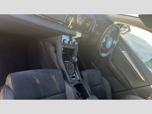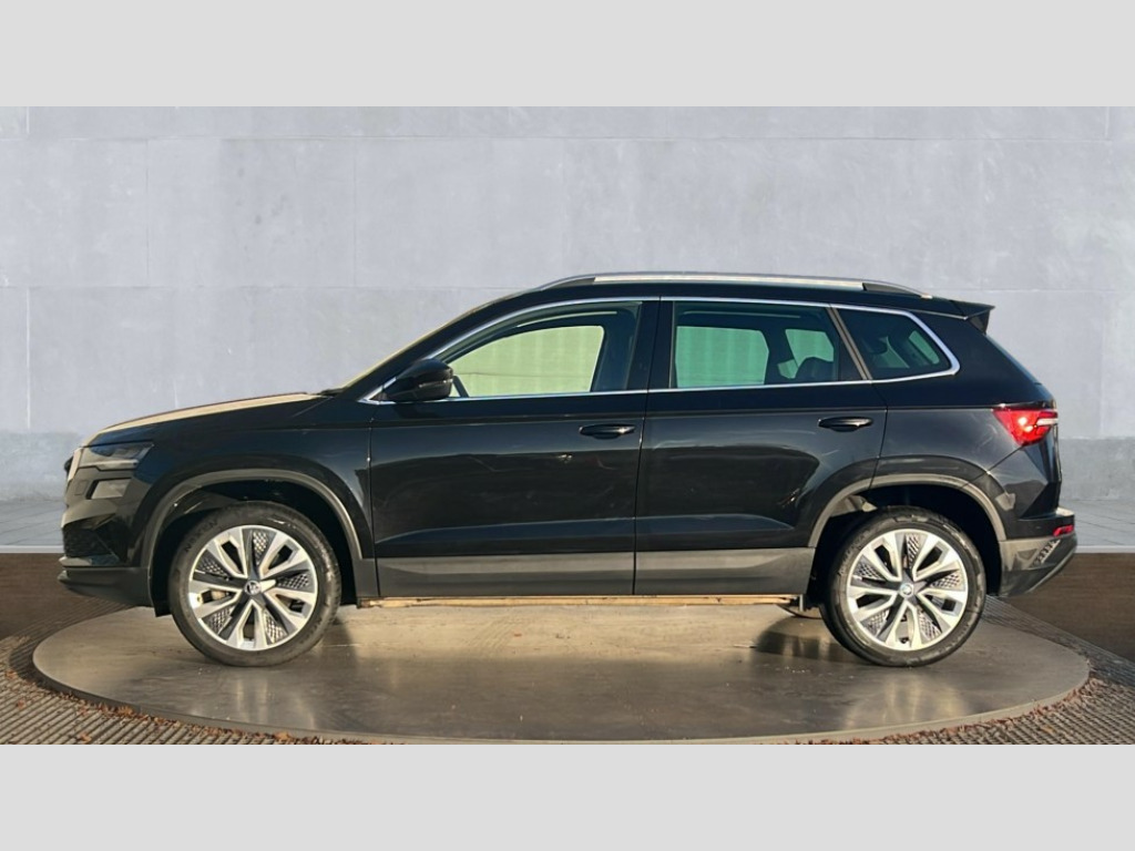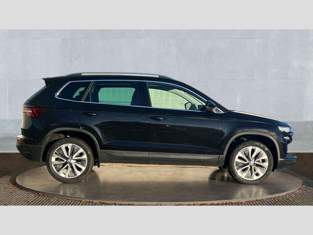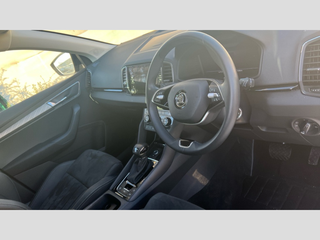 Skoda Karoq 1.5 TSI SE L 5dr DSG 8" Digital display, Advanced driver attention and drowsiness monitor, Emergency services call system, Outside temperature gauge, Sensor for driver assistance systems, Service interval indicator, SmartLink wireless for Apple and wired for Android, Start/stop system with regenerative braking, USB C Port x 2 in front centre console, Virtual Cockpit - 10.25" digital display, Wireless smartphone charging, DAB radio with Bluetooth, USB connection, Acoustic glass, Aero front windscreen wipers with intermittent function, Auto dimming rear view mirror with light and rain sensors, Black electric window control buttons, Body colour door mirrors and handles, Electric front and rear windows with child proof lock, Heated rear windscreen, LED daytime running lights, LED rear lights with high functionality welcome effect and dynamic indicators, Light assistant (coming/leaving home/tunnel light), Plastic scuff plates in door apertures, Privacy glass, Rear side wing doors, Rear spoiler, Rear window wiper with washer system and intermittent control, Safety reflectors on front doors, Third brake light, 1.5 litre bottle holders in driver and front passenger door panels, 12V socket in boot, 12v socket in front centre armrest with storage compartment and rear air vents, 2 spoke leather heated multifunction steering wheel with DSG paddles, 2 x Tablet holder, 3 rear height adjustable headrests, 3 seat bench in 2nd row, 4 foldable roof handles with rear coat hooks, Black floor carpet, Chrome inner door handles, Foldable hooks in the boot, Front head restraints, Height adjustable front three point seats belts with tensioners, Height/reach adjust steering wheel, Ice scraper, Illuminated glovebox, Illuminated luggage compartment, Interior noise suppression, Isofix child seat preparation for front passenger seat, Isofix child seat preparation outer rear, Manual lumbar support for front seats, Pearl grey interior ceiling, Pen holder, Pollen filter, Rear boot cover, Rear reading lights, Rubbish bin door, Safety vest holder, Single front passenger seat, Storage box in upper central dashboard closed, Sunvisors with illuminated vanity mirrors, Textile floor mats, Ticket holder, Design Pack - Karoq, Non Smokers pack, Parking pack - Karoq, Automatic door unlocking in case of crash, Automatic fuel cut off in case of crash, Driver airbag, Electronic parking brake with auto hold function, Emergency rear braking signal, ESC (incl. ABS+MSR+ASR+EDS+HBA+DSR+RBS+MKB), Front side airbags, Head airbags, Hill hold control, Knee airbags, Passenger airbag with switch-off function, Pedestrian monitor, Seatbelt reminder signalisation and pretensioner for all seats, Three point seatbelts rear, Two tone horn, Tyre pressure monitor, Alarm with interior monitoring, back up horn and tilt sensor with safe function, Electronic engine immobiliser, Keyless entry and start/stop, Remote central locking with 2 remote folding keys, Black centre console, Chrome framed air vents, Satin black dashboard, Anti-theft wheel bolts protection, Breakdown and tool kit