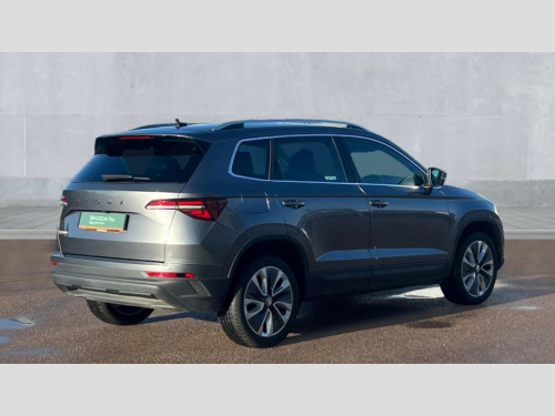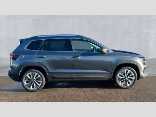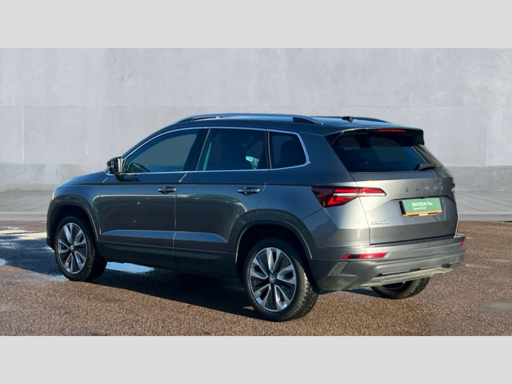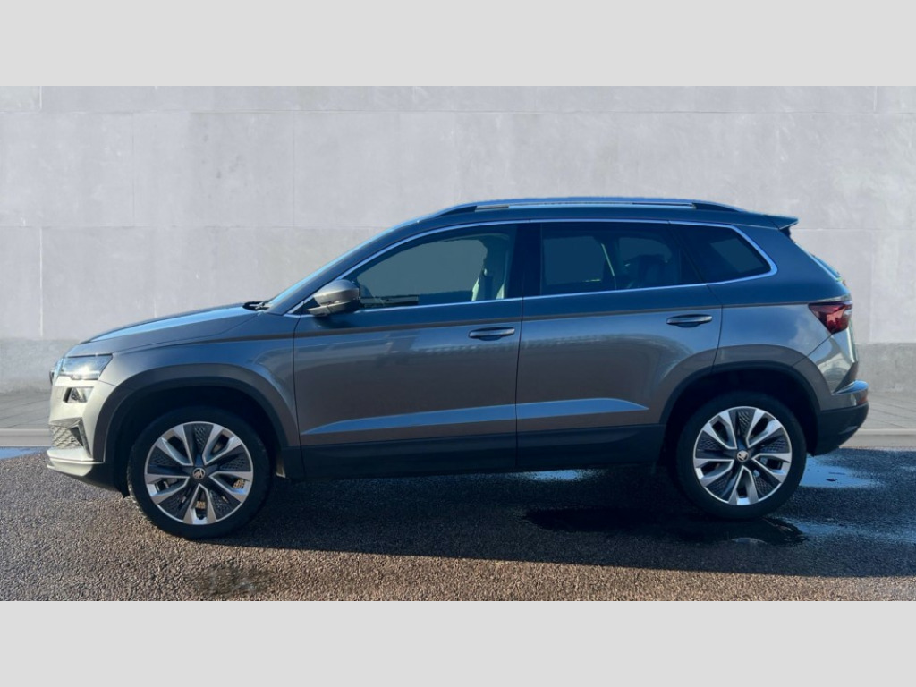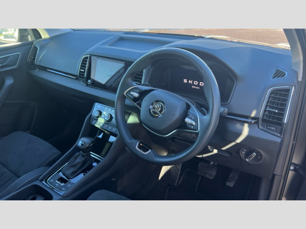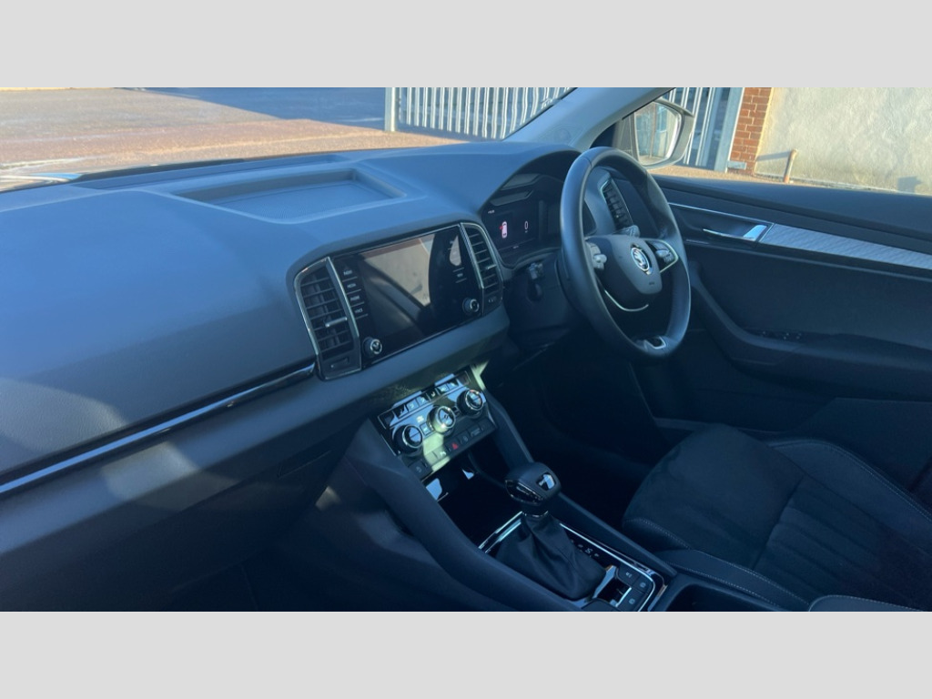 Skoda Karoq 1.5 TSI SE L 5dr DSG 8" Digital display, Advanced driver attention and drowsiness monitor, Emergency services call system, Outside temperature gauge, Sensor for driver assistance systems, Service interval indicator, SmartLink wireless for Apple and wired for Android, Start/stop system with regenerative braking, USB C Port x 2 in front centre console, Virtual Cockpit - 10.25" digital display, Wireless smartphone charging, DAB radio with Bluetooth, USB connection, Acoustic glass, Aero front windscreen wipers with intermittent function, Auto dimming rear view mirror with light and rain sensors, Black electric window control buttons, Body colour door mirrors and handles, Electric front and rear windows with child proof lock, Heated rear windscreen, LED daytime running lights, LED rear lights with high functionality welcome effect and dynamic indicators, Light assistant (coming/leaving home/tunnel light), Plastic scuff plates in door apertures, Privacy glass, Rear side wing doors, Rear spoiler, Rear window wiper with washer system and intermittent control, Safety reflectors on front doors, Third brake light, 1.5 litre bottle holders in driver and front passenger door panels, 12V socket in boot, 12v socket in front centre armrest with storage compartment and rear air vents, 2 spoke leather heated multifunction steering wheel with DSG paddles, 2 x Tablet holder, 3 rear height adjustable headrests, 3 seat bench in 2nd row, 4 foldable roof handles with rear coat hooks, Black floor carpet, Chrome inner door handles, Foldable hooks in the boot, Front head restraints, Height adjustable front three point seats belts with tensioners, Height/reach adjust steering wheel, Ice scraper, Illuminated glovebox, Illuminated luggage compartment, Interior noise suppression, Isofix child seat preparation for front passenger seat, Isofix child seat preparation outer rear, Manual lumbar support for front seats, Pearl grey interior ceiling, Pen holder, Pollen filter, Rear boot cover, Rear reading lights, Rubbish bin door, Safety vest holder, Single front passenger seat, Storage box in upper central dashboard closed, Sunvisors with illuminated vanity mirrors, Textile floor mats, Ticket holder, Design Pack - Karoq, Non Smokers pack, Parking pack - Karoq, Automatic door unlocking in case of crash, Automatic fuel cut off in case of crash, Driver airbag, Electronic parking brake with auto hold function, Emergency rear braking signal, ESC (incl. ABS+MSR+ASR+EDS+HBA+DSR+RBS+MKB), Front side airbags, Head airbags, Hill hold control, Knee airbags, Passenger airbag with switch-off function, Pedestrian monitor, Seatbelt reminder signalisation and pretensioner for all seats, Three point seatbelts rear, Two tone horn, Tyre pressure monitor, Alarm with interior monitoring, back up horn and tilt sensor with safe function, Electronic engine immobiliser, Keyless entry and start/stop, Remote central locking with 2 remote folding keys, Black centre console, Chrome framed air vents, Satin black dashboard, Anti-theft wheel bolts protection, Breakdown and tool kit