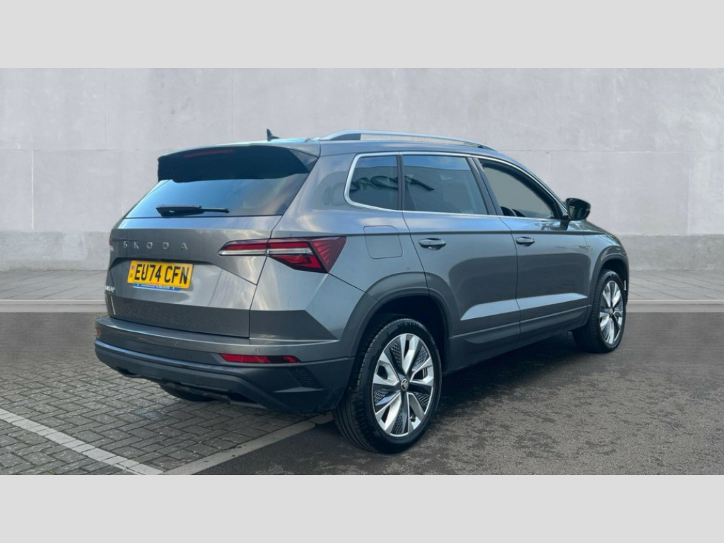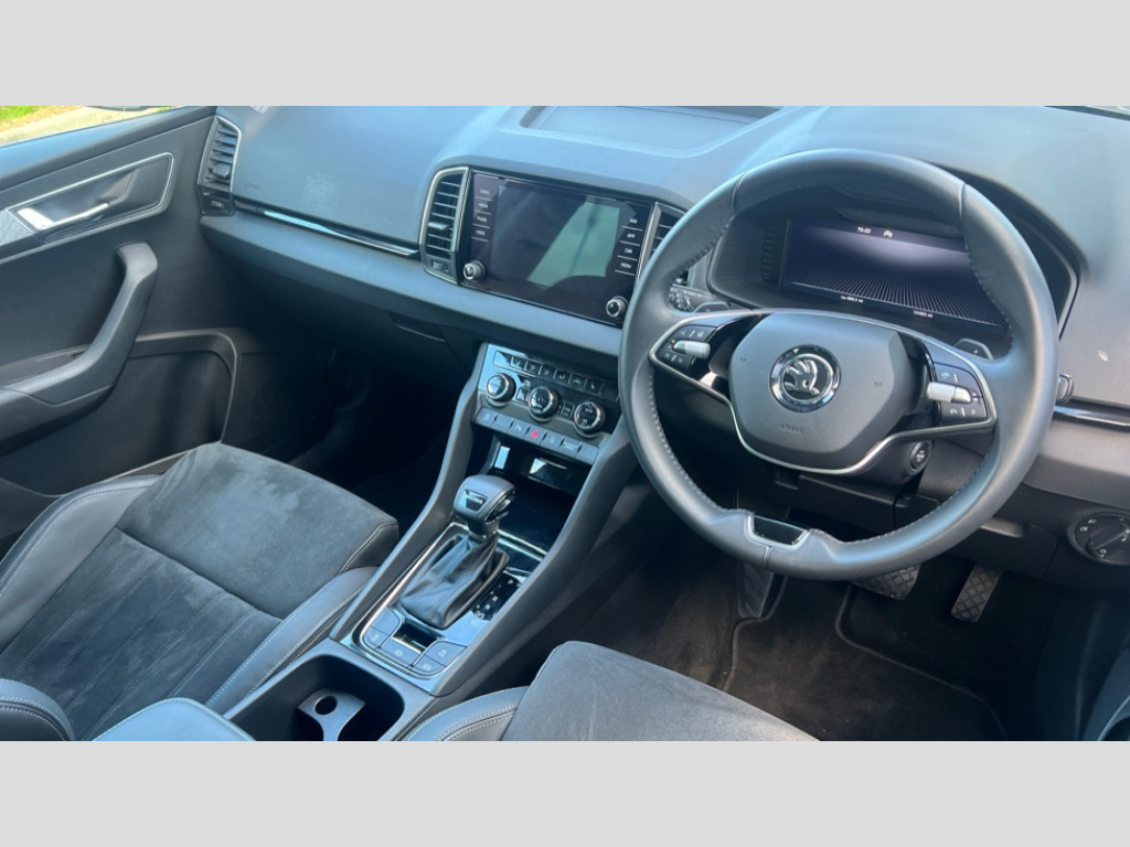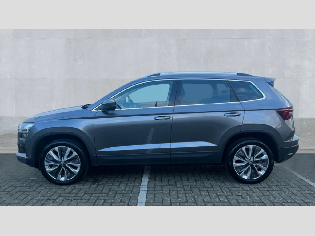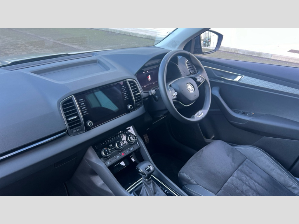 Skoda Karoq 1.5 TSI SE L 5dr DSG 8" Digital display, Advanced driver attention and drowsiness monitor, Emergency services call system, Outside temperature gauge, Sensor for driver assistance systems, Service interval indicator, SmartLink wireless for Apple and wired for Android, Start/stop system with regenerative braking, USB C Port x 2 in front centre console, Virtual Cockpit - 10.25" digital display, Wireless smartphone charging, DAB radio with Bluetooth, USB connection, Acoustic glass, Aero front windscreen wipers with intermittent function, Auto dimming rear view mirror with light and rain sensors, Black electric window control buttons, Body colour door mirrors and handles, Electric front and rear windows with child proof lock, Heated rear windscreen, LED daytime running lights, LED rear lights with high functionality welcome effect and dynamic indicators, Light assistant (coming/leaving home/tunnel light), Plastic scuff plates in door apertures, Privacy glass, Rear side wing doors, Rear spoiler, Rear window wiper with washer system and intermittent control, Safety reflectors on front doors, Third brake light, 1.5 litre bottle holders in driver and front passenger door panels, 12V socket in boot, 12v socket in front centre armrest with storage compartment and rear air vents, 2 spoke leather heated multifunction steering wheel with DSG paddles, 2 x Tablet holder, 3 rear height adjustable headrests, 3 seat bench in 2nd row, 4 foldable roof handles with rear coat hooks, Black floor carpet, Chrome inner door handles, Foldable hooks in the boot, Front head restraints, Height adjustable front three point seats belts with tensioners, Height/reach adjust steering wheel, Ice scraper, Illuminated glovebox, Illuminated luggage compartment, Interior noise suppression, Isofix child seat preparation for front passenger seat, Isofix child seat preparation outer rear, Manual lumbar support for front seats, Pearl grey interior ceiling, Pen holder, Pollen filter, Rear boot cover, Rear reading lights, Rubbish bin door, Safety vest holder, Single front passenger seat, Storage box in upper central dashboard closed, Sunvisors with illuminated vanity mirrors, Textile floor mats, Ticket holder, Design Pack - Karoq, Non Smokers pack, Parking pack - Karoq, Automatic door unlocking in case of crash, Automatic fuel cut off in case of crash, Driver airbag, Electronic parking brake with auto hold function, Emergency rear braking signal, ESC (incl. ABS+MSR+ASR+EDS+HBA+DSR+RBS+MKB), Front side airbags, Head airbags, Hill hold control, Knee airbags, Passenger airbag with switch-off function, Pedestrian monitor, Seatbelt reminder signalisation and pretensioner for all seats, Three point seatbelts rear, Two tone horn, Tyre pressure monitor, Alarm with interior monitoring, back up horn and tilt sensor with safe function, Electronic engine immobiliser, Keyless entry and start/stop, Remote central locking with 2 remote folding keys, Black centre console, Chrome framed air vents, Satin black dashboard, Anti-theft wheel bolts protection, Breakdown and tool kit
