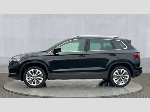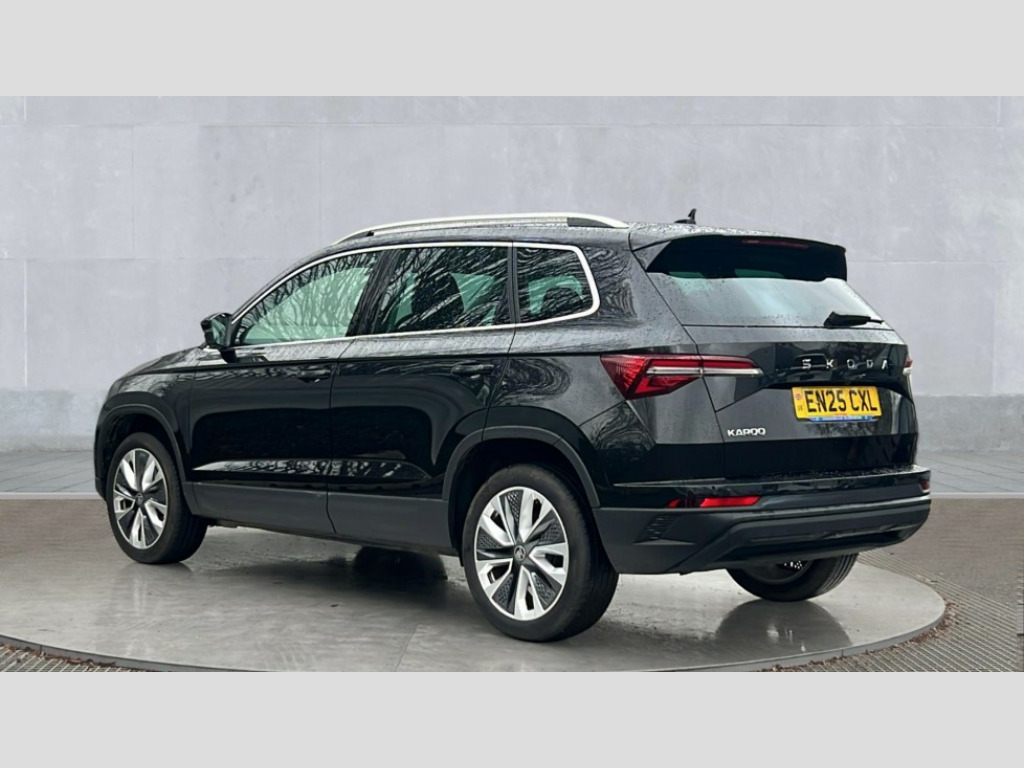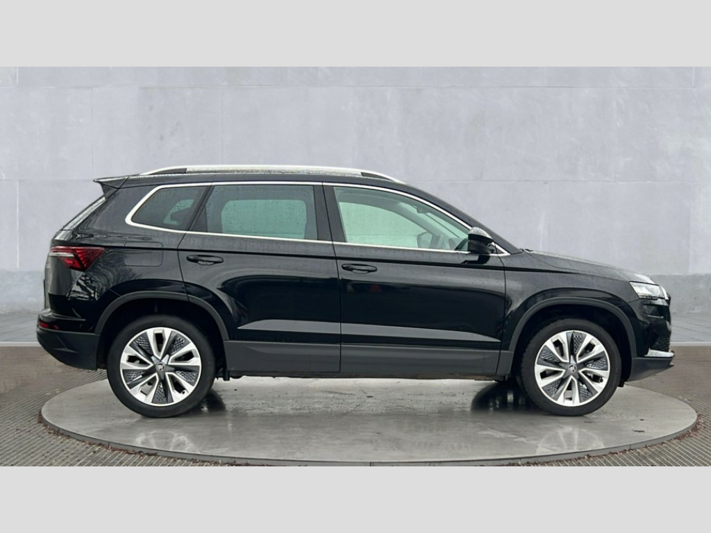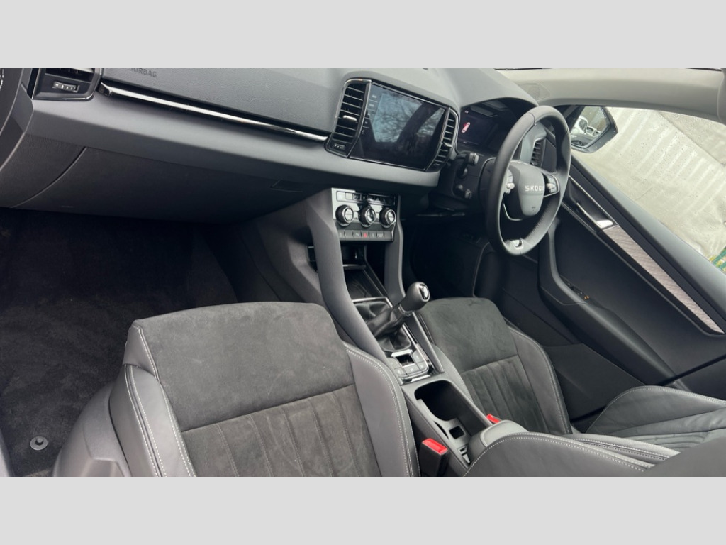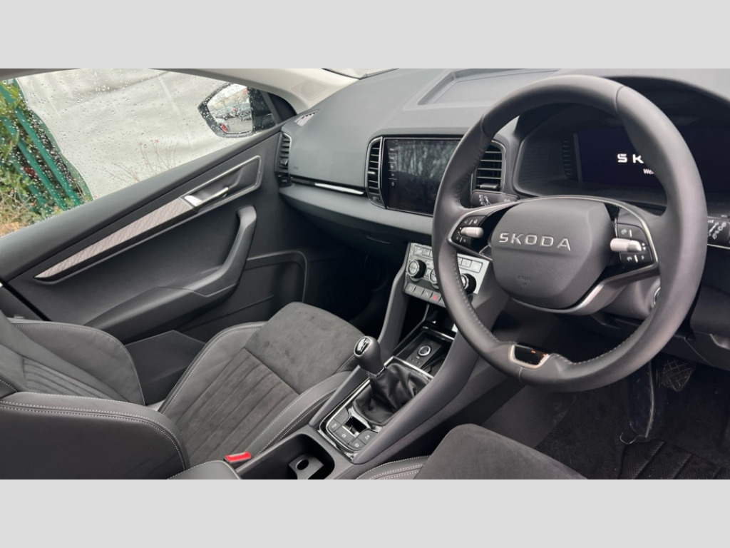 Skoda Karoq 1.5 TSI SE L Edition 5dr Advanced driver attention and drowsiness monitor, Drive Mode Selection including ECO function, Electro-mechanical PAS, Emergency services call system, Outside temperature gauge, Sensor for driver assistance systems, Service interval indicator, SmartLink wireless for Apple and wired for Android, Start/stop system with regenerative braking, Traffic sign recognition, USB C Port x 2 in front centre console, Virtual Cockpit - 10.25" digital display, Virtual pedal with electrically operated boot door, Wireless smartphone charging, DAB radio with Bluetooth, USB connection, Acoustic glass, Aero front windscreen wipers with intermittent function, Auto dimming rear view mirror with light and rain sensors, Black electric window control buttons, Body colour door mirrors and handles, Electric front and rear windows with child proof lock, Extended rear roof spoiler, Heated rear windscreen, LED daytime running lights, LED rear lights with high functionality welcome effect and dynamic indicators, Light assistant (coming/leaving home/tunnel light), Plastic scuff plates in door apertures, Privacy glass, Rear side wing doors, Rear window wiper with washer system and intermittent control, Safety reflectors on front doors, Third brake light, Unique dark chrome design logo on alloy wheels, 1.5 litre bottle holders in driver and front passenger door panels, 12V socket in boot, 12v socket in front centre armrest with storage compartment and rear air vents, 2 spoke leather heated multifunction steering wheel, 2 x Tablet holder, 3 rear height adjustable headrests, 3 seat bench in 2nd row, 4 foldable roof handles with rear coat hooks, Black floor carpet, Cargo elements in boot, Chrome inner door handles, Decorative door sills with KAROQ badging, Foldable hooks in the boot, Front head restraints, Height adjustable front three point seats belts with tensioners, Height/reach adjust steering wheel, Ice scraper, Illuminated glovebox, Illuminated luggage compartment, Interior noise suppression, Isofix child seat preparation for front passenger seat, Isofix child seat preparation outer rear, Manual lumbar support for front seats, Pearl grey interior ceiling, Pen holder, Pollen filter, Rear boot cover, Rear package tray, Rear reading lights, Rubbish bin door, Safety vest holder, Single front passenger seat, Skoda lettering on steering wheel, Storage box in upper central dashboard closed, Sunvisors with illuminated vanity mirrors, Textile floor mats, Ticket holder, Columbus pack - Karoq, Design Pack - Karoq, Non Smokers pack, Parking pack - Karoq, Automatic door unlocking in case of crash, Automatic fuel cut off in case of crash, Driver airbag, Electronic parking brake with auto hold function, Emergency rear braking signal, ESC (incl. ABS+MSR+ASR+EDS+HBA+DSR+RBS+MKB), Front side airbags, Head airbags, Hill hold control, Knee airbags, Passenger airbag with switch-off function, Pedestrian monitor, Power operated child safety locks, Seatbelt reminder signalisation and pretensioner for all seats, Three point seatbelts rear, Two tone horn, Tyre pressure monitor, Alarm with interior monitoring, back up horn and tilt sensor with safe function, Electronic engine immobiliser, Keyless entry and start/stop, Remote central locking with 2 remote folding keys, Black centre console, Chrome framed air vents, Satin black dashboard, Anti-theft wheel bolts protection, Breakdown and tool kit