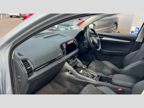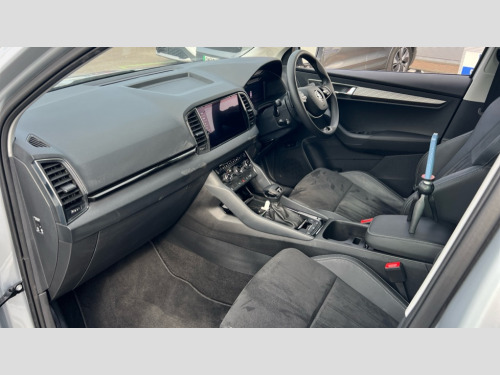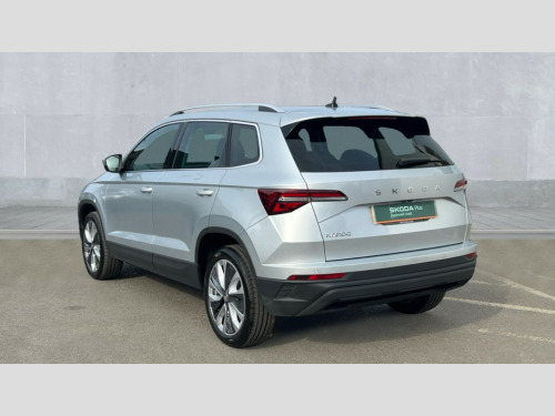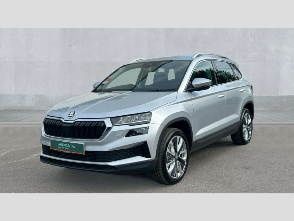 Skoda Karoq 1.5 TSI SE L Edition 5dr DSG Advanced driver attention and drowsiness monitor, Drive Mode Selection including ECO function, Electro-mechanical PAS, Emergency services call system, Outside temperature gauge, Sensor for driver assistance systems, Service interval indicator, SmartLink wireless for Apple and wired for Android, Start/stop system with regenerative braking, Traffic sign recognition, USB C Port x 2 in front centre console, Virtual Cockpit - 10.25" digital display, Virtual pedal with electrically operated boot door, Wireless smartphone charging, DAB radio with Bluetooth, USB connection, Acoustic glass, Aero front windscreen wipers with intermittent function, Auto dimming rear view mirror with light and rain sensors, Black electric window control buttons, Body colour door mirrors and handles, Electric front and rear windows with child proof lock, Extended rear roof spoiler, Heated rear windscreen, LED daytime running lights, LED rear lights with high functionality welcome effect and dynamic indicators, Light assistant (coming/leaving home/tunnel light), Plastic scuff plates in door apertures, Privacy glass, Rear side wing doors, Rear window wiper with washer system and intermittent control, Safety reflectors on front doors, Third brake light, Unique dark chrome design logo on alloy wheels, 1.5 litre bottle holders in driver and front passenger door panels, 12V socket in boot, 12v socket in front centre armrest with storage compartment and rear air vents, 2 spoke leather heated multifunction steering wheel with DSG paddles, 2 x Tablet holder, 3 rear height adjustable headrests, 3 seat bench in 2nd row, 4 foldable roof handles with rear coat hooks, Black floor carpet, Cargo elements in boot, Chrome inner door handles, Foldable hooks in the boot, Front head restraints, Height adjustable front three point seats belts with tensioners, Height/reach adjust steering wheel, Ice scraper, Illuminated glovebox, Illuminated luggage compartment, Interior noise suppression, Isofix child seat preparation for front passenger seat, Isofix child seat preparation outer rear, Manual lumbar support for front seats, Pearl grey interior ceiling, Pen holder, Pollen filter, Rear boot cover, Rear package tray, Rear reading lights, Rubbish bin door, Safety vest holder, Single front passenger seat, Skoda lettering on steering wheel, Storage box in upper central dashboard closed, Sunvisors with illuminated vanity mirrors, Textile floor mats, Ticket holder, Columbus pack - Karoq, Design Pack - Karoq, Non Smokers pack, Parking pack - Karoq, Automatic door unlocking in case of crash, Automatic fuel cut off in case of crash, Driver airbag, Electronic parking brake with auto hold function, Emergency rear braking signal, ESC (incl. ABS+MSR+ASR+EDS+HBA+DSR+RBS+MKB), Front side airbags, Head airbags, Hill hold control, Knee airbags, Passenger airbag with switch-off function, Pedestrian monitor, Seatbelt reminder signalisation and pretensioner for all seats, Three point seatbelts rear, Two tone horn, Tyre pressure monitor, Alarm with interior monitoring, back up horn and tilt sensor with safe function, Electronic engine immobiliser, Keyless entry and start/stop, Remote central locking with 2 remote folding keys, Black centre console, Chrome framed air vents, Satin black dashboard, Anti-theft wheel bolts protection, Breakdown and tool kit