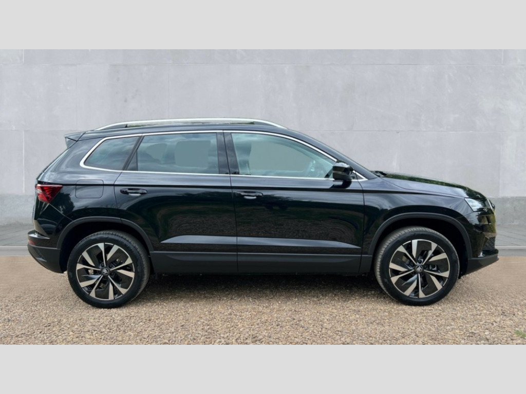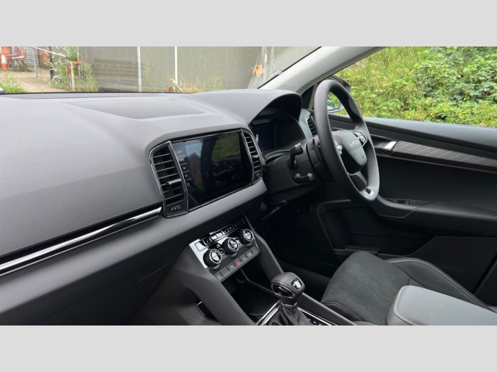 This Skoda Karoq stands out with its fuel economy of 46 mpg, meaning fewer trips to the petrol station. The low CO2 emissions are better for the environment compared to similar vehicles. The spacious boot offers ample room for luggage, shopping, or anything else you need to transport. Furthermore, the Karoq accelerates from 0 to 60mph in just 8.7 seconds, demonstrating its responsive performance. Advanced driver attention and drowsiness monitor, Drive Mode Selection including ECO function, Electro-mechanical PAS, Emergency services call system, Outside temperature gauge, Sensor for driver assistance systems, Service interval indicator, SmartLink wireless for Apple and wired for Android, Start/stop system with regenerative braking, Traffic sign recognition, USB C Port x 2 in front centre console, Virtual Cockpit - 10.25" digital display, Virtual pedal with electrically operated boot door, Wireless smartphone charging, DAB radio with Bluetooth, USB connection, Acoustic glass, Aero front windscreen wipers with intermittent function, Auto dimming rear view mirror with light and rain sensors, Black electric window control buttons, Body colour door mirrors and handles, Electric front and rear windows with child proof lock, Extended rear roof spoiler, Heated rear windscreen, LED daytime running lights, LED rear lights with high functionality welcome effect and dynamic indicators, Light assistant (coming/leaving home/tunnel light), Plastic scuff plates in door apertures, Privacy glass, Rear side wing doors, Rear window wiper with washer system and intermittent control, Safety reflectors on front doors, Third brake light, Unique dark chrome design logo on alloy wheels, 1.5 litre bottle holders in driver and front passenger door panels, 12V socket in boot, 12v socket in front centre armrest with storage compartment and rear air vents, 2 spoke leather heated multifunction steering wheel with DSG paddles, 2 x Tablet holder, 3 rear height adjustable headrests, 3 seat bench in 2nd row, 4 foldable roof handles with rear coat hooks, Black floor carpet, Cargo elements in boot, Chrome inner door handles, Foldable hooks in the boot, Front head restraints, Height adjustable front three point seats belts with tensioners, Height/reach adjust steering wheel, Ice scraper, Illuminated glovebox, Illuminated luggage compartment, Interior noise suppression, Isofix child seat preparation for front passenger seat, Isofix child seat preparation outer rear, Manual lumbar support for front seats, Pearl grey interior ceiling, Pen holder, Pollen filter, Rear boot cover, Rear package tray, Rear reading lights, Rubbish bin door, Safety vest holder, Single front passenger seat, Skoda lettering on steering wheel, Storage box in upper central dashboard closed, Sunvisors with illuminated vanity mirrors, Textile floor mats, Ticket holder, Columbus pack - Karoq, Design Pack - Karoq, Non Smokers pack, Parking pack - Karoq, Automatic door unlocking in case of crash, Automatic fuel cut off in case of crash, Driver airbag, Electronic parking brake with auto hold function, Emergency rear braking signal, ESC (incl. ABS+MSR+ASR+EDS+HBA+DSR+RBS+MKB), Front side airbags, Head airbags, Hill hold control, Knee airbags, Passenger airbag with switch-off function, Pedestrian monitor, Seatbelt reminder signalisation and pretensioner for all seats, Three point seatbelts rear, Two tone horn, Tyre pressure monitor, Alarm with interior monitoring, back up horn and tilt sensor with safe function, Electronic engine immobiliser, Keyless entry and start/stop, Remote central locking with 2 remote folding keys, Black centre console, Chrome framed air vents, Satin black dashboard, Anti-theft wheel bolts protection, Breakdown and tool kit