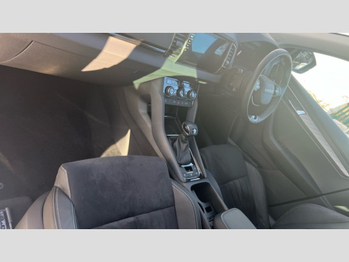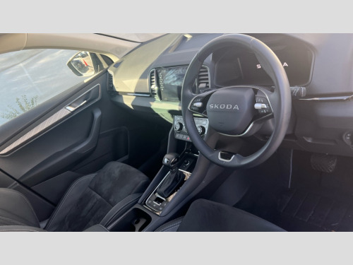 Skoda Karoq 1.5 TSI SE L Edition 5dr DSG Advanced driver attention and drowsiness monitor, Drive Mode Selection including ECO function, Electro-mechanical PAS, Emergency services call system, Outside temperature gauge, Sensor for driver assistance systems, Service interval indicator, SmartLink wireless for Apple and wired for Android, Start/stop system with regenerative braking, Traffic sign recognition, USB C Port x 2 in front centre console, Virtual Cockpit - 10.25" digital display, Virtual pedal with electrically operated boot door, Wireless smartphone charging, DAB radio with Bluetooth, USB connection, Acoustic glass, Aero front windscreen wipers with intermittent function, Auto dimming rear view mirror with light and rain sensors, Black electric window control buttons, Body colour door mirrors and handles, Electric front and rear windows with child proof lock, Extended rear roof spoiler, Heated rear windscreen, LED daytime running lights, LED rear lights with high functionality welcome effect and dynamic indicators, Light assistant (coming/leaving home/tunnel light), Plastic scuff plates in door apertures, Privacy glass, Rear side wing doors, Rear window wiper with washer system and intermittent control, Safety reflectors on front doors, Third brake light, Unique dark chrome design logo on alloy wheels, 1.5 litre bottle holders in driver and front passenger door panels, 12V socket in boot, 12v socket in front centre armrest with storage compartment and rear air vents, 2 spoke leather heated multifunction steering wheel with DSG paddles, 2 x Tablet holder, 3 rear height adjustable headrests, 3 seat bench in 2nd row, 4 foldable roof handles with rear coat hooks, Black floor carpet, Cargo elements in boot, Chrome inner door handles, Foldable hooks in the boot, Front head restraints, Height adjustable front three point seats belts with tensioners, Height/reach adjust steering wheel, Ice scraper, Illuminated glovebox, Illuminated luggage compartment, Interior noise suppression, Isofix child seat preparation for front passenger seat, Isofix child seat preparation outer rear, Manual lumbar support for front seats, Pearl grey interior ceiling, Pen holder, Pollen filter, Rear boot cover, Rear package tray, Rear reading lights, Rubbish bin door, Safety vest holder, Single front passenger seat, Skoda lettering on steering wheel, Storage box in upper central dashboard closed, Sunvisors with illuminated vanity mirrors, Textile floor mats, Ticket holder, Columbus pack - Karoq, Design Pack - Karoq, Non Smokers pack, Parking pack - Karoq, Automatic door unlocking in case of crash, Automatic fuel cut off in case of crash, Driver airbag, Electronic parking brake with auto hold function, Emergency rear braking signal, ESC (incl. ABS+MSR+ASR+EDS+HBA+DSR+RBS+MKB), Front side airbags, Head airbags, Hill hold control, Knee airbags, Passenger airbag with switch-off function, Pedestrian monitor, Seatbelt reminder signalisation and pretensioner for all seats, Three point seatbelts rear, Two tone horn, Tyre pressure monitor, Alarm with interior monitoring, back up horn and tilt sensor with safe function, Electronic engine immobiliser, Keyless entry and start/stop, Remote central locking with 2 remote folding keys, Black centre console, Chrome framed air vents, Satin black dashboard, Anti-theft wheel bolts protection, Breakdown and tool kit