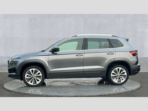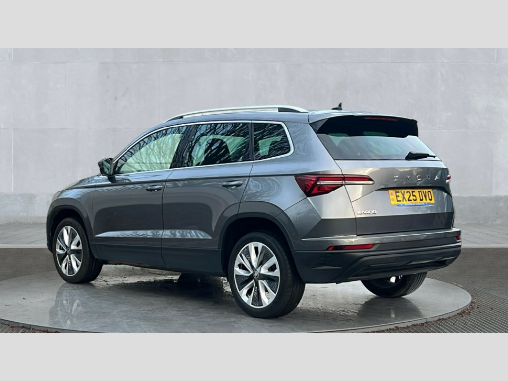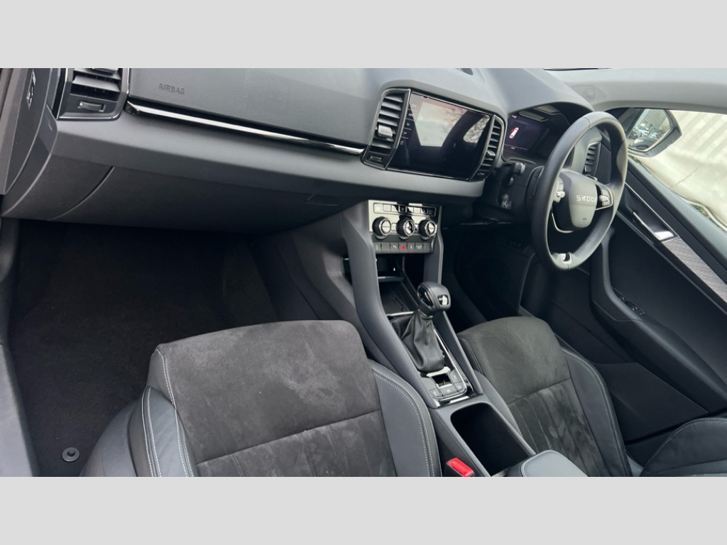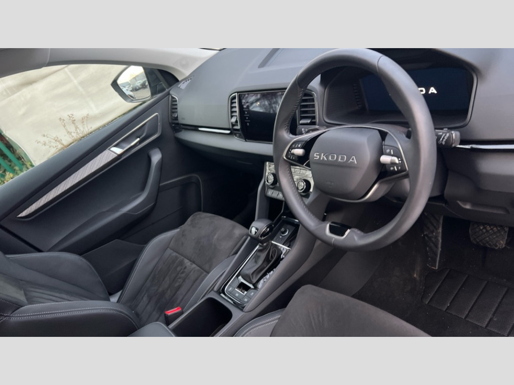 Skoda Karoq 1.5 TSI SE L Edition 5dr DSG Advanced driver attention and drowsiness monitor, Drive Mode Selection including ECO function, Electro-mechanical PAS, Emergency services call system, Outside temperature gauge, Sensor for driver assistance systems, Service interval indicator, SmartLink wireless for Apple and wired for Android, Start/stop system with regenerative braking, Traffic sign recognition, USB C Port x 2 in front centre console, Virtual Cockpit - 10.25" digital display, Virtual pedal with electrically operated boot door, Wireless smartphone charging, DAB radio with Bluetooth, USB connection, Acoustic glass, Aero front windscreen wipers with intermittent function, Auto dimming rear view mirror with light and rain sensors, Black electric window control buttons, Body colour door mirrors and handles, Electric front and rear windows with child proof lock, Extended rear roof spoiler, Heated rear windscreen, LED daytime running lights, LED rear lights with high functionality welcome effect and dynamic indicators, Light assistant (coming/leaving home/tunnel light), Plastic scuff plates in door apertures, Privacy glass, Rear side wing doors, Rear window wiper with washer system and intermittent control, Safety reflectors on front doors, Third brake light, Unique dark chrome design logo on alloy wheels, 1.5 litre bottle holders in driver and front passenger door panels, 12V socket in boot, 12v socket in front centre armrest with storage compartment and rear air vents, 2 spoke leather heated multifunction steering wheel with DSG paddles, 2 x Tablet holder, 3 rear height adjustable headrests, 3 seat bench in 2nd row, 4 foldable roof handles with rear coat hooks, Black floor carpet, Cargo elements in boot, Chrome inner door handles, Foldable hooks in the boot, Front head restraints, Height adjustable front three point seats belts with tensioners, Height/reach adjust steering wheel, Ice scraper, Illuminated glovebox, Illuminated luggage compartment, Interior noise suppression, Isofix child seat preparation for front passenger seat, Isofix child seat preparation outer rear, Manual lumbar support for front seats, Pearl grey interior ceiling, Pen holder, Pollen filter, Rear boot cover, Rear package tray, Rear reading lights, Rubbish bin door, Safety vest holder, Single front passenger seat, Skoda lettering on steering wheel, Storage box in upper central dashboard closed, Sunvisors with illuminated vanity mirrors, Textile floor mats, Ticket holder, Columbus pack - Karoq, Design Pack - Karoq, Non Smokers pack, Parking pack - Karoq, Automatic door unlocking in case of crash, Automatic fuel cut off in case of crash, Driver airbag, Electronic parking brake with auto hold function, Emergency rear braking signal, ESC (incl. ABS+MSR+ASR+EDS+HBA+DSR+RBS+MKB), Front side airbags, Head airbags, Hill hold control, Knee airbags, Passenger airbag with switch-off function, Pedestrian monitor, Seatbelt reminder signalisation and pretensioner for all seats, Three point seatbelts rear, Two tone horn, Tyre pressure monitor, Alarm with interior monitoring, back up horn and tilt sensor with safe function, Electronic engine immobiliser, Keyless entry and start/stop, Remote central locking with 2 remote folding keys, Black centre console, Chrome framed air vents, Satin black dashboard, Anti-theft wheel bolts protection, Breakdown and tool kit