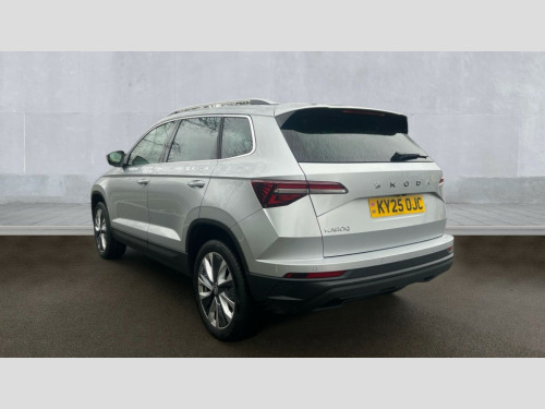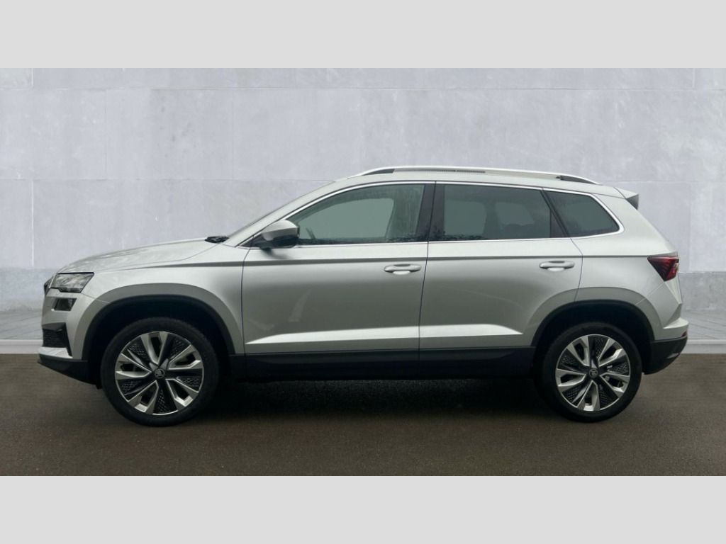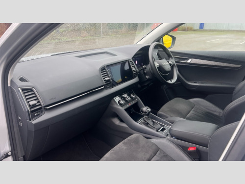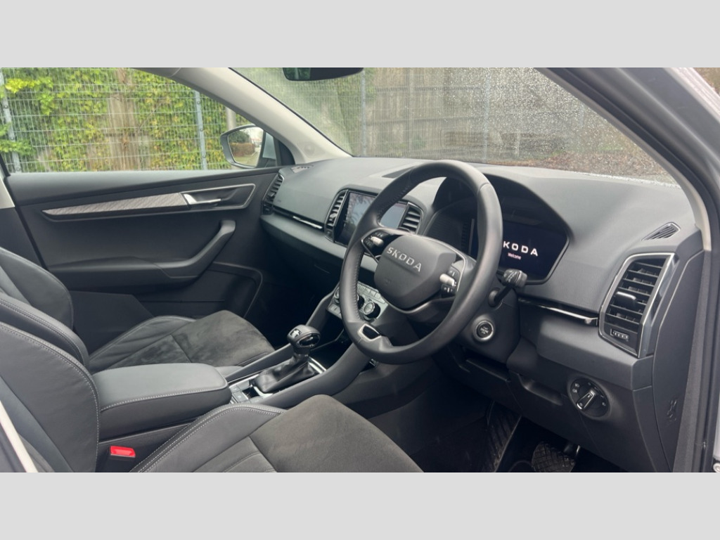 Skoda Karoq 1.5 TSI SE L Edition 5dr DSG Advanced driver attention and drowsiness monitor, Drive Mode Selection including ECO function, Electro-mechanical PAS, Emergency services call system, Outside temperature gauge, Sensor for driver assistance systems, Service interval indicator, SmartLink wireless for Apple and wired for Android, Start/stop system with regenerative braking, Traffic sign recognition, USB C Port x 2 in front centre console, Virtual Cockpit - 10.25" digital display, Virtual pedal with electrically operated boot door, Wireless smartphone charging, DAB radio with Bluetooth, USB connection, Acoustic glass, Aero front windscreen wipers with intermittent function, Auto dimming rear view mirror with light and rain sensors, Black electric window control buttons, Body colour door mirrors and handles, Electric front and rear windows with child proof lock, Extended rear roof spoiler, Heated rear windscreen, LED daytime running lights, LED rear lights with high functionality welcome effect and dynamic indicators, Light assistant (coming/leaving home/tunnel light), Plastic scuff plates in door apertures, Privacy glass, Rear side wing doors, Rear window wiper with washer system and intermittent control, Safety reflectors on front doors, Third brake light, Unique dark chrome design logo on alloy wheels, 1.5 litre bottle holders in driver and front passenger door panels, 12V socket in boot, 12v socket in front centre armrest with storage compartment and rear air vents, 2 spoke leather heated multifunction steering wheel with DSG paddles, 2 x Tablet holder, 3 rear height adjustable headrests, 3 seat bench in 2nd row, 4 foldable roof handles with rear coat hooks, Black floor carpet, Cargo elements in boot, Chrome inner door handles, Foldable hooks in the boot, Front head restraints, Height adjustable front three point seats belts with tensioners, Height/reach adjust steering wheel, Ice scraper, Illuminated glovebox, Illuminated luggage compartment, Interior noise suppression, Isofix child seat preparation for front passenger seat, Isofix child seat preparation outer rear, Manual lumbar support for front seats, Pearl grey interior ceiling, Pen holder, Pollen filter, Rear boot cover, Rear package tray, Rear reading lights, Rubbish bin door, Safety vest holder, Single front passenger seat, Skoda lettering on steering wheel, Storage box in upper central dashboard closed, Sunvisors with illuminated vanity mirrors, Textile floor mats, Ticket holder, Columbus pack - Karoq, Design Pack - Karoq, Non Smokers pack, Parking pack - Karoq, Automatic door unlocking in case of crash, Automatic fuel cut off in case of crash, Driver airbag, Electronic parking brake with auto hold function, Emergency rear braking signal, ESC (incl. ABS+MSR+ASR+EDS+HBA+DSR+RBS+MKB), Front side airbags, Head airbags, Hill hold control, Knee airbags, Passenger airbag with switch-off function, Pedestrian monitor, Seatbelt reminder signalisation and pretensioner for all seats, Three point seatbelts rear, Two tone horn, Tyre pressure monitor, Alarm with interior monitoring, back up horn and tilt sensor with safe function, Electronic engine immobiliser, Keyless entry and start/stop, Remote central locking with 2 remote folding keys, Black centre console, Chrome framed air vents, Satin black dashboard, Anti-theft wheel bolts protection, Breakdown and tool kit