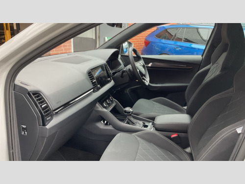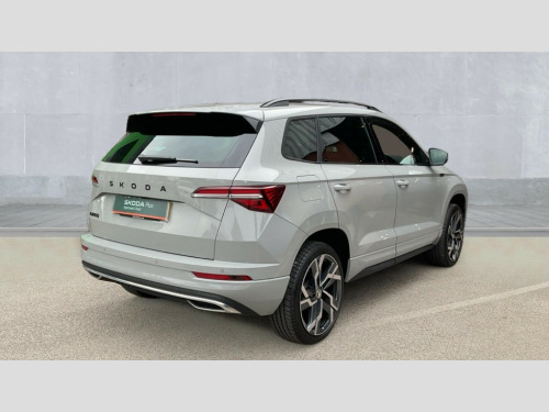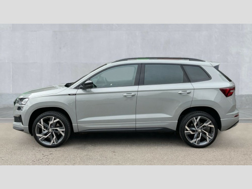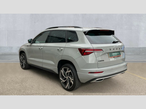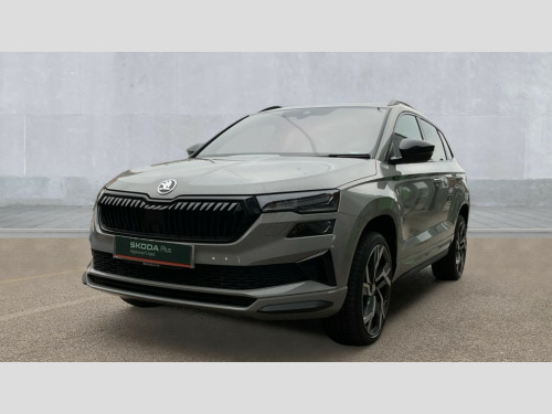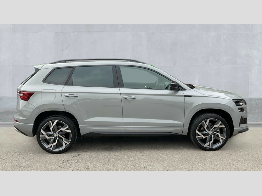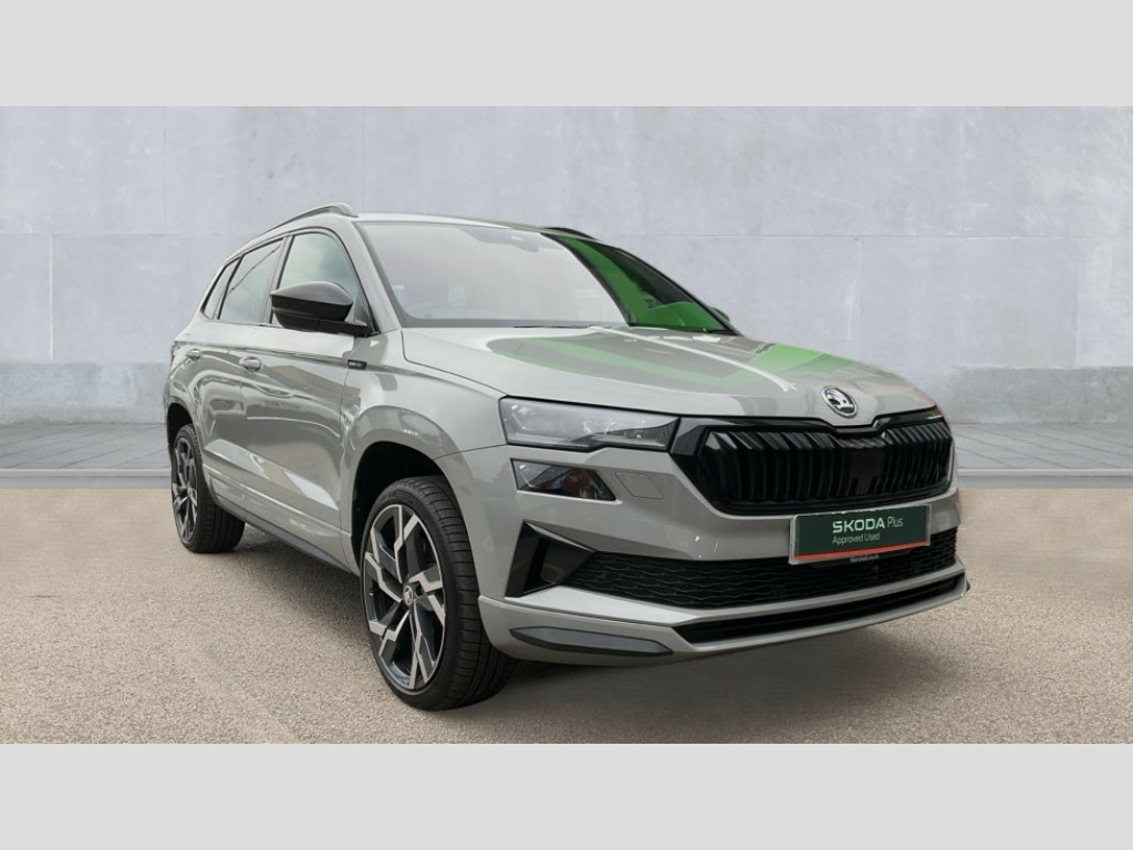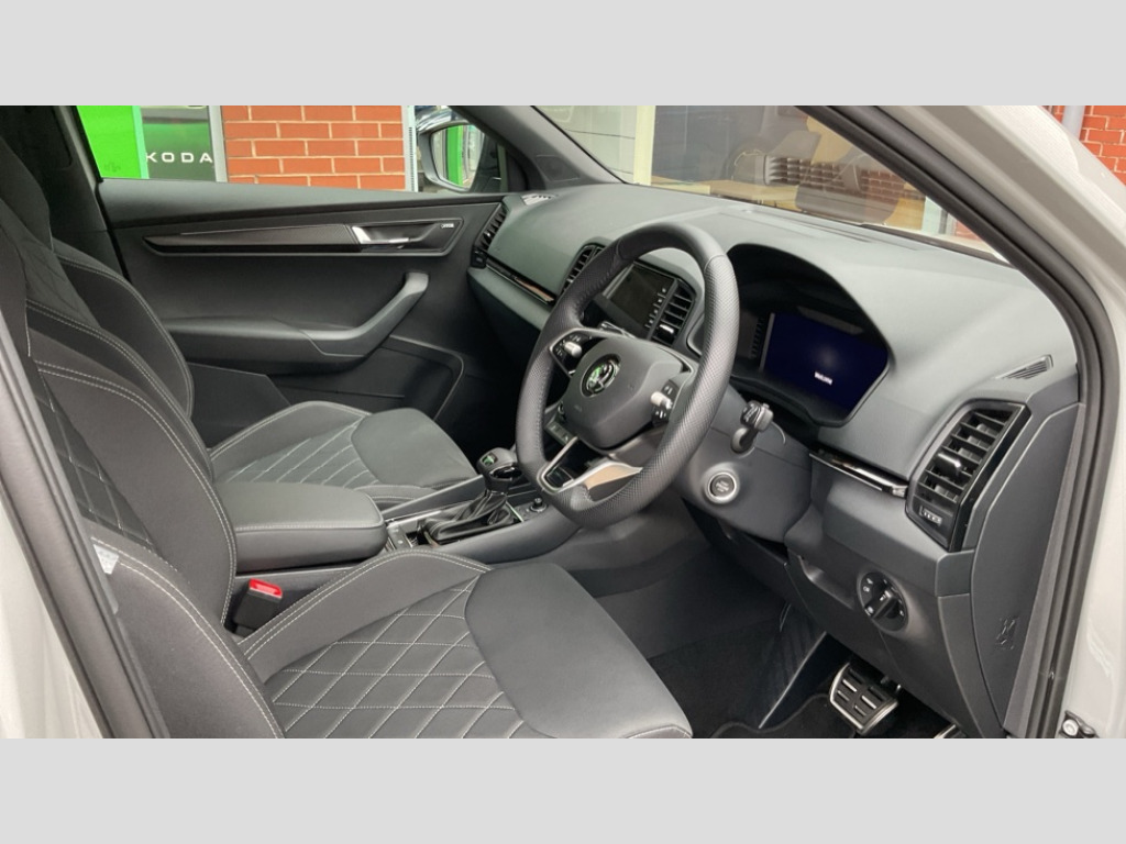 Up to 2 years Servicing, 2 years Warranty, 2 years Roadside Assistance, 2 MOT's and up to £250 deposit contribution for vehicles 13-36 months old at 11.4% APR Representative ** 8" Digital display, Advanced driver attention and drowsiness monitor, Emergency services call system, Outside temperature gauge, Sensor for driver assistance systems, Service interval indicator, SmartLink wireless for Apple and wired for Android, Start/stop system with regenerative braking, USB C Port x 2 in front centre console, Virtual Cockpit - 10.25" digital display, Virtual pedal with electrically operated boot door, Wireless smartphone charging, DAB radio with Bluetooth, USB connection, Acoustic glass, Aero front windscreen wipers with intermittent function, Auto dimming rear view mirror with light and rain sensors, Black door mirrors, Black electric window control buttons, Black radiator grille, Black roof rails, Body colour door handles, Electric front and rear windows with child proof lock, Front door steps with SportLine logo, Heated rear windscreen, LED daytime running lights, LED rear lights with high functionality welcome effect and dynamic indicators, Light assistant (coming/leaving home/tunnel light), Panoramic sliding sunroof, Plastic scuff plates in door apertures, Privacy glass, Protective door side sills in body colour, Rear diffuser, Rear side wing doors, Rear spoiler, Rear window wiper with washer system and intermittent control, Safety reflectors on front doors, Skoda lettering on tailgate in black, Sportline badge on front fender, Sportline decorative inserts with badging, Sports front and rear bumpers, Third brake light, 1.5 litre bottle holders in driver and front passenger door panels, 12V socket in boot, 12v socket in front centre armrest with storage compartment and rear air vents, 2 x Tablet holder, 3 rear height adjustable headrests, 3 seat bench in 2nd row, 3 spoke sports leather heated multifunction steering wheel with DSG paddles, 4 foldable roof handles with rear coat hooks, Black floor carpet, Black roof headlining, Chrome inner door handles, Foldable hooks in the boot, Front head restraints, Height adjustable front three point seats belts with tensioners, Height/reach adjust steering wheel, Ice scraper, Illuminated glovebox, Illuminated luggage compartment, Isofix child seat preparation for front passenger seat, Isofix child seat preparation outer rear, Manual lumbar support for front seats, Pen holder, Pollen filter, Rear boot cover, Rear reading lights, Rear seats fixed folding and divided 60:40, Rubbish bin door, Safety vest holder, Single front passenger seat, Storage box in upper central dashboard closed, Sunvisors with illuminated vanity mirrors, Textile floor mats, Ticket holder, Titan black interior ceiling, Umbrella under passenger seat, Under passenger seat storage compartment, LED Interior lighting pack with Skoda welcome logo - Karoq, Light Pack - Karoq, Non Smokers pack, Automatic door unlocking in case of crash, Automatic fuel cut off in case of crash, Driver airbag, Electronic parking brake with auto hold function, Emergency rear braking signal, ESC (incl. ABS+MSR+ASR+EDS+HBA+DSR+RBS+MKB), Front side airbags, Head airbags, Hill hold control, Knee airbags, Passenger airbag with switch-off function, Pedestrian monitor, Seatbelt reminder signalisation and pretensioner for all seats, Three point seatbelts rear, Two tone horn, Tyre pressure monitor, Alarm with interior monitoring, back up horn and tilt sensor with safe function, Electronic engine immobiliser, Keyless entry and start/stop, Remote central locking with 2 remote folding keys, Black air vent surround, Black centre console, carbon door decor, Satin black dashboard, Satin black door trim, 19" Sagittarius anthracite alloy wheels, Anti-theft wheel bolts protection, Breakdown and tool kit