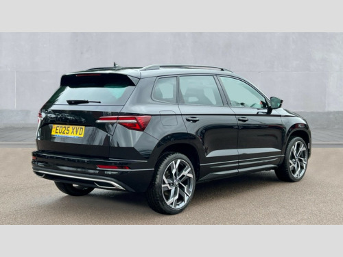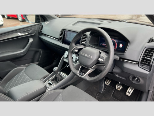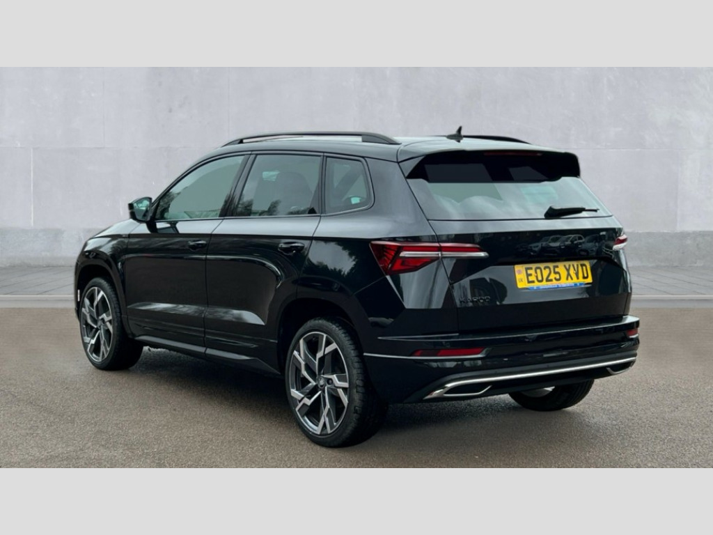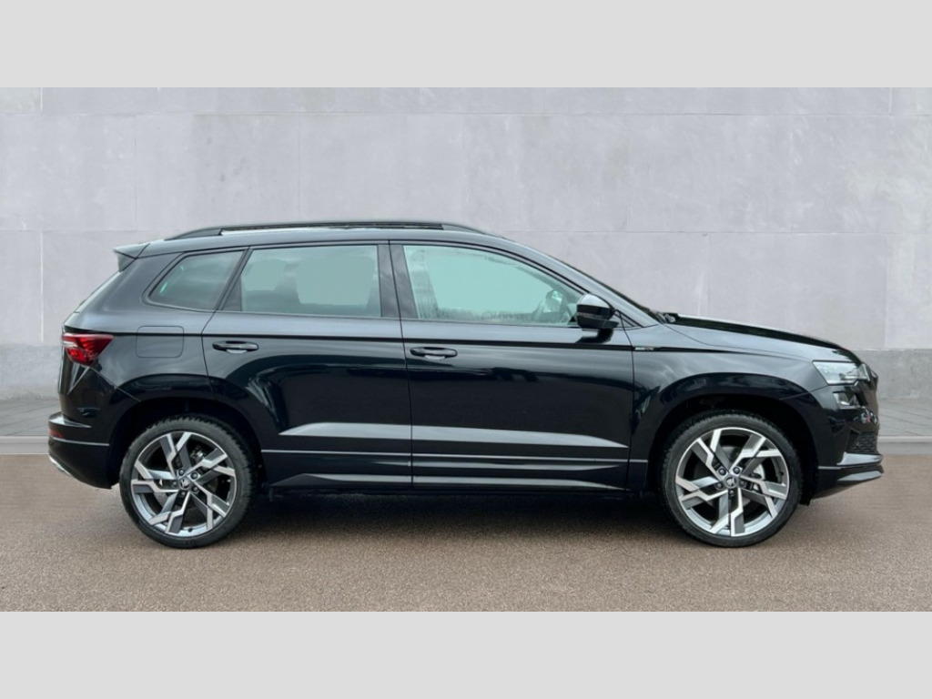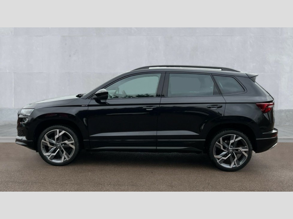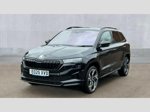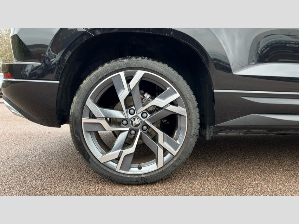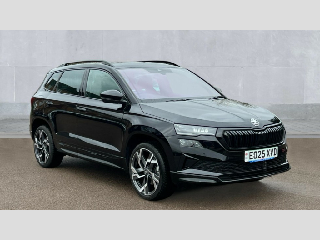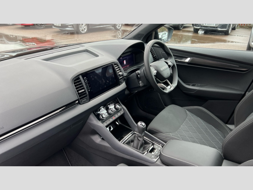 Skoda Karoq 1.5 TSI Sportline Edition 5dr Advanced driver attention and drowsiness monitor, Emergency services call system, Outside temperature gauge, Sensor for driver assistance systems, Service interval indicator, SmartLink wireless for Apple and wired for Android, Start/stop system with regenerative braking, Traffic sign recognition, USB C Port x 2 in front centre console, Virtual Cockpit - 10.25" digital display, Virtual pedal with electrically operated boot door, Wireless smartphone charging, DAB radio with Bluetooth, USB connection, Acoustic glass, Aero front windscreen wipers with intermittent function, Auto dimming rear view mirror with light and rain sensors, Black door mirrors, Black electric window control buttons, Black radiator grille, Black roof rails, Body colour door handles, Electric front and rear windows with child proof lock, Extended rear roof spoiler, Front door steps with SportLine logo, Heated rear windscreen, LED daytime running lights, LED rear lights with high functionality welcome effect and dynamic indicators, Light assistant (coming/leaving home/tunnel light), Panoramic sliding sunroof, Plastic scuff plates in door apertures, Privacy glass, Protective door side sills in body colour, Rear diffuser, Rear side wing doors, Rear window wiper with washer system and intermittent control, Safety reflectors on front doors, Skoda lettering on tailgate in black, Sportline badge on front fender, Sports front and rear bumpers, Third brake light, Unique dark chrome design logo on alloy wheels, 1.5 litre bottle holders in driver and front passenger door panels, 12V socket in boot, 12v socket in front centre armrest with storage compartment and rear air vents, 2 x Tablet holder, 3 rear height adjustable headrests, 3 seat bench in 2nd row, 3 spoke sports leather heated multifunction steering wheel, 4 foldable roof handles with rear coat hooks, Black floor carpet, Cargo elements in boot, Chrome inner door handles, Foldable hooks in the boot, Front head restraints, Height adjustable front three point seats belts with tensioners, Height/reach adjust steering wheel, Ice scraper, Illuminated glovebox, Illuminated luggage compartment, Isofix child seat preparation for front passenger seat, Isofix child seat preparation outer rear, Manual lumbar support for front seats, Pen holder, Pollen filter, Rear backrest release from boot, Rear boot cover, Rear package tray, Rear reading lights, Rear seats fixed folding and divided 60:40, Rubbish bin door, Safety vest holder, Single front passenger seat, Skoda lettering on steering wheel, Sportline decorative inserts, Storage box in upper central dashboard closed, Sunvisors with illuminated vanity mirrors, Textile floor mats, Ticket holder, Titan black interior ceiling, Umbrella under passenger seat, Under passenger seat storage compartment, Columbus pack - Karoq, LED Interior lighting pack with Skoda welcome logo - Karoq, Light Pack - Karoq, Non Smokers pack, Performance pack - Karoq, Winter plus pack with heated front and rear seats - Karoq, Automatic door unlocking in case of crash, Automatic fuel cut off in case of crash, Driver airbag, Electronic parking brake with auto hold function, Emergency rear braking signal, ESC (incl. ABS+MSR+ASR+EDS+HBA+DSR+RBS+MKB), Front side airbags, Head airbags, Hill hold control, Knee airbags, Passenger airbag with switch-off function, Pedestrian monitor, Seatbelt reminder signalisation and pretensioner for all seats, Three point seatbelts rear, Two tone horn, Tyre pressure monitor, Alarm with interior monitoring, back up horn and tilt sensor with safe function, Electronic engine immobiliser, Keyless entry and start/stop, Remote central locking with 2 remote folding keys, Black air vent surround, Black centre console, carbon door decor, Satin black dashboard, Satin black door trim, 19" Sagittarius anthracite alloy wheels, Anti-theft wheel bolts protection, Breakdown and tool kit