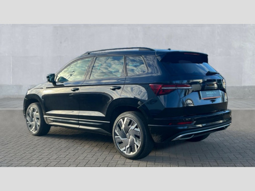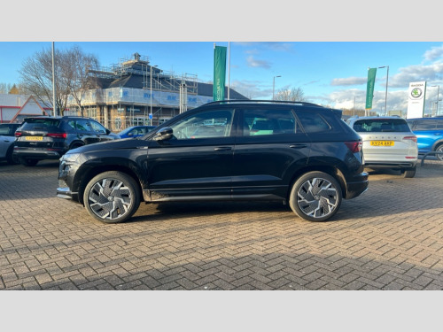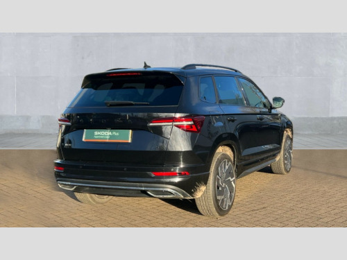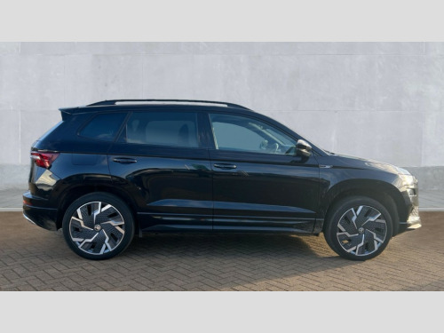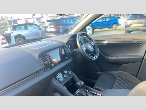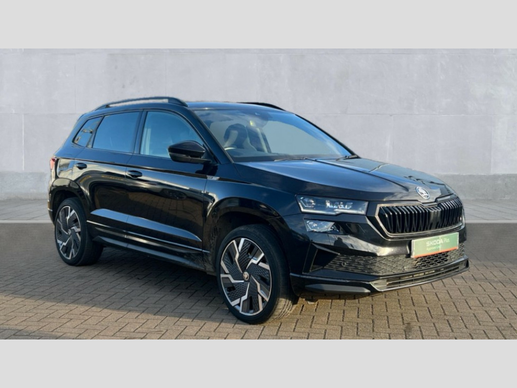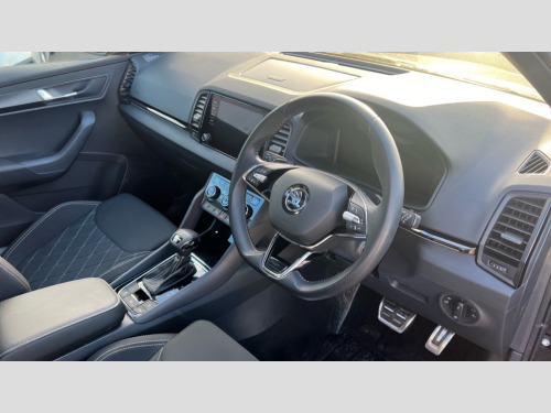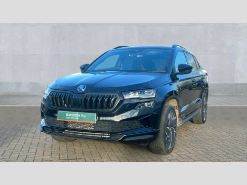 Skoda Karoq 2.0 TDI [150] Sportline 4x4 5dr DSG 8" Digital display, Care connect, Driver fatigue sensor, Emergency services call system, Outside temperature gauge, Service interval indicator, SmartLink wireless for Apple and wired for Android, Start/stop system with regenerative braking, USB C Port x 2 in front centre console, Virtual cockpit, Virtual pedal with electrically operated boot door, Diesel particulate filter, 8 Speakers, DAB radio with Bluetooth, USB connection, Wireless charging without wireless aerial connection, Acoustic glass, Aero front windscreen wipers with intermittent function, Auto dimming rear view mirror with light and rain sensors, Black door mirrors, Black electric window control buttons, Black radiator grille, Black roof rails, Body colour door handles, Electric front and rear windows with child proof lock, Front door steps with SportLine logo, Heated rear windscreen, LED 3rd brake light, LED daytime running lights, LED rear lights with high functionality welcome effect and dynamic indicators, Light assistant (coming/leaving home/tunnel light), Panoramic sliding sunroof, Plastic scuff plates, Privacy glass, Protective door side sills in body colour, Rear diffuser, Rear side wing doors, Rear spoiler, Rear window wiper with washer system and intermittent control, Safety reflectors on front doors, Skoda lettering on tailgate in black, Sportline badge on front fender, Sportline decorative inserts with badging, Sports front and rear bumpers, 1.5 litre bottle holders in driver and front passenger door panels, 12V socket in boot, 12v socket in front centre armrest with storage compartment and rear air vents, 3 rear height adjustable headrests, 3 seat bench in 2nd row, 3 spoke leather sports multifunction steering wheel and silver stitching with gear shift paddles, 4 foldable roof handles with rear coat hooks, Black floor carpet, Black roof headlining, Chrome inner door handles, Double sided boot floor, Foldable hooks in the boot, Front head restraints, Height adjustable front three point seats belts with tensioners, Height/reach adjust steering wheel, Ice scraper, Illuminated glovebox, Illuminated luggage compartment, Interior noise suppression, Isofix child seat preparation outer rear, Manual lumbar support for front seats, Pen holder, Pollen filter, Rear boot cover, Rear reading lights, Rear seats fixed folding and divided 60:40, Rubbish bin door, Safety vest holder, Single front passenger seat, Storage box in upper central dashboard closed, Sunvisors with illuminated vanity mirrors, Textile floor mats, Ticket holder, Titan black interior ceiling, Welcome animation with sportline logo, Boot pack - Karoq, Light Pack - Karoq, Parking pack - Karoq, Automatic door unlocking in case of crash, Automatic fuel cut off in case of crash, Child locks on rear doors, Driver airbag, Electronic parking brake with auto hold function, Emergency rear braking signal, ESC including ABS, MSR, ASR, EDS, HBA, DSR, RBS, MKB and traction control, Front side airbags, Hill hold control, Knee airbags, Passenger airbag with switch-off function, Pedestrian monitor, Seatbelt reminder signalisation and pretensioner for all seats, Three point seatbelts rear, Two tone horn, Tyre pressure display, Tyre pressure monitor, Alarm with interior monitoring, back up horn and tilt sensor with safe function, Electronic engine immobiliser, Keyless entry and start/stop, Remote central locking with 2 remote folding keys, Black air vent surround, Black centre console, Satin black dashboard, Satin black door trim, 19" Sagitarius anthracite alloy wheels with matt black aero inserts, Anti-theft wheel bolts protection, Matt black aero hub caps, Tool kit
