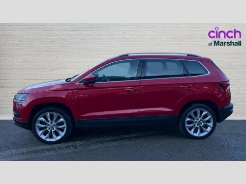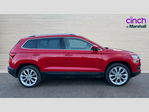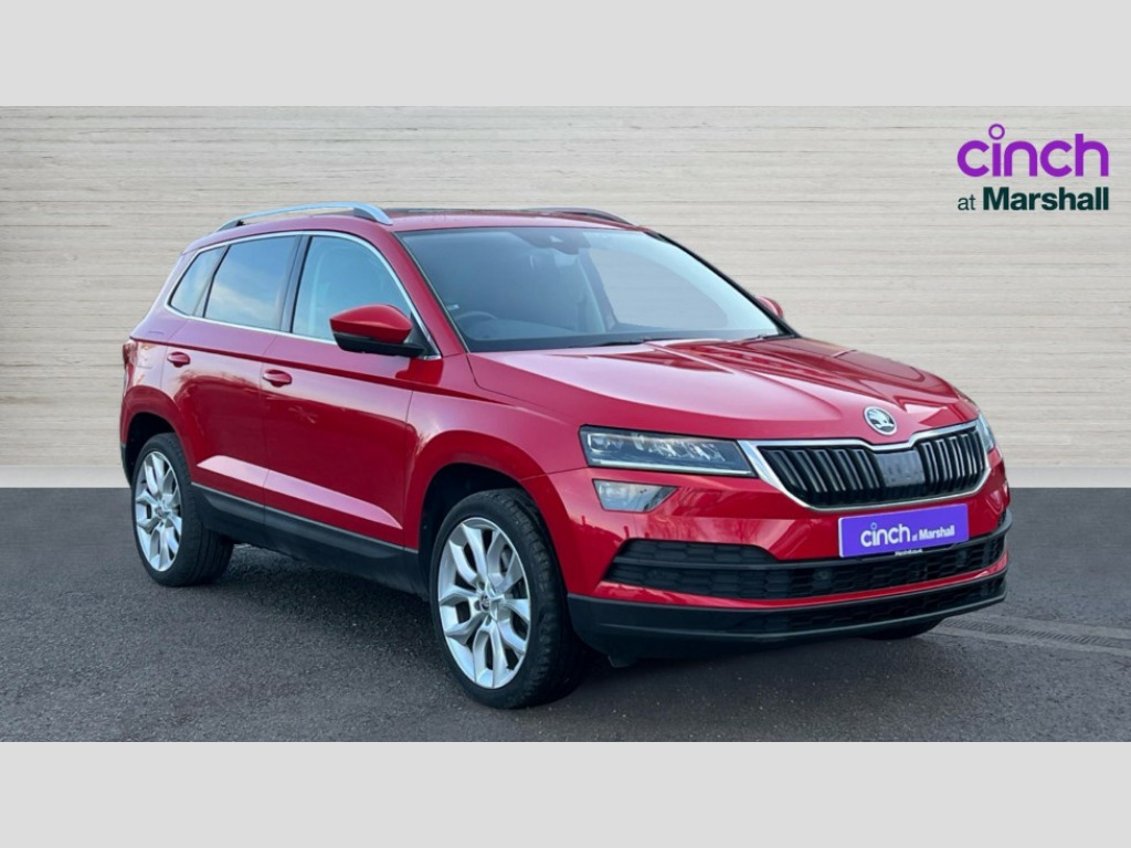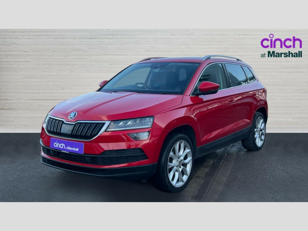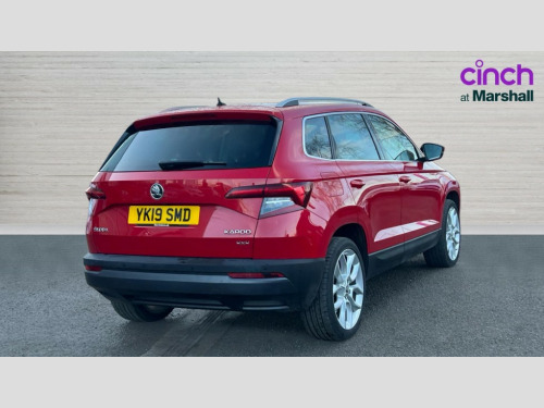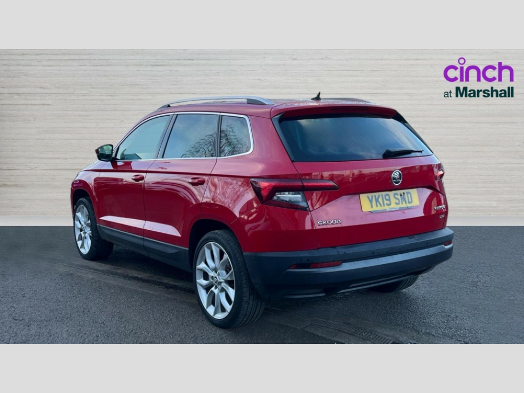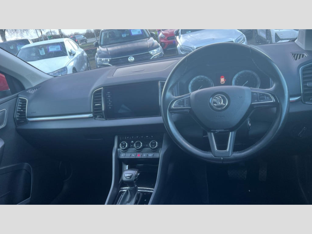 Skoda Karoq 2.0 TDI Edition 4x4 5dr DSG Columbus satellite navigation with 9.2" touchscreen display, integrated Wi-Fi, gesture control and WLAN, Drive mode selection with off road, Driver alert system, Driver fatigue sensor, Driver profile selection, Multifunction colour trip computer, Outside temperature gauge, Rear cross traffic alert, Rear view camera, Service interval indicator, Start/stop system with regenerative braking, Traffic sign recognition, Diesel particulate filter, DAB radio with Bluetooth, SD card slot, USB connection, Acoustic glass, Aero front windscreen wipers with intermittent function, Automatic headlight control system, Body colour door mirrors and handles, Body coloured bumpers, Chrome outside aluminium bar around the window, Chrome roof rails, Electric front and rear windows with child proof lock, Electrically adjustable heated folding and auto dimming door mirrors with boarding spots and memory function, Full LED headlights + adaptive front light system + LED daytime running lights and front cornering fog lights, Headlight washers, Heated rear windscreen, LED rear lights with high functionality, Light assistant (coming/leaving home/tunnel light), Panoramic sliding sunroof, Privacy glass, Safety reflectors on front doors, Third brake light, 1.5 litre bottle holders in driver and front passenger door panels, 12V socket in boot, 12v socket in front centre armrest with storage compartment and rear air vents, 2 Folding hooks and nets in boot, 2 Front readings lights for driver and passenger, 3 rear height adjustable headrests, 4 foldable roof handles with rear coat hooks, 4 lashing points on luggage floor, Backrest release, Cargo elements in boot, Chrome inner door handles, Dual zone climate control, Electrically adjustable driver's seat with memory function includes lumbar support + heated folding door mirrors with auto dimming and boarding spots, Folding tables on the front seat backrests, Front seat and rear pockets, Height adjustable front three point seats belts with tensioners, Height adjustable passenger seat, Height/reach adjust steering wheel, Ice scraper, Illuminated and cooled glovebox, Illuminated luggage compartment, Isofix child seat preparation outer rear, Leather upholstery, Manual lumbar support for front passenger seat, Net programme in boot, Pen holder, Pollen filter, Rear boot cover, Rear reading lights, Rear seats fixed folding and divided 60:40, Removable LED torch in the boot, Retractable parcel shelf attachable to tailgate, Safety vest holder, Storage box in upper central dashboard closed, Storage compartment below the passenger seat, Storage net on centre console passenger side, Sunglasses storage compartment, Sunvisors with illuminated vanity mirrors, Textile floor mats, Umbrella under passenger seat, VarioFlex seats with retractable parcel shelf, LED Interior lighting pack with Skoda welcome logo - Karoq, Airbags - Front side, head, knee and curtain, Automatic door unlocking in case of crash, Automatic fuel cut off in case of crash, Driver airbag, Electronic parking brake with auto hold function, Emergency rear braking signal, ESC including ABS, MSR, ASR, EDS, HBA, DSR, RBS, MKB and traction control, Front assist radar scanning of the space in front of the car with automatic braking, Hill hold control, Passenger airbag with switch-off function, Pedestrian monitor, Seatbelt reminder signalisation and pretensioner for all seats, Three point seatbelts rear, Two tone horn, Tyre pressure display, Tyre pressure monitor, Alarm with interior monitoring, back up horn and tilt sensor with safe function, Electronic engine immobiliser, Keyless entry and keyless start with safe system, Remote central locking with 2 remote folding keys, Chrome framed air vents, 19" Crater silver alloy wheels with anti theft wheel bolts, Storage on wheel cover