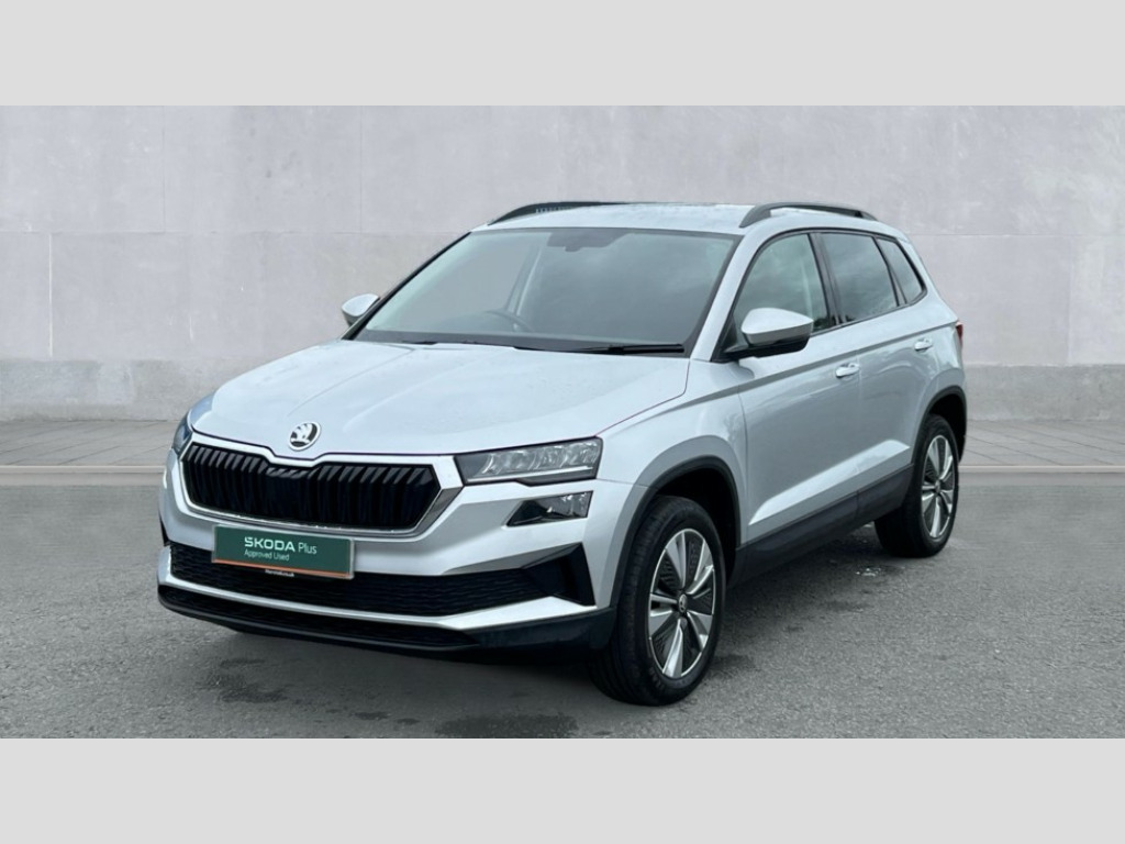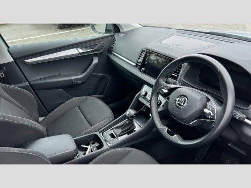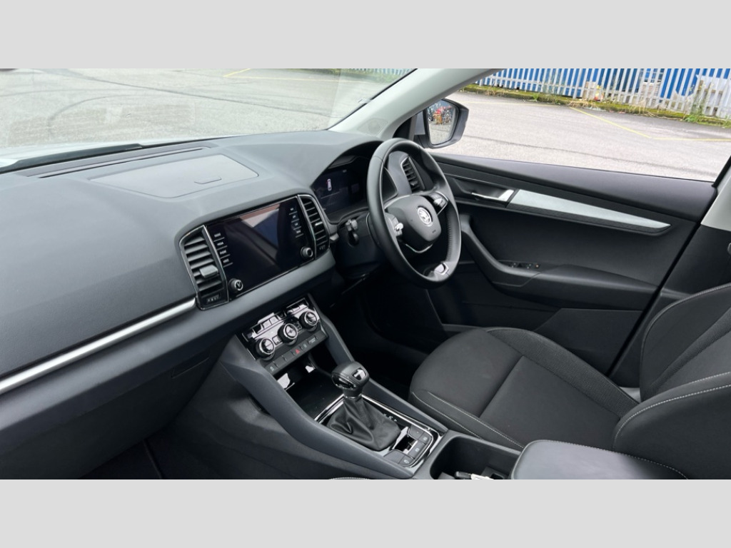 Skoda Karoq 2.0 TDI SE Drive 5dr DSG 8" Digital display, Amundsen satellite navigation with 8" touchscreen display with maps Europe, WLAN and web radio, Care connect, Driver fatigue sensor, Electro-mechanical PAS, Emergency services call system, Outside temperature gauge, Service interval indicator, SmartLink wireless for Apple and wired for Android, Start/stop system with regenerative braking, USB C Port x 2 in front centre console, Diesel particulate filter, 8 Speakers, DAB radio with Bluetooth, USB connection, Acoustic glass, Aero front windscreen wipers with intermittent function, Auto dimming rear view mirror with light and rain sensors, Black electric window control buttons, Body colour door mirrors and handles, Dynamic headlight range control with cornering light function, Electric front and rear windows with child proof lock, Electrically adjustable heated folding and auto dimming door mirrors, Front fog lights, Heated rear windscreen, LED daytime running lights, LED Headlights, LED rear lights with high functionality welcome effect and dynamic indicators, Light assistant (coming/leaving home/tunnel light), Plastic scuff plates, Privacy glass, Rear side wing doors, Rear window wiper with washer system and intermittent control, Safety reflectors on front doors, Third brake light, 1.5 litre bottle holders in driver and front passenger door panels, 12V socket in boot, 12v socket in front centre armrest with storage compartment and rear air vents, 2 x Tablet holder, 3 rear height adjustable headrests, 3 seat bench in 2nd row, 4 foldable roof handles with rear coat hooks, Black floor carpet, Chrome inner door handles, Double sided boot floor, Driver/front passenger reading lights, Foldable hooks in the boot, Folding tables on the front seat backrests, Front head restraints, Height adjustable driver and passenger seat, Height adjustable front three point seats belts with tensioners, Height/reach adjust steering wheel, Ice scraper, Illuminated glovebox, Illuminated luggage compartment, Interior noise suppression, Isofix child seat preparation for front passenger seat, Isofix child seat preparation outer rear, Manual lumbar support for front seats, Pearl grey interior ceiling, Pen holder, Pollen filter, Rear boot cover, Rear reading lights, Rubbish bin door, Safety vest holder, Single front passenger seat, Storage box in upper central dashboard closed, Sunvisors with illuminated vanity mirrors, Textile floor mats, Ticket holder, Umbrella under passenger seat, Boot pack - Karoq, Automatic door unlocking in case of crash, Automatic fuel cut off in case of crash, Child locks on rear doors, Driver airbag, Electronic parking brake with auto hold function, Emergency rear braking signal, ESC including ABS, MSR, ASR, EDS, HBA, DSR, RBS, MKB and traction control, Front side airbags, Hill hold control, Knee airbags, Passenger airbag with switch-off function, Pedestrian monitor, Seatbelt reminder signalisation and pretensioner for all seats, Three point seatbelts rear, Two tone horn, Tyre pressure display, Tyre pressure monitor, Alarm with interior monitoring, back up horn and tilt sensor with safe function, Electronic engine immobiliser, Remote central locking with 2 remote folding keys, Black centre console, Chrome framed air vents, Satin black dashboard, Satin black door trim, Anti-theft wheel bolts protection, Storage on wheel cover, Tool kit