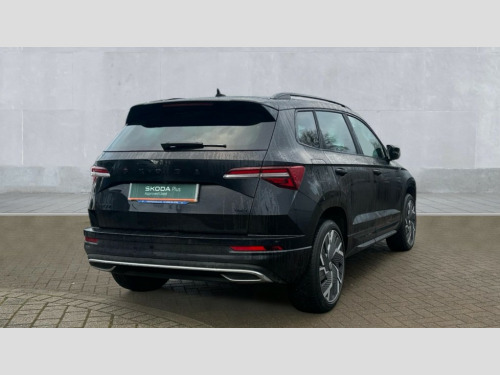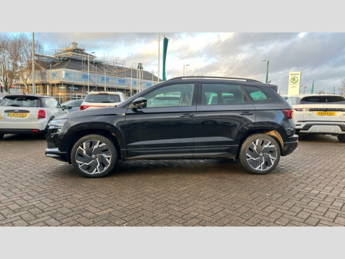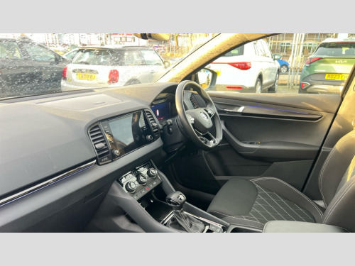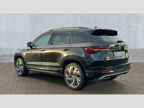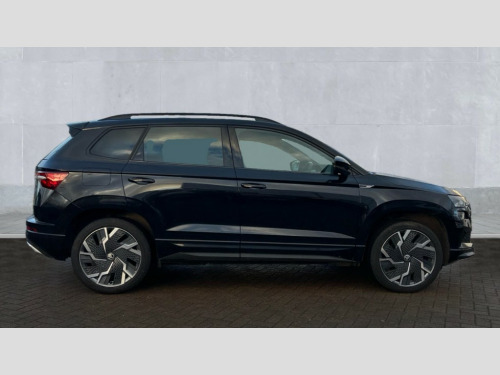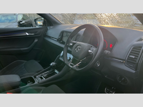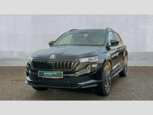 Skoda Karoq 2.0 TSI Sportline 4x4 5dr DSG 8" Digital display, Advanced driver attention and drowsiness monitor, Emergency services call system, Outside temperature gauge, Sensor for driver assistance systems, Service interval indicator, SmartLink wireless for Apple and wired for Android, Start/stop system with regenerative braking, USB C Port x 2 in front centre console, Virtual Cockpit - 10.25" digital display, Virtual pedal with electrically operated boot door, Wireless smartphone charging, Canton sound system, DAB radio with Bluetooth, USB connection, Acoustic glass, Aero front windscreen wipers with intermittent function, Auto dimming rear view mirror with light and rain sensors, Black door mirrors, Black electric window control buttons, Black radiator grille, Black roof rails, Body colour door handles, Electric front and rear windows with child proof lock, Front door steps with SportLine logo, Heated rear windscreen, LED 3rd brake light, LED daytime running lights, LED rear lights with high functionality welcome effect and dynamic indicators, Light assistant (coming/leaving home/tunnel light), Panoramic sliding sunroof, Plastic scuff plates in door apertures, Privacy glass, Protective door side sills in body colour, Rear diffuser, Rear side wing doors, Rear spoiler, Rear window wiper with washer system and intermittent control, Safety reflectors on front doors, Skoda lettering on tailgate in black, Sportline badge on front fender, Sportline decorative inserts with badging, Sports front and rear bumpers, 1.5 litre bottle holders in driver and front passenger door panels, 12V socket in boot, 12v socket in front centre armrest with storage compartment and rear air vents, 2 x Tablet holder, 3 rear height adjustable headrests, 3 seat bench in 2nd row, 3 spoke leather sports multifunction steering wheel and silver stitching with gear shift paddles, 4 foldable roof handles with rear coat hooks, Black floor carpet, Chrome inner door handles, Double sided boot floor, Foldable hooks in the boot, Front head restraints, Height adjustable front three point seats belts with tensioners, Height/reach adjust steering wheel, Ice scraper, Illuminated glovebox, Illuminated luggage compartment, Isofix child seat preparation for front passenger seat, Isofix child seat preparation outer rear, Manual lumbar support for front seats, Pen holder, Pollen filter, Rear boot cover, Rear reading lights, Rear seats fixed folding and divided 60:40, Rubbish bin door, Safety vest holder, Single front passenger seat, Storage box in upper central dashboard closed, Sunvisors with illuminated vanity mirrors, Textile floor mats, Ticket holder, Titan black interior ceiling, Umbrella under passenger seat, Under passenger seat storage compartment, Welcome animation with sportline logo, Light Pack - Karoq, Non Smokers pack, Automatic door unlocking in case of crash, Automatic fuel cut off in case of crash, Driver airbag, Electronic parking brake with auto hold function, Emergency rear braking signal, ESC including ABS, MSR, ASR, EDS, HBA, DSR, RBS, MKB and traction control, Front side airbags, Head airbags, Hill hold control, Knee airbags, Passenger airbag with switch-off function, Pedestrian monitor, Seatbelt reminder signalisation and pretensioner for all seats, Three point seatbelts rear, Two tone horn, Tyre pressure monitor, Alarm with interior monitoring, back up horn and tilt sensor with safe function, Electronic engine immobiliser, Keyless entry and start/stop, Remote central locking with 2 remote folding keys, Black air vent surround, Black centre console, carbon door decor, Satin black dashboard, Satin black door trim, 19" Sagittarius anthracite alloy wheels, Anti-theft wheel bolts protection, Breakdown and tool kit
