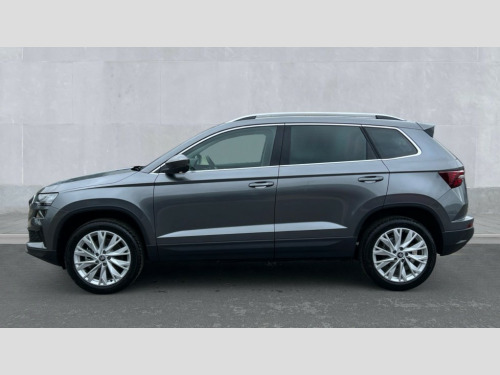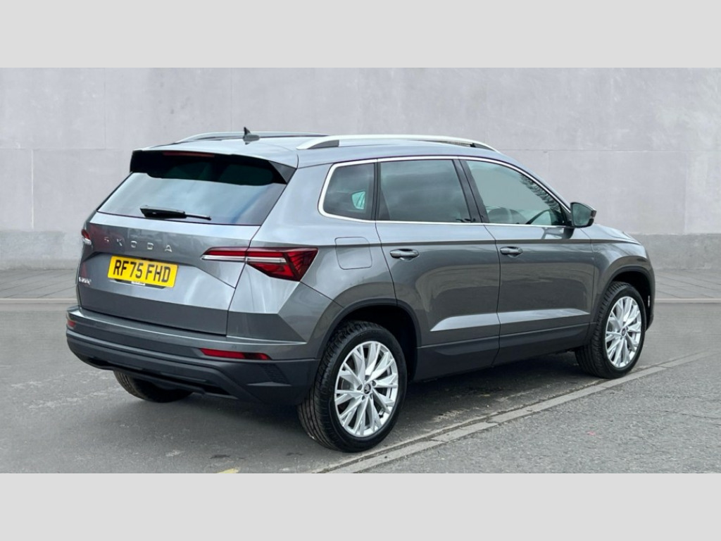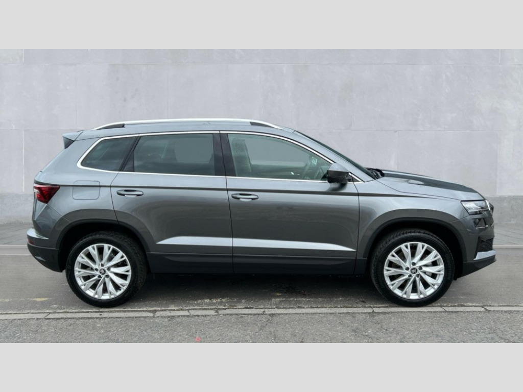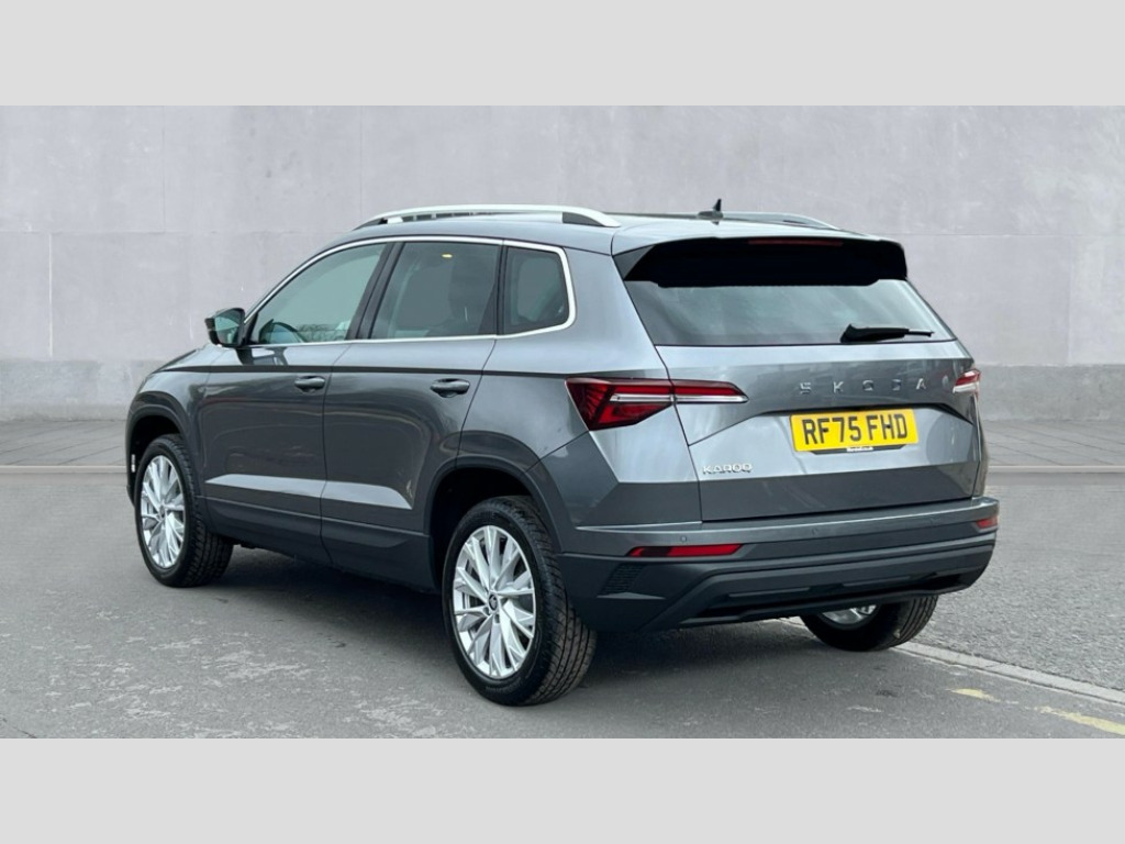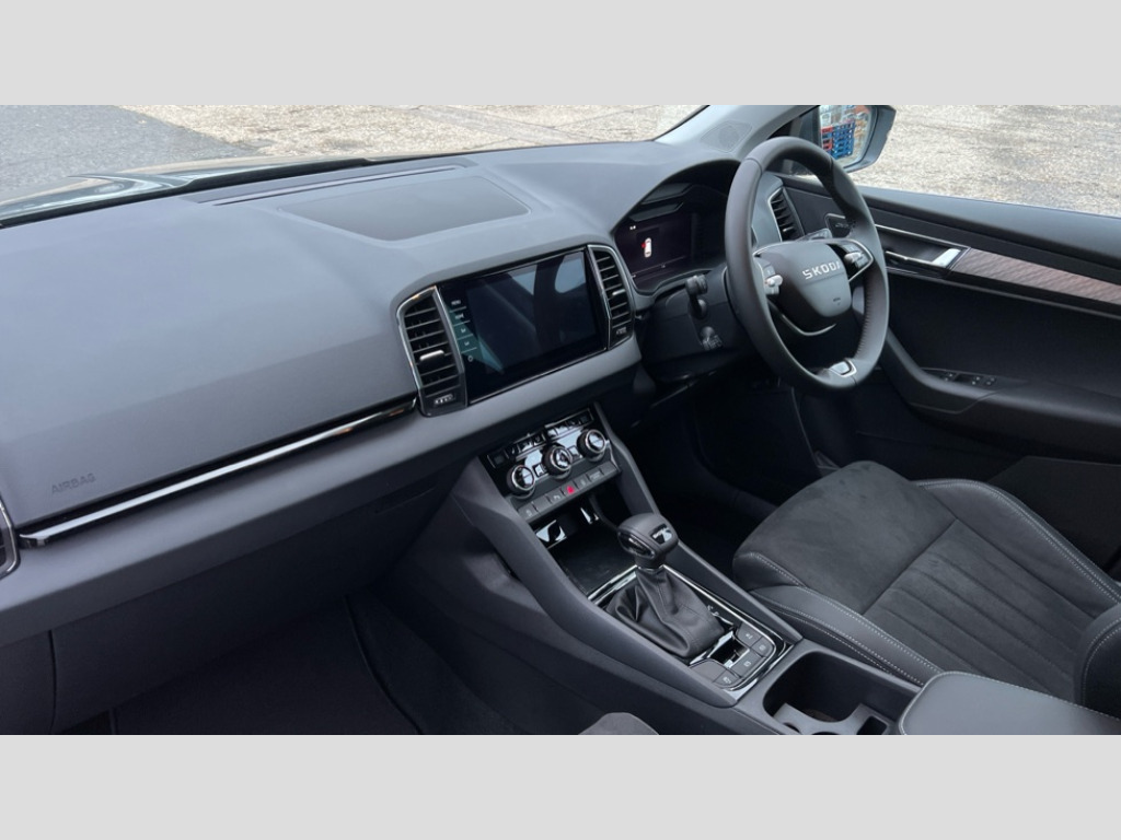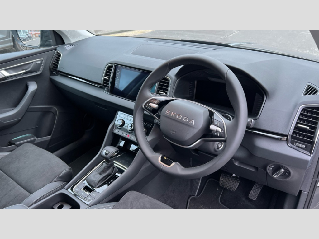 Skoda Karoq 1.5 TSI SE L Edition 5dr DSG Advanced driver attention and drowsiness monitor, Drive Mode Selection including ECO function, Electro-mechanical PAS, Emergency services call system, Outside temperature gauge, Sensor for driver assistance systems, Service interval indicator, SmartLink wireless for Apple and wired for Android, Start/stop system with regenerative braking, Traffic sign recognition, USB C Port x 2 in front centre console, Virtual Cockpit - 10.25" digital display, Virtual pedal with electrically operated boot door, Wireless smartphone charging, DAB radio with Bluetooth, USB connection, Acoustic glass, Aero front windscreen wipers with intermittent function, Auto dimming rear view mirror with light and rain sensors, Black electric window control buttons, Body colour door mirrors and handles, Electric front and rear windows with child proof lock, Extended rear roof spoiler, Heated rear windscreen, LED daytime running lights, LED rear lights with high functionality welcome effect and dynamic indicators, Light assistant (coming/leaving home/tunnel light), Plastic scuff plates in door apertures, Privacy glass, Rear side wing doors, Rear window wiper with washer system and intermittent control, Safety reflectors on front doors, Third brake light, Unique dark chrome design logo on alloy wheels, 1.5 litre bottle holders in driver and front passenger door panels, 12V socket in boot, 12v socket in front centre armrest with storage compartment and rear air vents, 2 spoke leather heated multifunction steering wheel with DSG paddles, 2 x Tablet holder, 3 rear height adjustable headrests, 3 seat bench in 2nd row, 4 foldable roof handles with rear coat hooks, Black floor carpet, Cargo elements in boot, Chrome inner door handles, Decorative door sills with KAROQ badging, Foldable hooks in the boot, Front head restraints, Height adjustable front three point seats belts with tensioners, Height/reach adjust steering wheel, Ice scraper, Illuminated glovebox, Illuminated luggage compartment, Interior noise suppression, Isofix child seat preparation for front passenger seat, Isofix child seat preparation outer rear, Manual lumbar support for front seats, Pearl grey interior ceiling, Pen holder, Pollen filter, Rear boot cover, Rear package tray, Rear reading lights, Rubbish bin door, Safety vest holder, Single front passenger seat, Skoda lettering on steering wheel, Storage box in upper central dashboard closed, Sunvisors with illuminated vanity mirrors, Textile floor mats, Ticket holder, Columbus pack - Karoq, Design Pack - Karoq, Non Smokers pack, Parking pack - Karoq, Automatic door unlocking in case of crash, Automatic fuel cut off in case of crash, Driver airbag, Electronic parking brake with auto hold function, Emergency rear braking signal, ESC (incl. ABS+MSR+ASR+EDS+HBA+DSR+RBS+MKB), Front side airbags, Head airbags, Hill hold control, Knee airbags, Passenger airbag with switch-off function, Pedestrian monitor, Power operated child safety locks, Seatbelt reminder signalisation and pretensioner for all seats, Three point seatbelts rear, Two tone horn, Tyre pressure monitor, Alarm with interior monitoring, back up horn and tilt sensor with safe function, Electronic engine immobiliser, Keyless entry and start/stop, Remote central locking with 2 remote folding keys, Black centre console, Chrome framed air vents, Satin black dashboard, Anti-theft wheel bolts protection, Breakdown and tool kit
