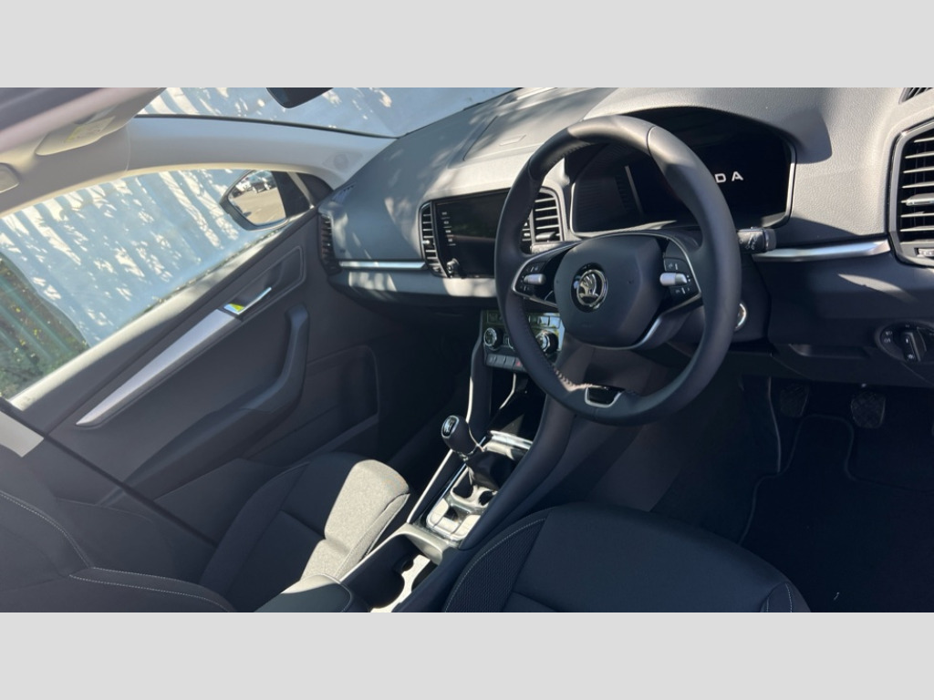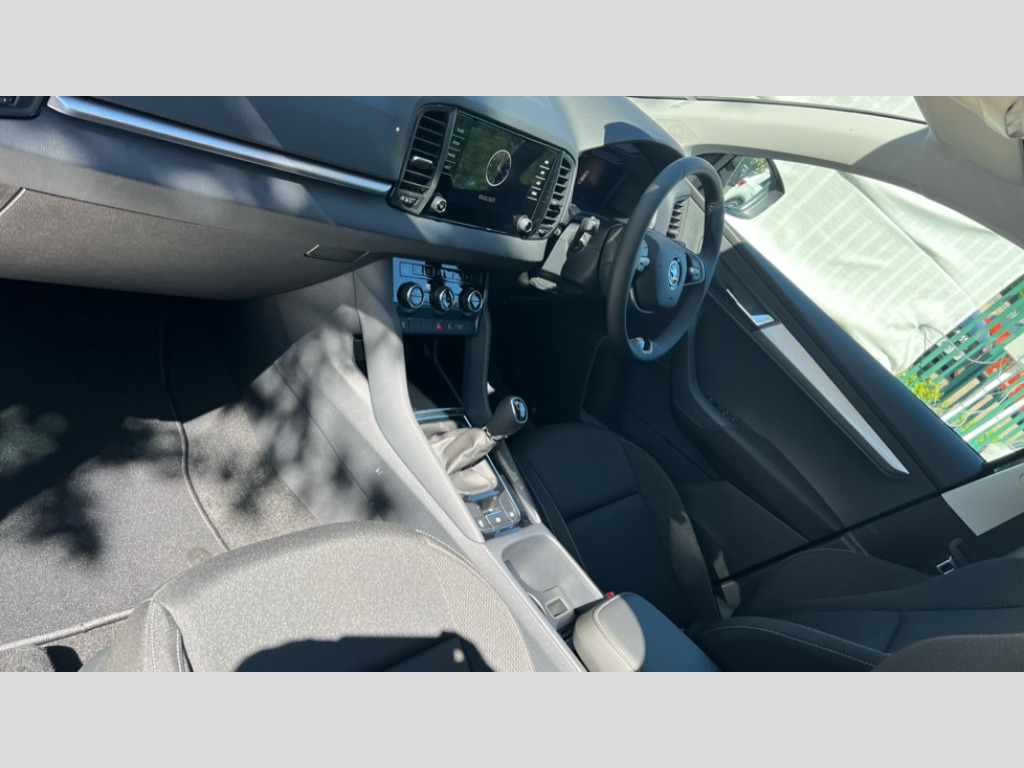Skoda Karoq 1.0 TSI 116 SE Drive 5dr 8" Digital display, Advanced driver attention and drowsiness monitor, Amundsen navigation system with 8" touchscreen display and integrated WLAN and web radio, Electro-mechanical PAS, Emergency services call system, Lane assist, Outside temperature gauge, Sensor for driver assistance systems, Service interval indicator, SmartLink wireless for Apple and wired for Android, Start/stop system with regenerative braking, Traffic sign recognition, USB C Port x 2 in front centre console, Virtual Cockpit - 10.25" digital display, Wireless smartphone charging, 8 Speakers, DAB radio with Bluetooth, USB connection, Acoustic glass, Aero front windscreen wipers with intermittent function, Auto dimming rear view mirror with light and rain sensors, Black electric window control buttons, Body colour door mirrors and handles, Electric front and rear windows with child proof lock, Electrically adjustable heated folding and auto dimming door mirrors, Front fog lights, Headlight range control, Heated rear windscreen, LED daytime running lights, LED Headlights, LED rear lights with high functionality welcome effect and dynamic indicators, Light assistant (coming/leaving home/tunnel light), Plastic scuff plates in door apertures, Privacy glass, Rear side wing doors, Rear window wiper with washer system and intermittent control, Safety reflectors on front doors, Third brake light, 1.5 litre bottle holders in driver and front passenger door panels, 12V socket in boot, 12v socket in front centre armrest with storage compartment and rear air vents, 2 x Tablet holder, 3 rear height adjustable headrests, 3 seat bench in 2nd row, 4 foldable roof handles with rear coat hooks, Black floor carpet, Chrome inner door handles, Driver/front passenger reading lights, Foldable hooks in the boot, Folding tables on the front seat backrests, Front head restraints, Height adjustable driver and passenger seat, Height adjustable front three point seats belts with tensioners, Height/reach adjust steering wheel, Ice scraper, Illuminated glovebox, Illuminated luggage compartment, Interior noise suppression, Isofix child seat preparation for front passenger seat, Isofix child seat preparation outer rear, Loft fabric upholstery, Manual lumbar support for front seats, Pearl grey interior ceiling, Pen holder, Pollen filter, Rear boot cover, Rear reading lights, Rubbish bin door, Safety vest holder, Single front passenger seat, Storage box in upper central dashboard closed, Sunvisors with illuminated vanity mirrors, Textile floor mats, Ticket holder, Umbrella under passenger seat, Under passenger seat storage compartment, Non Smokers pack, Automatic door unlocking in case of crash, Automatic fuel cut off in case of crash, Driver airbag, Electronic parking brake with auto hold function, Emergency rear braking signal, ESC (incl. ABS+MSR+ASR+EDS+HBA+DSR+RBS+MKB), Front assist, Front side airbags, Head airbags, Hill hold control, Knee airbags, Passenger airbag with switch-off function, Pedestrian monitor, Seatbelt reminder signalisation and pretensioner for all seats, Three point seatbelts rear, Two tone horn, Tyre pressure monitor, Alarm with interior monitoring, back up horn and tilt sensor with safe function, Electronic engine immobiliser, Remote central locking with 2 remote folding keys, Anodized cross door decor, Black centre console, Chrome framed air vents, Satin black dashboard, Satin black door trim, Anti-theft wheel bolts protection, Breakdown and tool kit