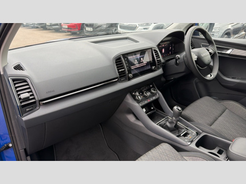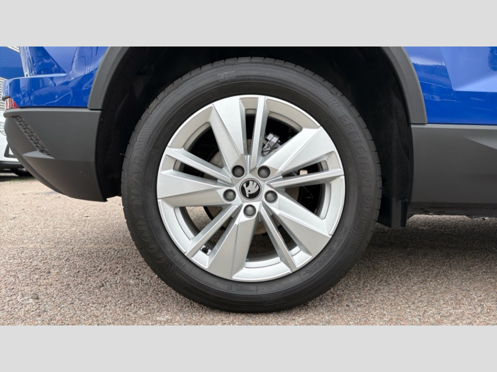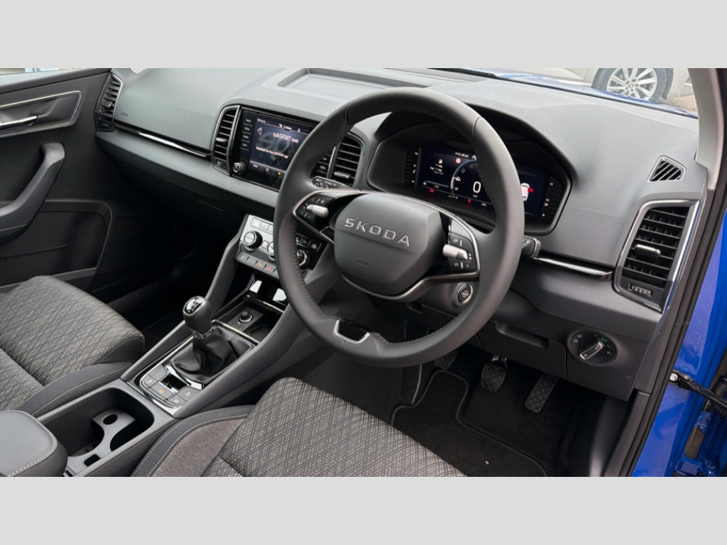 Skoda Karoq 1.0 TSI 116 SE Edition 5dr Advanced driver attention and drowsiness monitor, Amundsen navigation system with 8" touchscreen display and integrated WLAN and web radio, Electro-mechanical PAS, Emergency services call system, Lane assist, Outside temperature gauge, Sensor for driver assistance systems, Service interval indicator, SmartLink wireless for Apple and wired for Android, Start/stop system with regenerative braking, Traffic sign recognition, USB C Port x 2 in front centre console, Virtual Cockpit - 10.25" digital display, Wireless smartphone charging, 8 Speakers, DAB radio with Bluetooth, USB connection, Acoustic glass, Aero front windscreen wipers with intermittent function, Auto dimming rear view mirror with light and rain sensors, Black electric window control buttons, Body colour door mirrors and handles, Electric front and rear windows with child proof lock, Electrically adjustable heated folding and auto dimming door mirrors, Front fog lights, Headlight range control, Heated rear windscreen, LED daytime running lights, LED Headlights, LED rear lights with high functionality welcome effect and dynamic indicators, Light assistant (coming/leaving home/tunnel light), Plastic scuff plates in door apertures, Privacy glass, Rear side wing doors, Rear window wiper with washer system and intermittent control, Safety reflectors on front doors, Third brake light, Unique dark chrome design logo on alloy wheels, 1.5 litre bottle holders in driver and front passenger door panels, 12V socket in boot, 12v socket in front centre armrest with storage compartment and rear air vents, 2 spoke leather heated multifunction steering wheel, 2 x Tablet holder, 3 rear height adjustable headrests, 3 seat bench in 2nd row, 4 foldable roof handles with rear coat hooks, Black floor carpet, Cargo elements in boot, Chrome inner door handles, Driver/front passenger reading lights, Foldable hooks in the boot, Folding tables on the front seat backrests, Front head restraints, Height adjustable driver and passenger seat, Height adjustable front three point seats belts with tensioners, Height/reach adjust steering wheel, Ice scraper, Illuminated glovebox, Illuminated luggage compartment, Interior noise suppression, Isofix child seat preparation for front passenger seat, Isofix child seat preparation outer rear, Loft fabric upholstery, Manual lumbar support for front seats, Pearl grey interior ceiling, Pen holder, Pollen filter, Rear boot cover, Rear package tray, Rear reading lights, Rubbish bin door, Safety vest holder, Single front passenger seat, Skoda lettering on steering wheel, Storage box in upper central dashboard closed, Sunvisors with illuminated vanity mirrors, Textile floor mats, Ticket holder, Umbrella under passenger seat, Under passenger seat storage compartment, Non Smokers pack, Parking pack - Karoq, Winter pack with heated front seats - Karoq, Automatic door unlocking in case of crash, Automatic fuel cut off in case of crash, Driver airbag, Electronic parking brake with auto hold function, Emergency rear braking signal, ESC (incl. ABS+MSR+ASR+EDS+HBA+DSR+RBS+MKB), Front assist, Front side airbags, Head airbags, Hill hold control, Knee airbags, Passenger airbag with switch-off function, Pedestrian monitor, Power operated child safety locks, Seatbelt reminder signalisation and pretensioner for all seats, Three point seatbelts rear, Two tone horn, Tyre pressure monitor, Alarm with interior monitoring, back up horn and tilt sensor with safe function, Electronic engine immobiliser, Keyless entry and start/stop, Remote central locking with 2 remote folding keys, Anodized cross door decor, Black centre console, Chrome framed air vents, Satin black dashboard, Satin black door trim, Anti-theft wheel bolts protection, Breakdown and tool kit
