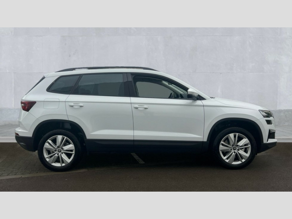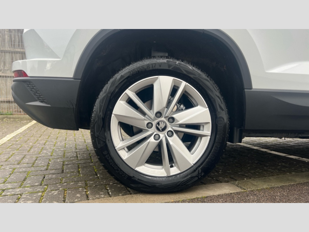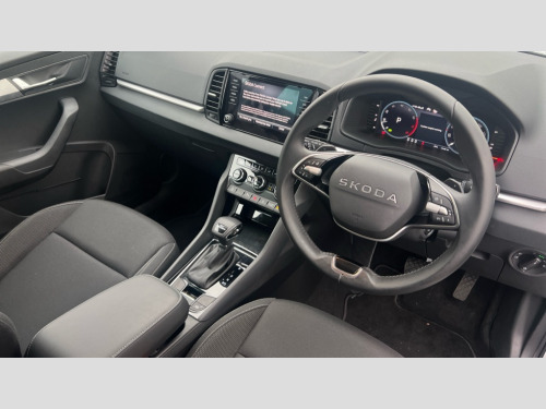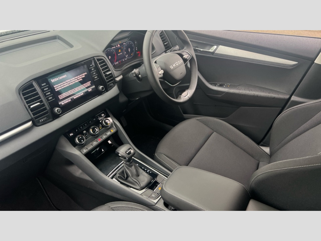 Skoda Karoq 1.5 TSI SE Edition 5dr DSG Advanced driver attention and drowsiness monitor, Amundsen navigation system with 8" touchscreen display and integrated WLAN and web radio, Electro-mechanical PAS, Emergency services call system, Lane assist, Outside temperature gauge, Sensor for driver assistance systems, Service interval indicator, SmartLink wireless for Apple and wired for Android, Start/stop system with regenerative braking, Traffic sign recognition, USB C Port x 2 in front centre console, Virtual Cockpit - 10.25" digital display, Wireless smartphone charging, 8 Speakers, DAB radio with Bluetooth, USB connection, Acoustic glass, Aero front windscreen wipers with intermittent function, Auto dimming rear view mirror with light and rain sensors, Black electric window control buttons, Body colour door mirrors and handles, Electric front and rear windows with child proof lock, Electrically adjustable heated folding and auto dimming door mirrors, Front fog lights, Headlight range control, Heated rear windscreen, LED daytime running lights, LED Headlights, LED rear lights with high functionality welcome effect and dynamic indicators, Light assistant (coming/leaving home/tunnel light), Plastic scuff plates in door apertures, Privacy glass, Rear side wing doors, Rear window wiper with washer system and intermittent control, Safety reflectors on front doors, Third brake light, Unique dark chrome design logo on alloy wheels, 1.5 litre bottle holders in driver and front passenger door panels, 12V socket in boot, 12v socket in front centre armrest with storage compartment and rear air vents, 2 spoke leather heated multifunction steering wheel with DSG paddles, 2 x Tablet holder, 3 rear height adjustable headrests, 3 seat bench in 2nd row, 4 foldable roof handles with rear coat hooks, Black floor carpet, Cargo elements in boot, Chrome inner door handles, Driver/front passenger reading lights, Foldable hooks in the boot, Folding tables on the front seat backrests, Front head restraints, Height adjustable driver and passenger seat, Height adjustable front three point seats belts with tensioners, Height/reach adjust steering wheel, Ice scraper, Illuminated glovebox, Illuminated luggage compartment, Interior noise suppression, Isofix child seat preparation for front passenger seat, Isofix child seat preparation outer rear, Loft fabric upholstery, Manual lumbar support for front seats, Pearl grey interior ceiling, Pen holder, Pollen filter, Rear boot cover, Rear package tray, Rear reading lights, Rubbish bin door, Safety vest holder, Single front passenger seat, Skoda lettering on steering wheel, Storage box in upper central dashboard closed, Sunvisors with illuminated vanity mirrors, Textile floor mats, Ticket holder, Umbrella under passenger seat, Under passenger seat storage compartment, Non Smokers pack, Parking pack - Karoq, Winter pack with heated front seats - Karoq, Automatic door unlocking in case of crash, Automatic fuel cut off in case of crash, Driver airbag, Electronic parking brake with auto hold function, Emergency rear braking signal, ESC (incl. ABS+MSR+ASR+EDS+HBA+DSR+RBS+MKB), Front assist, Front side airbags, Head airbags, Hill hold control, Knee airbags, Passenger airbag with switch-off function, Pedestrian monitor, Power operated child safety locks, Seatbelt reminder signalisation and pretensioner for all seats, Three point seatbelts rear, Two tone horn, Tyre pressure monitor, Alarm with interior monitoring, back up horn and tilt sensor with safe function, Electronic engine immobiliser, Keyless entry and start/stop, Remote central locking with 2 remote folding keys, Anodized cross door decor, Black centre console, Chrome framed air vents, Satin black dashboard, Satin black door trim, Anti-theft wheel bolts protection, Breakdown and tool kit