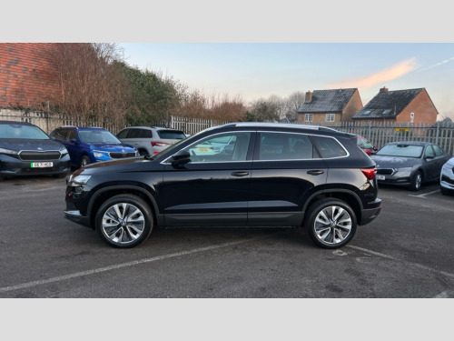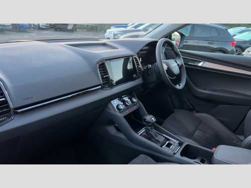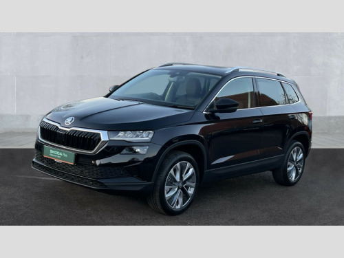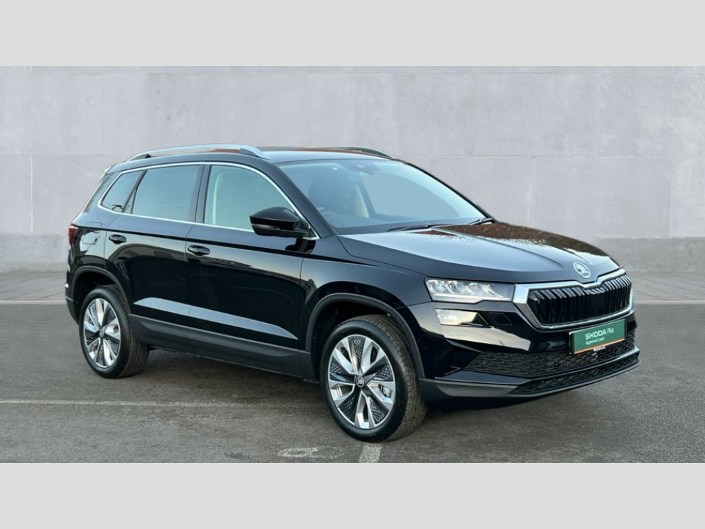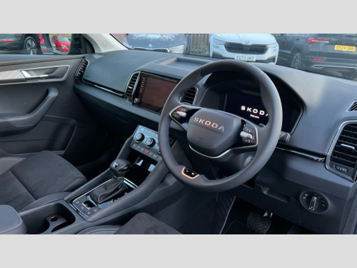 Skoda Karoq 1.5 TSI SE L 5dr DSG 8" Digital display, Advanced driver attention and drowsiness monitor, Emergency services call system, Outside temperature gauge, Sensor for driver assistance systems, Service interval indicator, SmartLink wireless for Apple and wired for Android, Start/stop system with regenerative braking, USB C Port x 2 in front centre console, Virtual Cockpit - 10.25" digital display, Wireless smartphone charging, DAB radio with Bluetooth, USB connection, Acoustic glass, Aero front windscreen wipers with intermittent function, Auto dimming rear view mirror with light and rain sensors, Black electric window control buttons, Body colour door mirrors and handles, Electric front and rear windows with child proof lock, Heated rear windscreen, LED daytime running lights, LED rear lights with high functionality welcome effect and dynamic indicators, Light assistant (coming/leaving home/tunnel light), Plastic scuff plates in door apertures, Privacy glass, Rear side wing doors, Rear spoiler, Rear window wiper with washer system and intermittent control, Safety reflectors on front doors, Third brake light, 1.5 litre bottle holders in driver and front passenger door panels, 12V socket in boot, 12v socket in front centre armrest with storage compartment and rear air vents, 2 spoke leather heated multifunction steering wheel with DSG paddles, 2 x Tablet holder, 3 rear height adjustable headrests, 3 seat bench in 2nd row, 4 foldable roof handles with rear coat hooks, Black floor carpet, Chrome inner door handles, Foldable hooks in the boot, Front head restraints, Height adjustable front three point seats belts with tensioners, Height/reach adjust steering wheel, Ice scraper, Illuminated glovebox, Illuminated luggage compartment, Interior noise suppression, Isofix child seat preparation for front passenger seat, Isofix child seat preparation outer rear, Manual lumbar support for front seats, Pearl grey interior ceiling, Pen holder, Pollen filter, Rear boot cover, Rear reading lights, Rubbish bin door, Safety vest holder, Single front passenger seat, Storage box in upper central dashboard closed, Sunvisors with illuminated vanity mirrors, Textile floor mats, Ticket holder, Design Pack - Karoq, Non Smokers pack, Parking pack - Karoq, Automatic door unlocking in case of crash, Automatic fuel cut off in case of crash, Driver airbag, Electronic parking brake with auto hold function, Emergency rear braking signal, ESC (incl. ABS+MSR+ASR+EDS+HBA+DSR+RBS+MKB), Front side airbags, Head airbags, Hill hold control, Knee airbags, Passenger airbag with switch-off function, Pedestrian monitor, Seatbelt reminder signalisation and pretensioner for all seats, Three point seatbelts rear, Two tone horn, Tyre pressure monitor, Alarm with interior monitoring, back up horn and tilt sensor with safe function, Electronic engine immobiliser, Keyless entry and start/stop, Remote central locking with 2 remote folding keys, Black centre console, Chrome framed air vents, Satin black dashboard, Anti-theft wheel bolts protection, Breakdown and tool kit