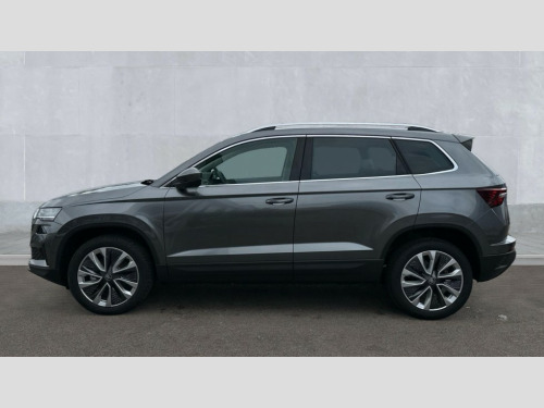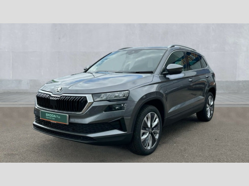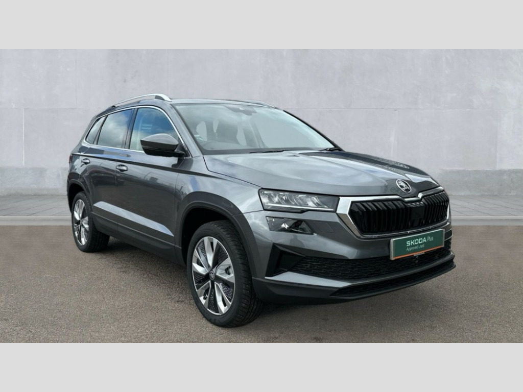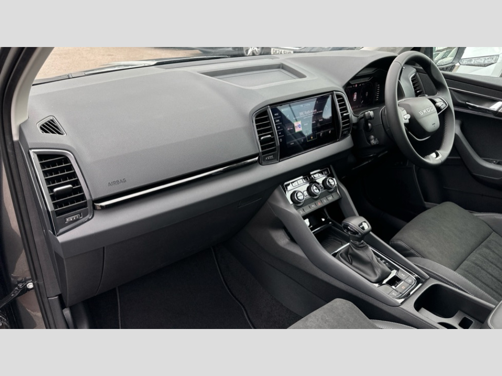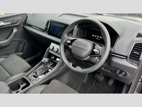 Skoda Karoq 1.5 TSI SE L Edition 5dr DSG Advanced driver attention and drowsiness monitor, Drive Mode Selection including ECO function, Electro-mechanical PAS, Emergency services call system, Outside temperature gauge, Sensor for driver assistance systems, Service interval indicator, SmartLink wireless for Apple and wired for Android, Start/stop system with regenerative braking, Traffic sign recognition, USB C Port x 2 in front centre console, Virtual Cockpit - 10.25" digital display, Virtual pedal with electrically operated boot door, Wireless smartphone charging, DAB radio with Bluetooth, USB connection, Acoustic glass, Aero front windscreen wipers with intermittent function, Auto dimming rear view mirror with light and rain sensors, Black electric window control buttons, Body colour door mirrors and handles, Electric front and rear windows with child proof lock, Extended rear roof spoiler, Heated rear windscreen, LED daytime running lights, LED rear lights with high functionality welcome effect and dynamic indicators, Light assistant (coming/leaving home/tunnel light), Plastic scuff plates in door apertures, Privacy glass, Rear side wing doors, Rear window wiper with washer system and intermittent control, Safety reflectors on front doors, Third brake light, Unique dark chrome design logo on alloy wheels, 1.5 litre bottle holders in driver and front passenger door panels, 12V socket in boot, 12v socket in front centre armrest with storage compartment and rear air vents, 2 spoke leather heated multifunction steering wheel with DSG paddles, 2 x Tablet holder, 3 rear height adjustable headrests, 3 seat bench in 2nd row, 4 foldable roof handles with rear coat hooks, Black floor carpet, Cargo elements in boot, Chrome inner door handles, Foldable hooks in the boot, Front head restraints, Height adjustable front three point seats belts with tensioners, Height/reach adjust steering wheel, Ice scraper, Illuminated glovebox, Illuminated luggage compartment, Interior noise suppression, Isofix child seat preparation for front passenger seat, Isofix child seat preparation outer rear, Manual lumbar support for front seats, Pearl grey interior ceiling, Pen holder, Pollen filter, Rear boot cover, Rear package tray, Rear reading lights, Rubbish bin door, Safety vest holder, Single front passenger seat, Skoda lettering on steering wheel, Storage box in upper central dashboard closed, Sunvisors with illuminated vanity mirrors, Textile floor mats, Ticket holder, Columbus pack - Karoq, Design Pack - Karoq, Non Smokers pack, Parking pack - Karoq, Automatic door unlocking in case of crash, Automatic fuel cut off in case of crash, Driver airbag, Electronic parking brake with auto hold function, Emergency rear braking signal, ESC (incl. ABS+MSR+ASR+EDS+HBA+DSR+RBS+MKB), Front side airbags, Head airbags, Hill hold control, Knee airbags, Passenger airbag with switch-off function, Pedestrian monitor, Seatbelt reminder signalisation and pretensioner for all seats, Three point seatbelts rear, Two tone horn, Tyre pressure monitor, Alarm with interior monitoring, back up horn and tilt sensor with safe function, Electronic engine immobiliser, Keyless entry and start/stop, Remote central locking with 2 remote folding keys, Black centre console, Chrome framed air vents, Satin black dashboard, Anti-theft wheel bolts protection, Breakdown and tool kit