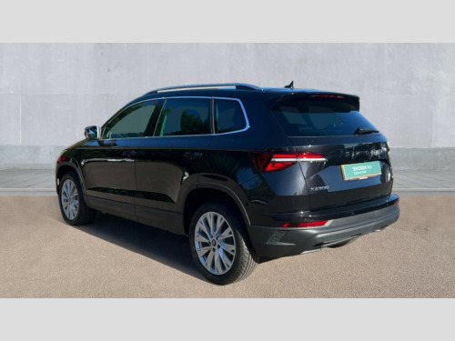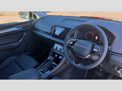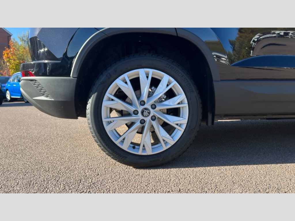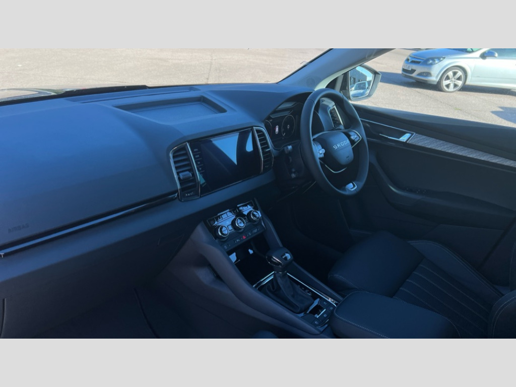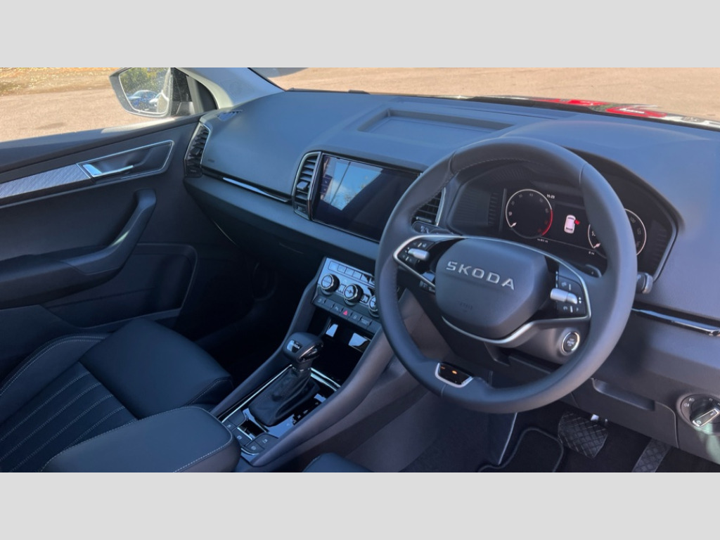 Skoda Karoq 1.5 TSI SE L Edition 5dr DSG Advanced driver attention and drowsiness monitor, Drive Mode Selection including ECO function, Electro-mechanical PAS, Emergency services call system, Outside temperature gauge, Sensor for driver assistance systems, Service interval indicator, SmartLink wireless for Apple and wired for Android, Start/stop system with regenerative braking, Traffic sign recognition, USB C Port x 2 in front centre console, Virtual Cockpit - 10.25" digital display, Virtual pedal with electrically operated boot door, Wireless smartphone charging, DAB radio with Bluetooth, USB connection, Acoustic glass, Aero front windscreen wipers with intermittent function, Auto dimming rear view mirror with light and rain sensors, Black electric window control buttons, Body colour door mirrors and handles, Electric front and rear windows with child proof lock, Extended rear roof spoiler, Heated rear windscreen, LED daytime running lights, LED rear lights with high functionality welcome effect and dynamic indicators, Light assistant (coming/leaving home/tunnel light), Plastic scuff plates in door apertures, Privacy glass, Rear side wing doors, Rear window wiper with washer system and intermittent control, Safety reflectors on front doors, Third brake light, Unique dark chrome design logo on alloy wheels, 1.5 litre bottle holders in driver and front passenger door panels, 12V socket in boot, 12v socket in front centre armrest with storage compartment and rear air vents, 2 spoke leather heated multifunction steering wheel with DSG paddles, 2 x Tablet holder, 3 rear height adjustable headrests, 3 seat bench in 2nd row, 4 foldable roof handles with rear coat hooks, Black floor carpet, Cargo elements in boot, Chrome inner door handles, Decorative door sills with KAROQ badging, Foldable hooks in the boot, Front head restraints, Height adjustable front three point seats belts with tensioners, Height/reach adjust steering wheel, Ice scraper, Illuminated glovebox, Illuminated luggage compartment, Interior noise suppression, Isofix child seat preparation for front passenger seat, Isofix child seat preparation outer rear, Manual lumbar support for front seats, Pearl grey interior ceiling, Pen holder, Pollen filter, Rear boot cover, Rear package tray, Rear reading lights, Rubbish bin door, Safety vest holder, Single front passenger seat, Skoda lettering on steering wheel, Storage box in upper central dashboard closed, Sunvisors with illuminated vanity mirrors, Textile floor mats, Ticket holder, Columbus pack - Karoq, Design Pack - Karoq, Non Smokers pack, Parking pack - Karoq, Automatic door unlocking in case of crash, Automatic fuel cut off in case of crash, Driver airbag, Electronic parking brake with auto hold function, Emergency rear braking signal, ESC (incl. ABS+MSR+ASR+EDS+HBA+DSR+RBS+MKB), Front side airbags, Head airbags, Hill hold control, Knee airbags, Passenger airbag with switch-off function, Pedestrian monitor, Power operated child safety locks, Seatbelt reminder signalisation and pretensioner for all seats, Three point seatbelts rear, Two tone horn, Tyre pressure monitor, Alarm with interior monitoring, back up horn and tilt sensor with safe function, Electronic engine immobiliser, Keyless entry and start/stop, Remote central locking with 2 remote folding keys, Black centre console, Chrome framed air vents, Satin black dashboard, Anti-theft wheel bolts protection, Breakdown and tool kit