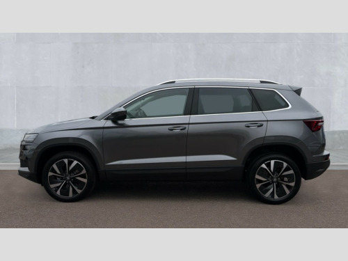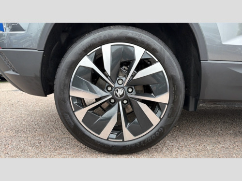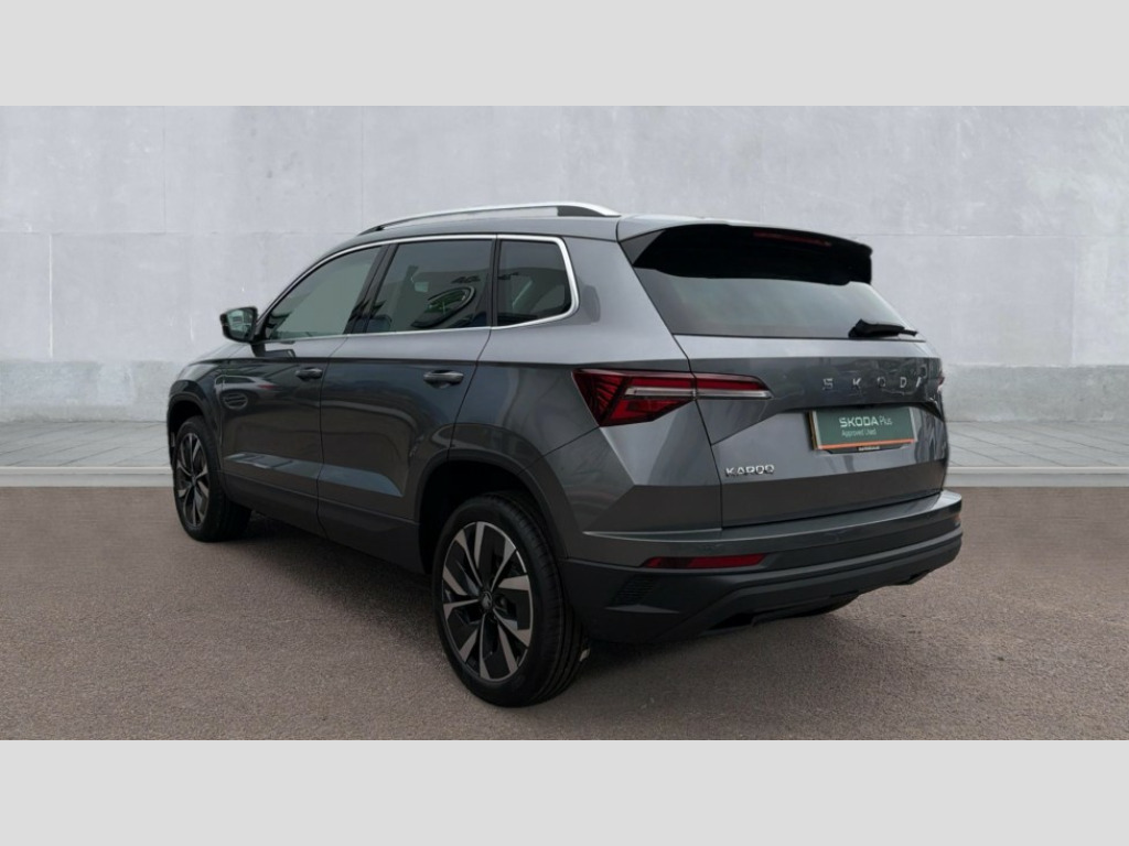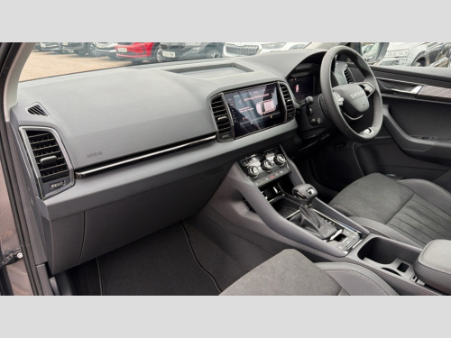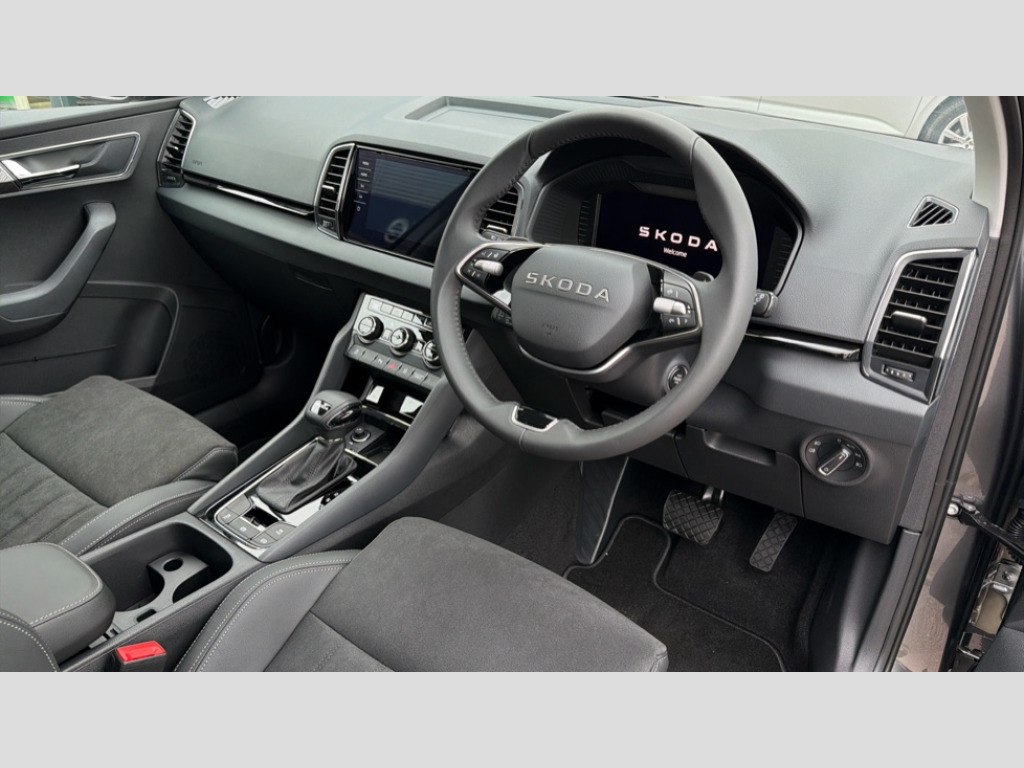 Skoda Karoq 1.5 TSI SE L Edition 5dr DSG Advanced driver attention and drowsiness monitor, Drive Mode Selection including ECO function, Electro-mechanical PAS, Emergency services call system, Outside temperature gauge, Sensor for driver assistance systems, Service interval indicator, SmartLink wireless for Apple and wired for Android, Start/stop system with regenerative braking, Traffic sign recognition, USB C Port x 2 in front centre console, Virtual Cockpit - 10.25" digital display, Virtual pedal with electrically operated boot door, Wireless smartphone charging, DAB radio with Bluetooth, USB connection, Acoustic glass, Aero front windscreen wipers with intermittent function, Auto dimming rear view mirror with light and rain sensors, Black electric window control buttons, Body colour door mirrors and handles, Electric front and rear windows with child proof lock, Extended rear roof spoiler, Heated rear windscreen, LED daytime running lights, LED rear lights with high functionality welcome effect and dynamic indicators, Light assistant (coming/leaving home/tunnel light), Plastic scuff plates in door apertures, Privacy glass, Rear side wing doors, Rear window wiper with washer system and intermittent control, Safety reflectors on front doors, Third brake light, Unique dark chrome design logo on alloy wheels, 1.5 litre bottle holders in driver and front passenger door panels, 12V socket in boot, 12v socket in front centre armrest with storage compartment and rear air vents, 2 spoke leather heated multifunction steering wheel with DSG paddles, 2 x Tablet holder, 3 rear height adjustable headrests, 3 seat bench in 2nd row, 4 foldable roof handles with rear coat hooks, Black floor carpet, Cargo elements in boot, Chrome inner door handles, Decorative door sills with KAROQ badging, Foldable hooks in the boot, Front head restraints, Height adjustable front three point seats belts with tensioners, Height/reach adjust steering wheel, Ice scraper, Illuminated glovebox, Illuminated luggage compartment, Interior noise suppression, Isofix child seat preparation for front passenger seat, Isofix child seat preparation outer rear, Manual lumbar support for front seats, Pearl grey interior ceiling, Pen holder, Pollen filter, Rear boot cover, Rear package tray, Rear reading lights, Rubbish bin door, Safety vest holder, Single front passenger seat, Skoda lettering on steering wheel, Storage box in upper central dashboard closed, Sunvisors with illuminated vanity mirrors, Textile floor mats, Ticket holder, Columbus pack - Karoq, Design Pack - Karoq, Non Smokers pack, Parking pack - Karoq, Automatic door unlocking in case of crash, Automatic fuel cut off in case of crash, Driver airbag, Electronic parking brake with auto hold function, Emergency rear braking signal, ESC (incl. ABS+MSR+ASR+EDS+HBA+DSR+RBS+MKB), Front side airbags, Head airbags, Hill hold control, Knee airbags, Passenger airbag with switch-off function, Pedestrian monitor, Power operated child safety locks, Seatbelt reminder signalisation and pretensioner for all seats, Three point seatbelts rear, Two tone horn, Tyre pressure monitor, Alarm with interior monitoring, back up horn and tilt sensor with safe function, Electronic engine immobiliser, Keyless entry and start/stop, Remote central locking with 2 remote folding keys, Black centre console, Chrome framed air vents, Satin black dashboard, Anti-theft wheel bolts protection, Breakdown and tool kit